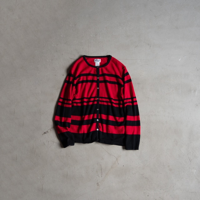 ................ "LIZ BAKER" used Multi border knit cardigan ................ LIZ BAKER(リズベイカー)のマルチボーダーカーディガンの古着になります。 LIZ BAKERは現存するアメリア婦人服カジュアルブランドで、おそらく米国ローカールとECのみで流通していると思われます。 この個体は、2000年以降に製造された古着で、アクリルとコットンのブレンドした糸を用いたニットウェアです。 ハイゲージクラスの天竺ジャージーで、脇下縫製以外は全て、成型編みとリンキングで仕立てられています。 縫い箇所も、縫い代を最低限に少なくしていて、着心地にと堅牢さに配慮した良い作りをしていると思います。 滑らかな糸質による良い着心地ですので肌に直接触れて着るような羽織やメイントップスにも良いです。 赤と黒の色のトーンも派手さとは一線を画しており、上品な印象さえ与えてくれます。 インナーとしても着回してみてください。 「petite」とありましたので、華奢な女性向けに作られています。 ぜひご検討ください。 ●サイズ: 表記 PETITE SMALL (日本人女性S-Mサイズ相当) 肩幅 36cm 身幅 48cm 着丈 58cm 袖丈 54cm 袖口幅 9-13cm アームホール 20.5cm ※若干の誤差はご了承ください。 ●色: レッド×ブラック ●素材: アクリル 55% コットン 45% ●原産国: 香港製 ●状態: 目立った外傷やほつれなどはございません。 あくまでも中古品/古物ですので、認識できないほどの小さな汚れ、保管時の劣化がある場合がございます。 当店としてはこれらも含めて、古着や古物の味や魅力として解釈しております。 誠に恐れ入りますがその旨ご理解頂いた上でご購入をお願いします。 ※アイテムは他サイトと在庫を共有しており、完売の場合もございます。