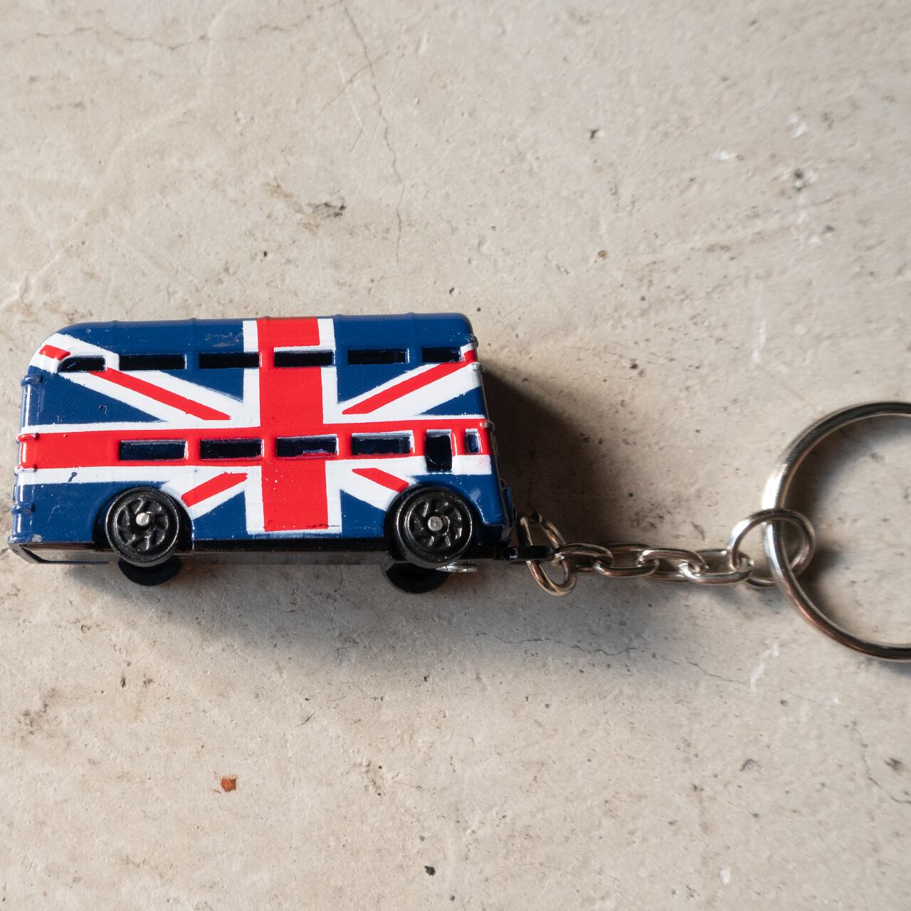 イギリスのブルーバスをモチーフにしたキーホルダーになります。