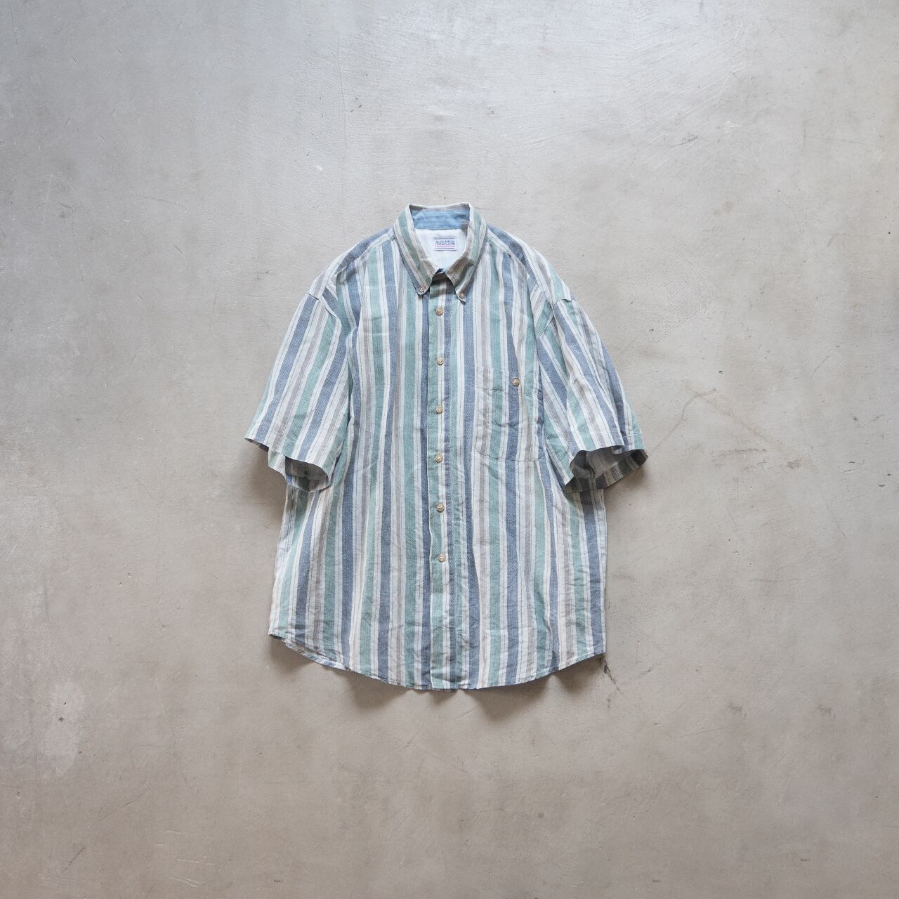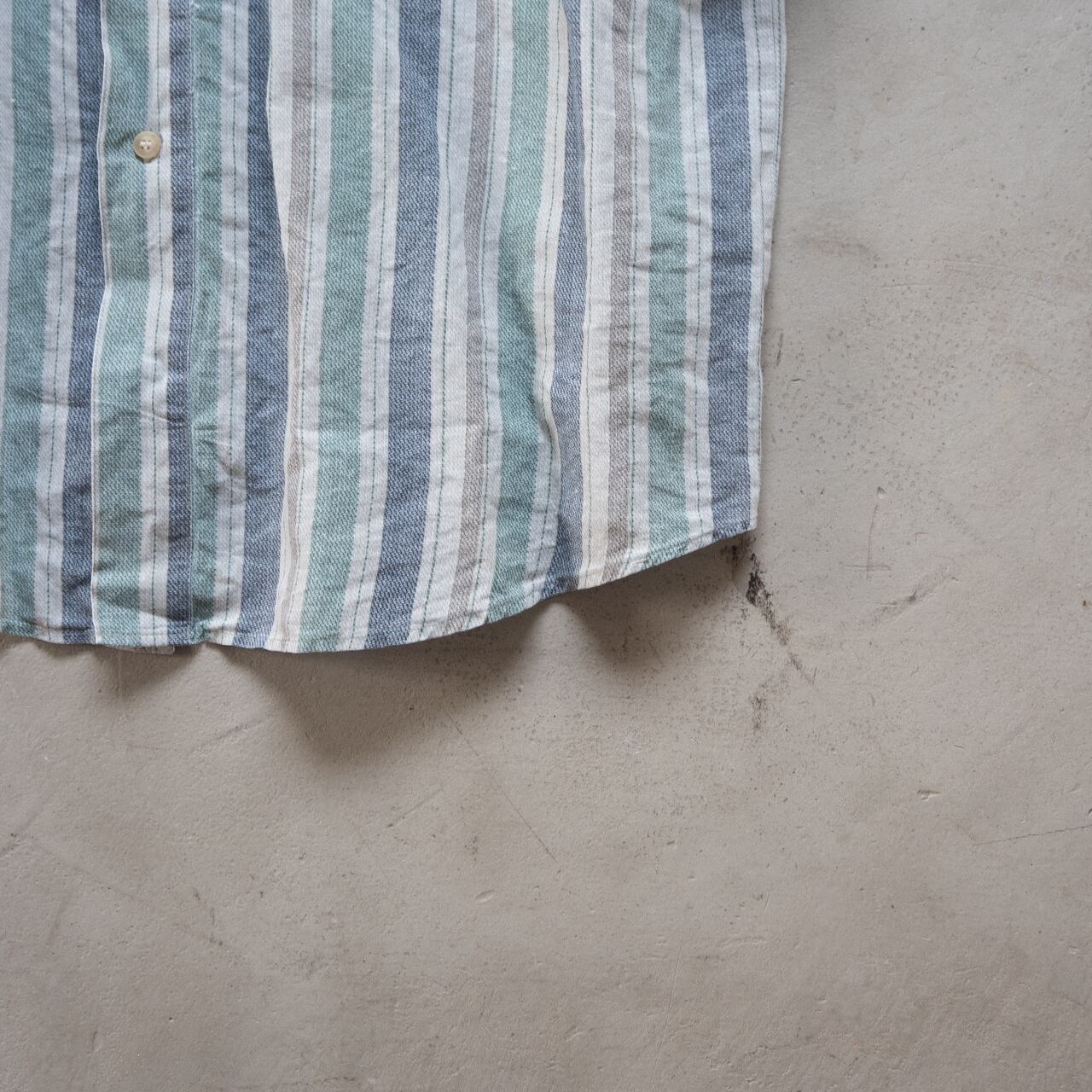 "Bugle Boy Company" used Ramie cotton stripe s/s shirt