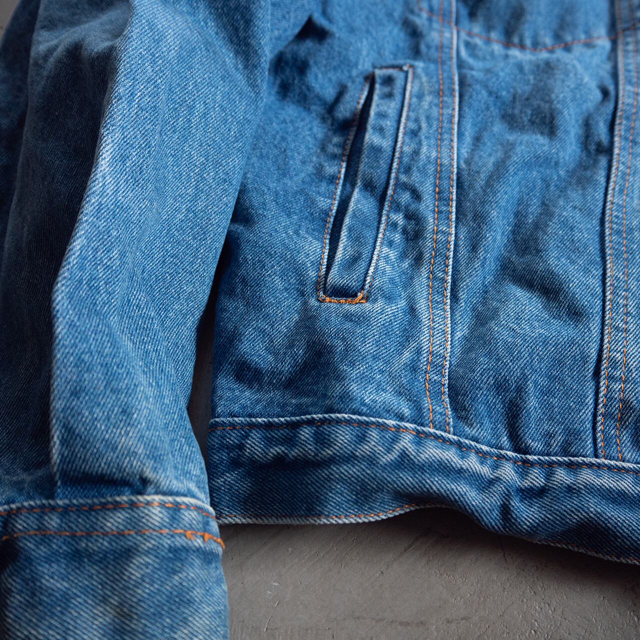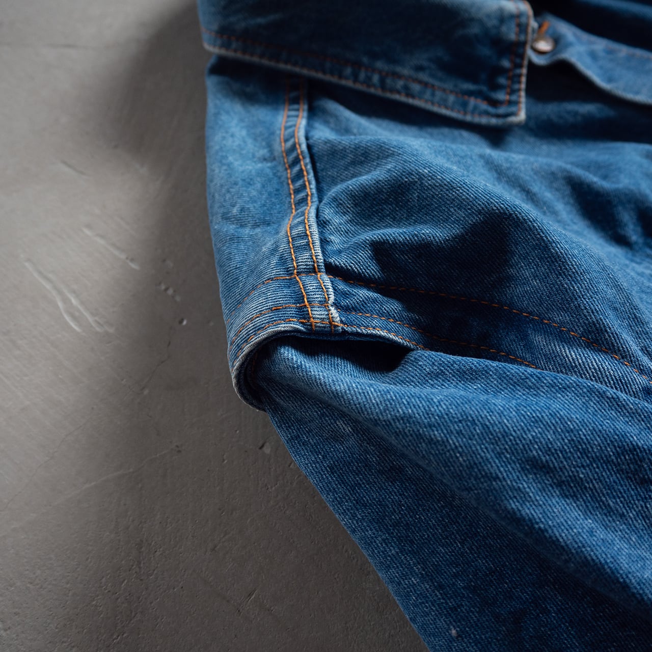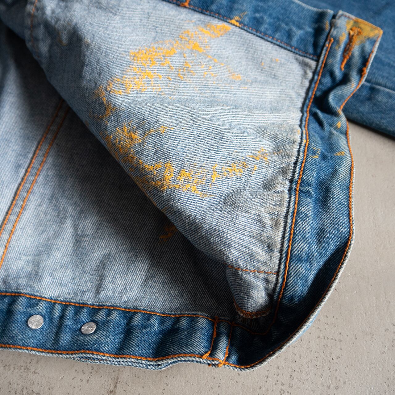 12,13ozほどのインディゴデニムで、バスト切り替え箇所にフラップを流し込む、3rd型のトラッカージャケットです。