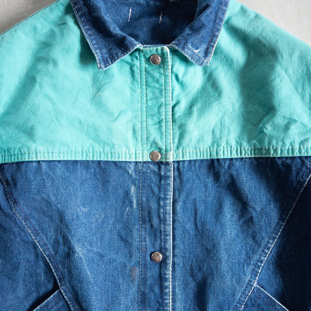 グリーンのカラー切り替えも良い感じですが、パタンニングも見事な古いユーロのデニムジャケットです。