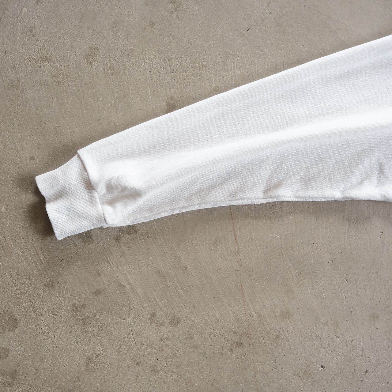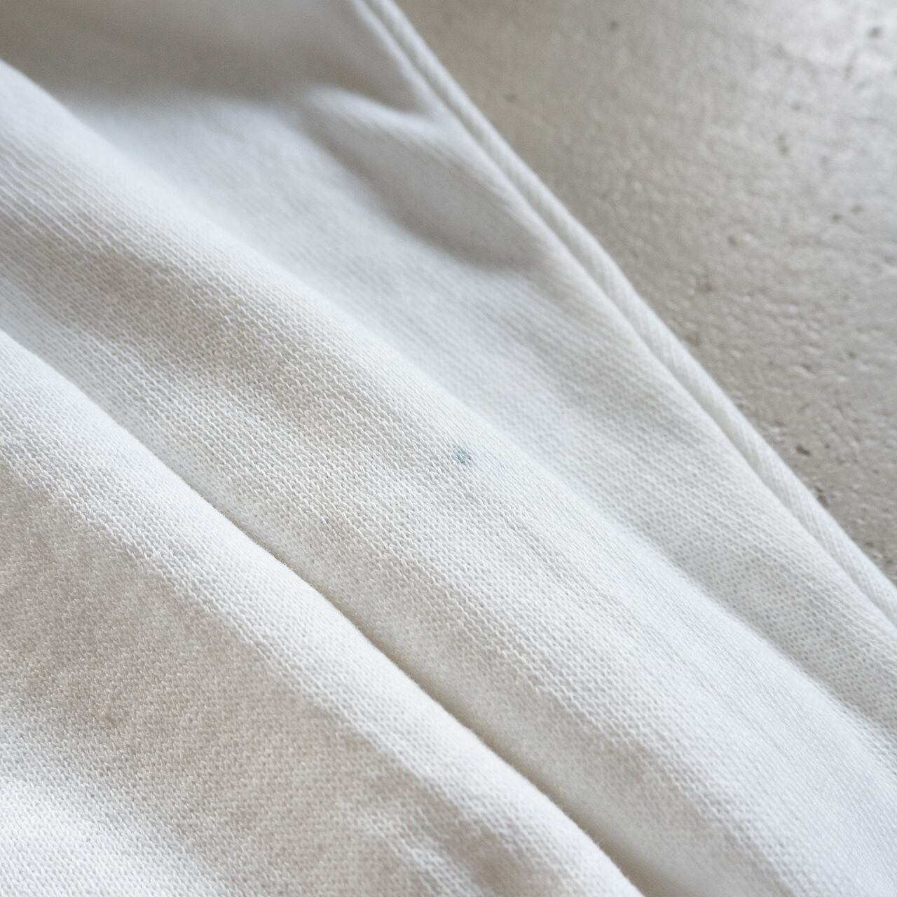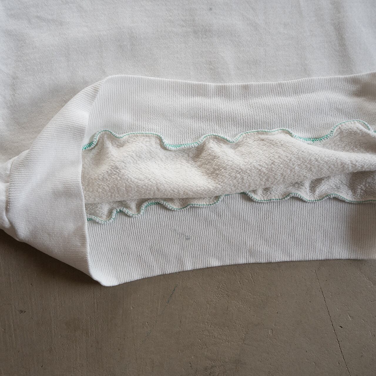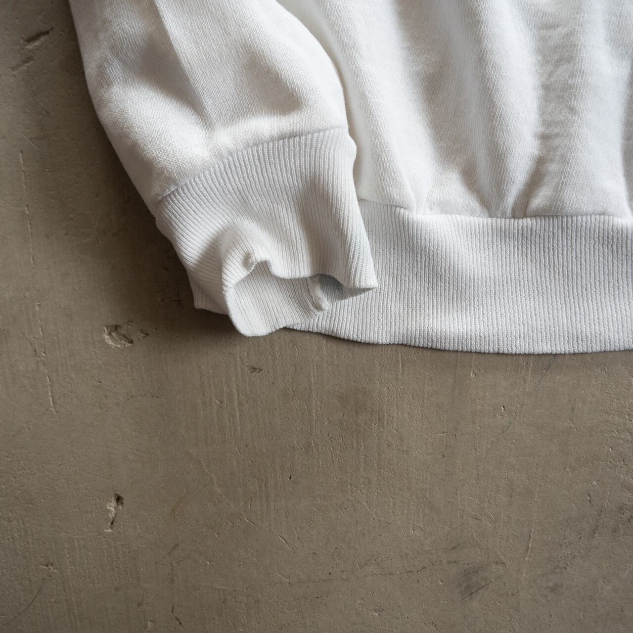 タグ印刷内容が消えていますので素材は不明ですが、年代の古いスウェットらしくパイルが掠れ、生地がやや痩せて薄手に感じます。