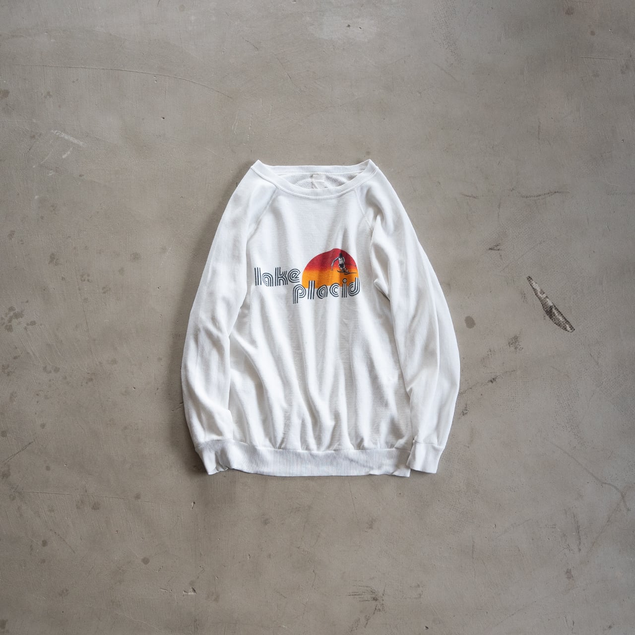 クタッとしていますが、このグラフィックプリントのレトロな雰囲気に良く馴染んだクールなスウェットです。