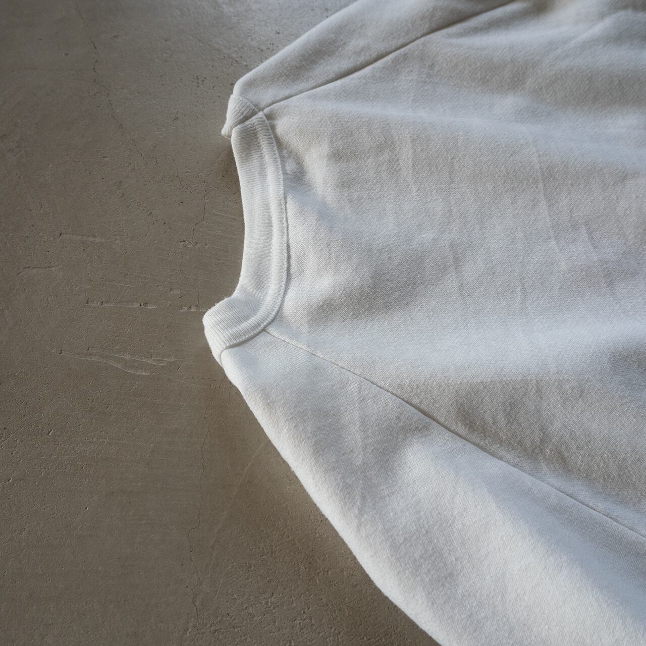 ポリエステル50%/コットン50%というこの年代らしい裏毛で、裏パイルが起毛加工により解され柔らかなタッチ、ふっくらとした嵩高なスウェットになります。