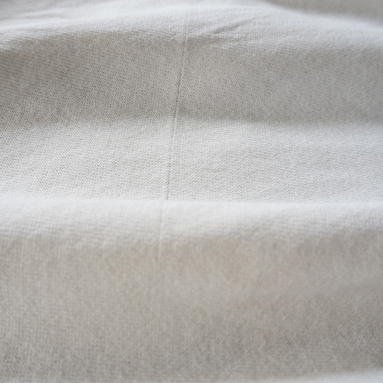 ボディは、アクリル50%/コットン50%の裏毛ですが経年変化により裏パイルが痩せており、通常の裏毛よりもとても薄手に感じられます。
