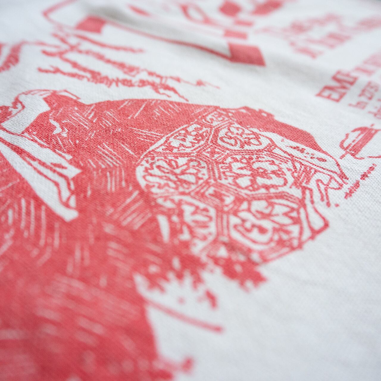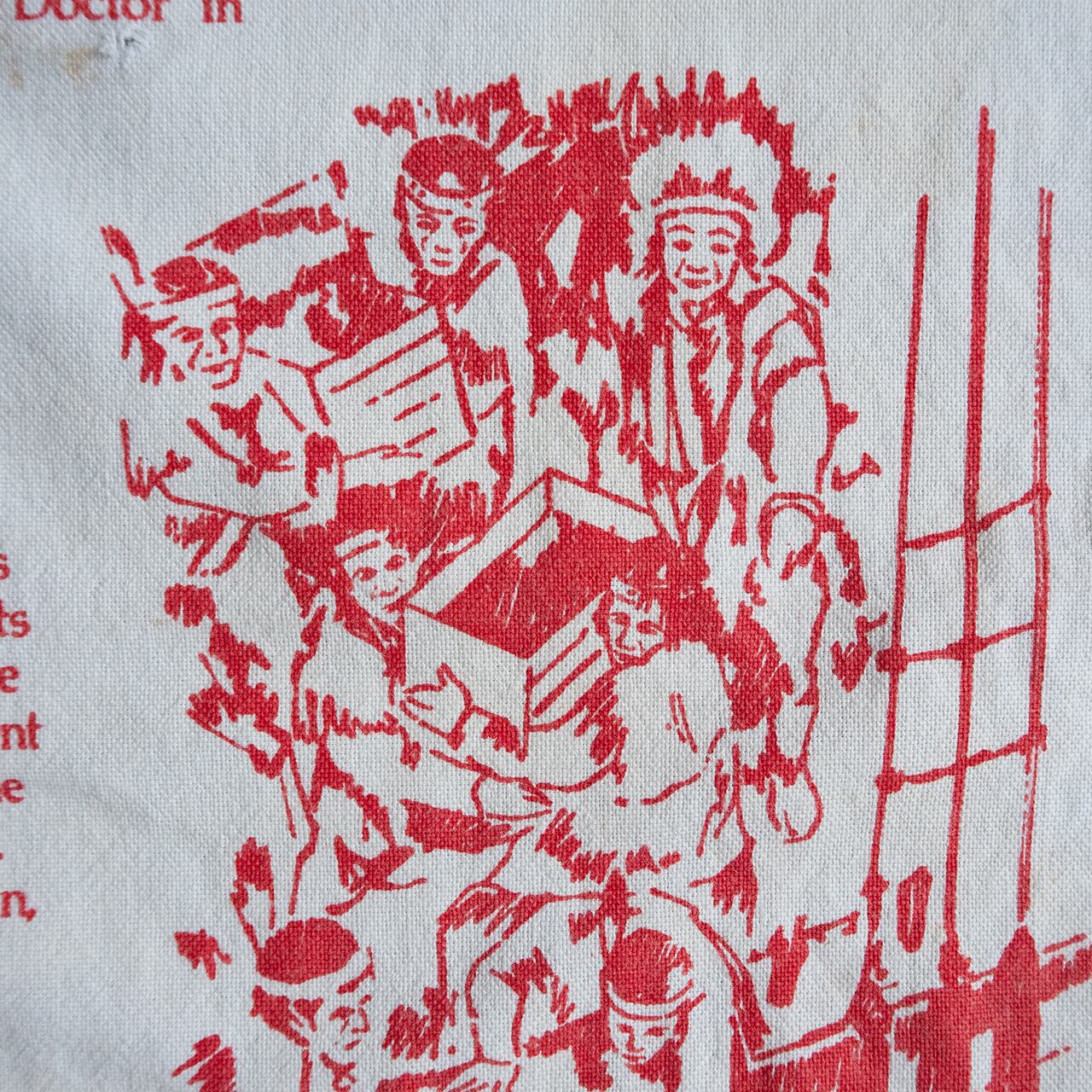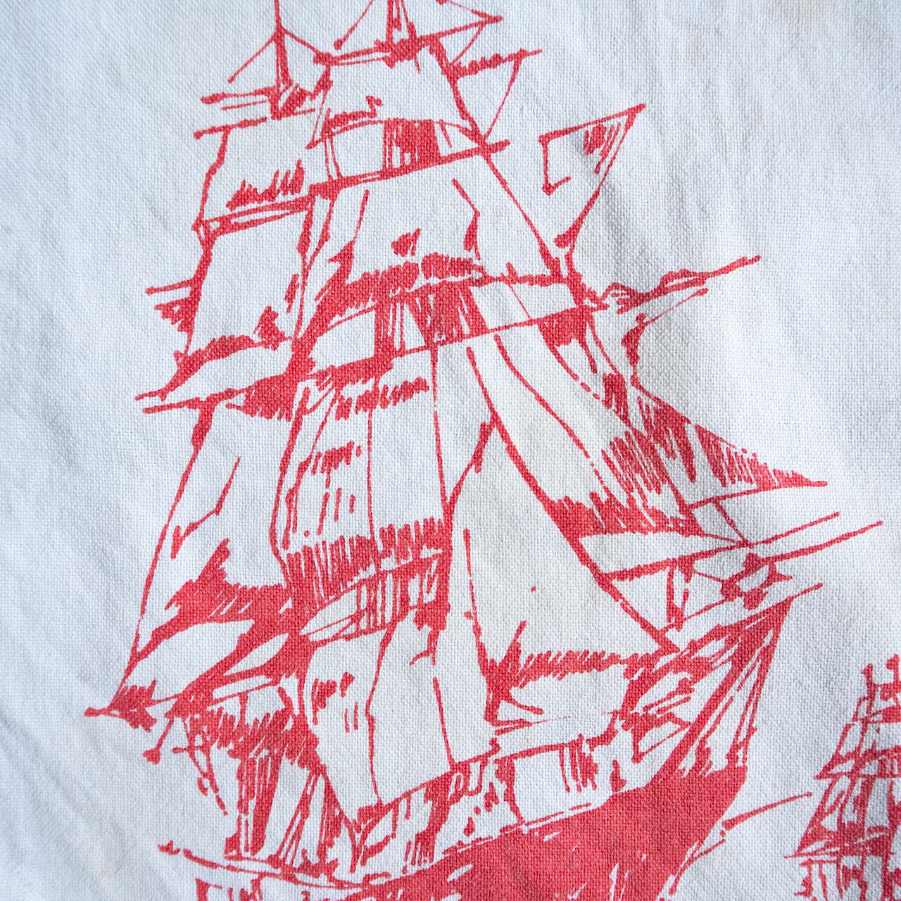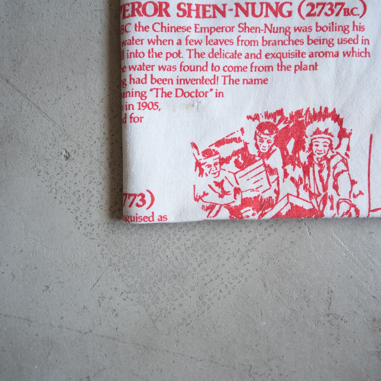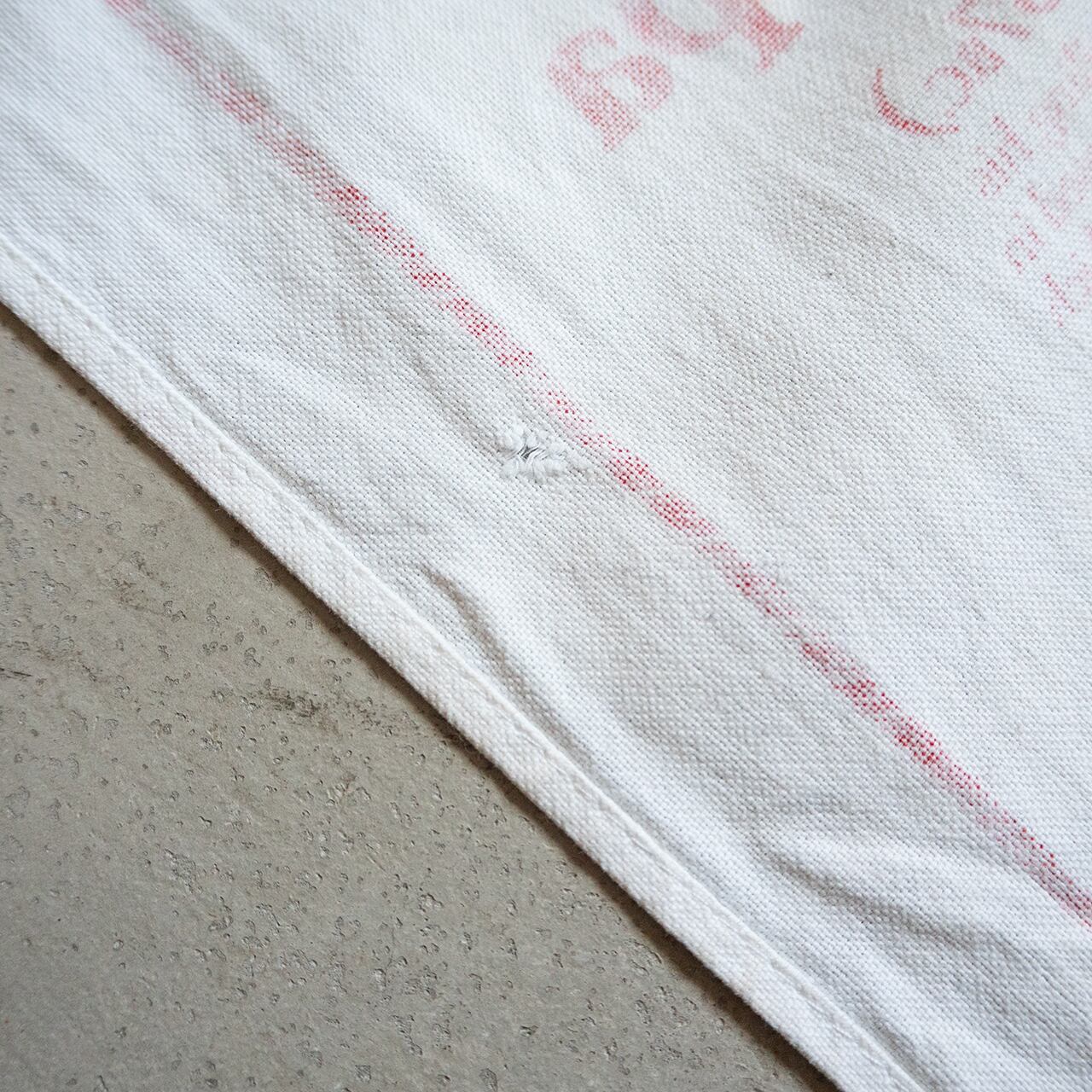 劣化、穴などもある布地ですが、イギリスと紅茶の歴史を、グラフィックとタイポグラフィーで綴ったティータオルとも言え、キッチンクロスやランチョンマット、インテリアとしても楽しめそうです。