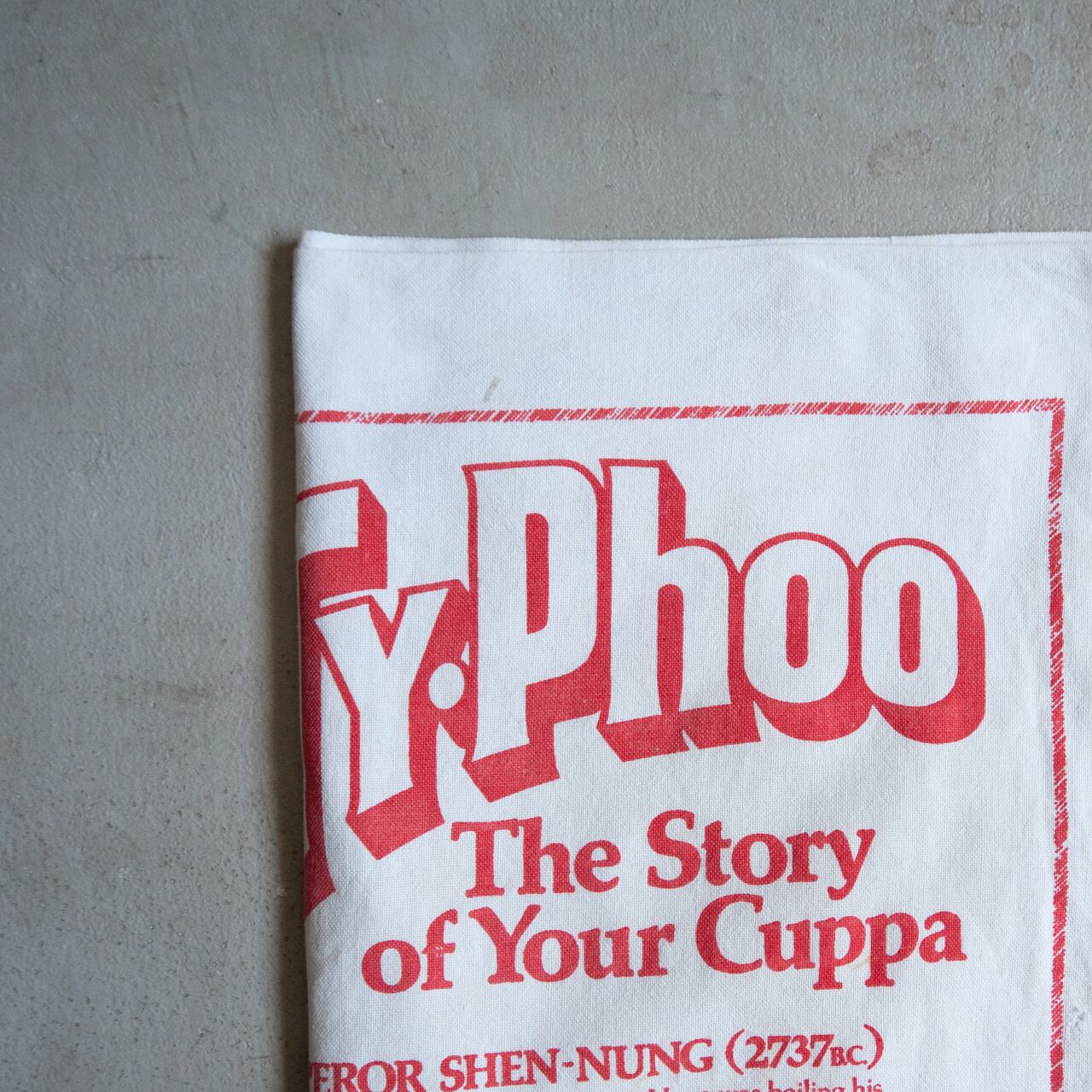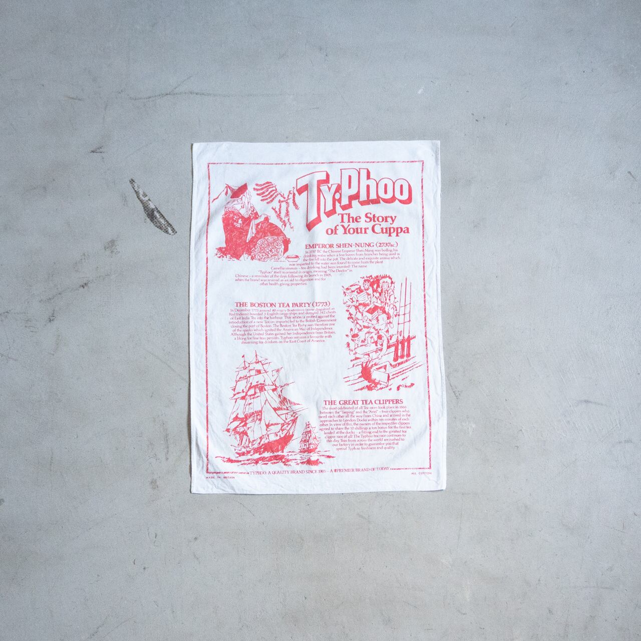 Typhoo(タイフー)と呼ばれるイギリスの紅茶ブランドが作っていたティータオルになります。