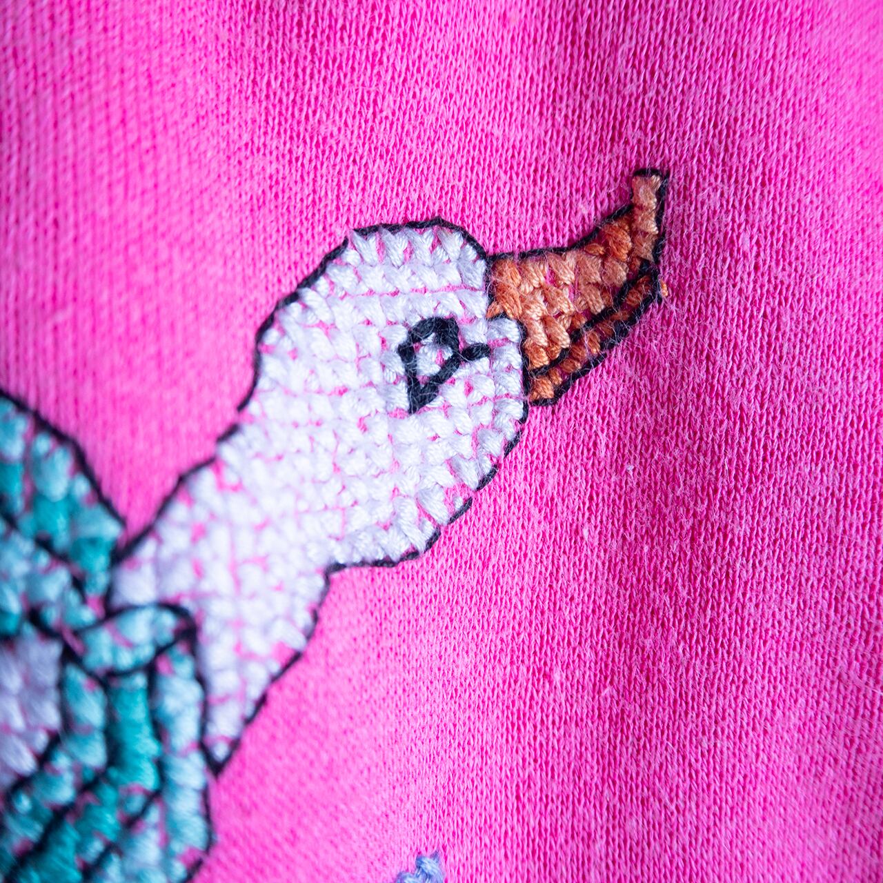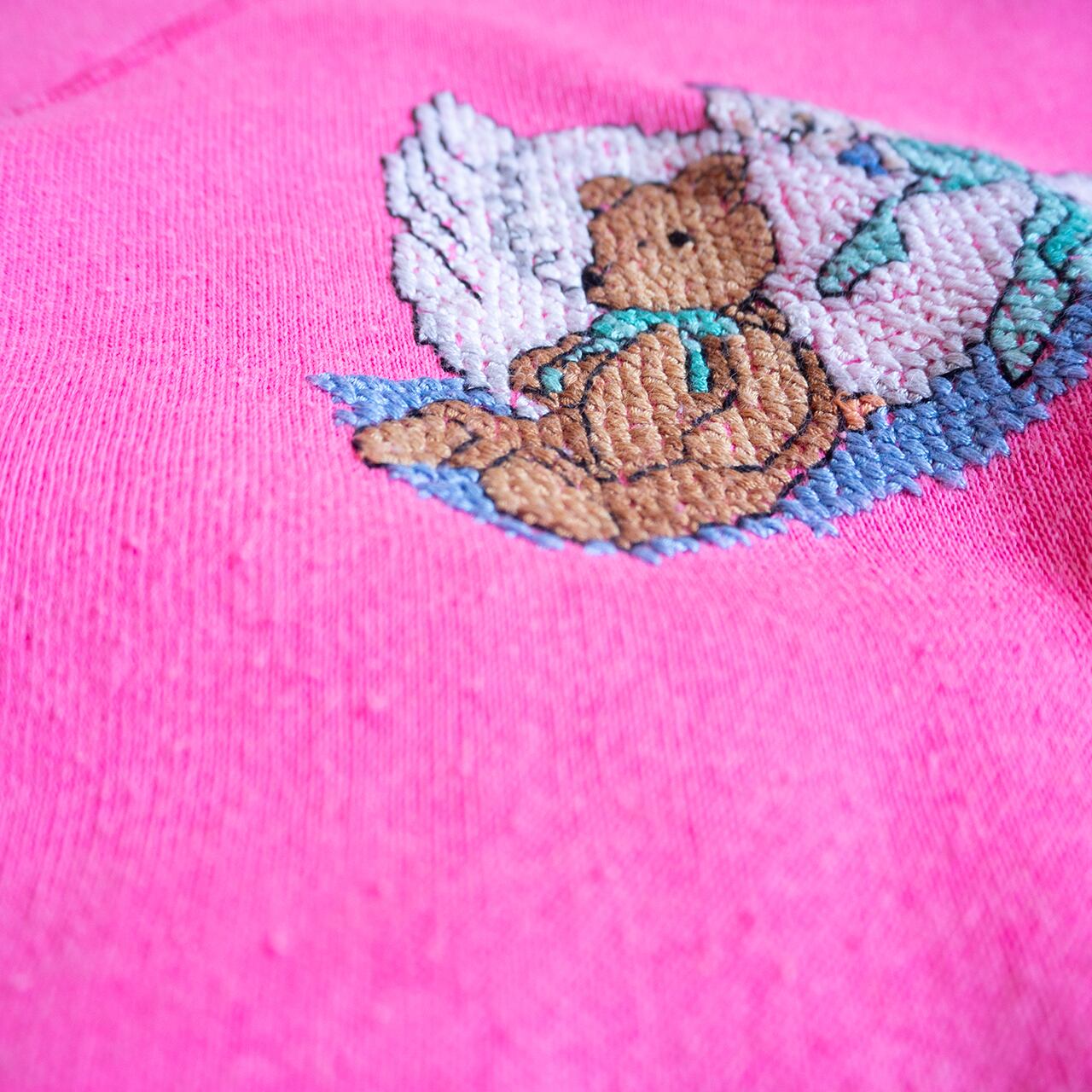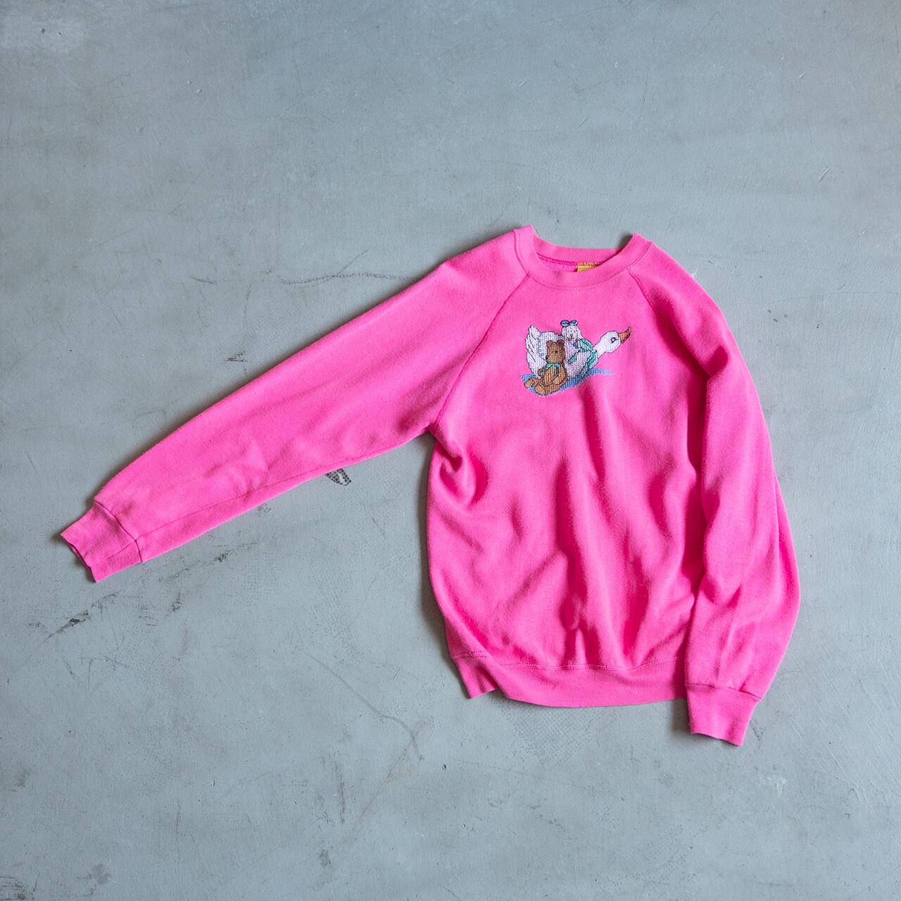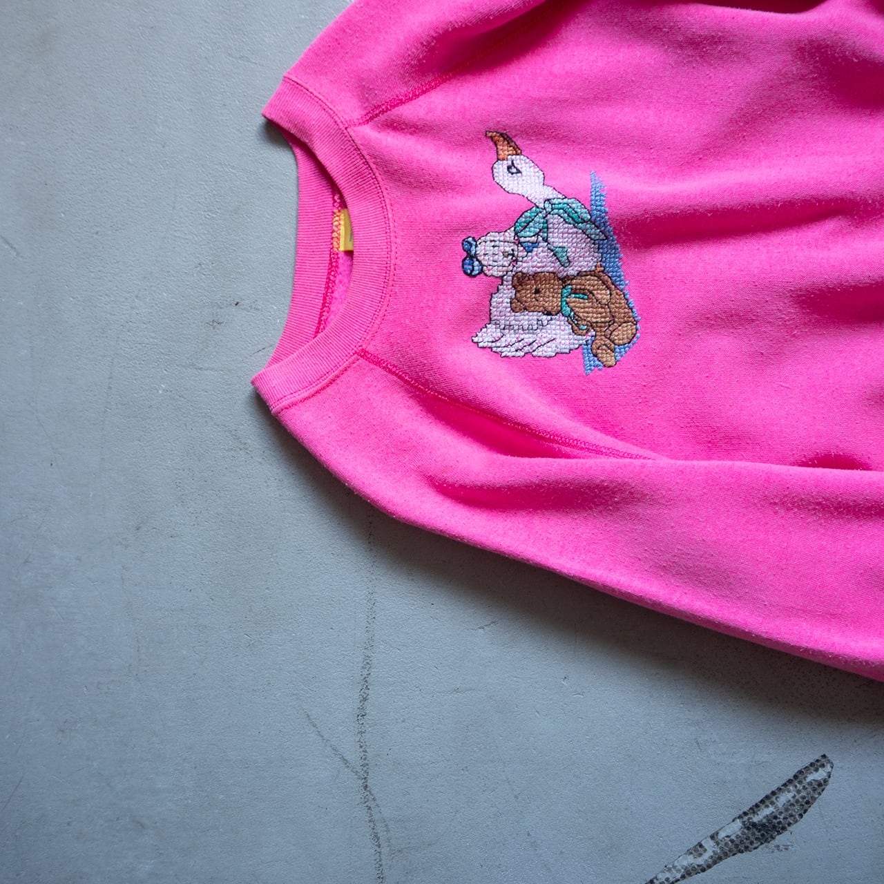 80、90年代のヴィンテージスウェットで、稀にある刺繍アイテムは、愛らしさと力の抜けた雰囲気があり気に入っています。