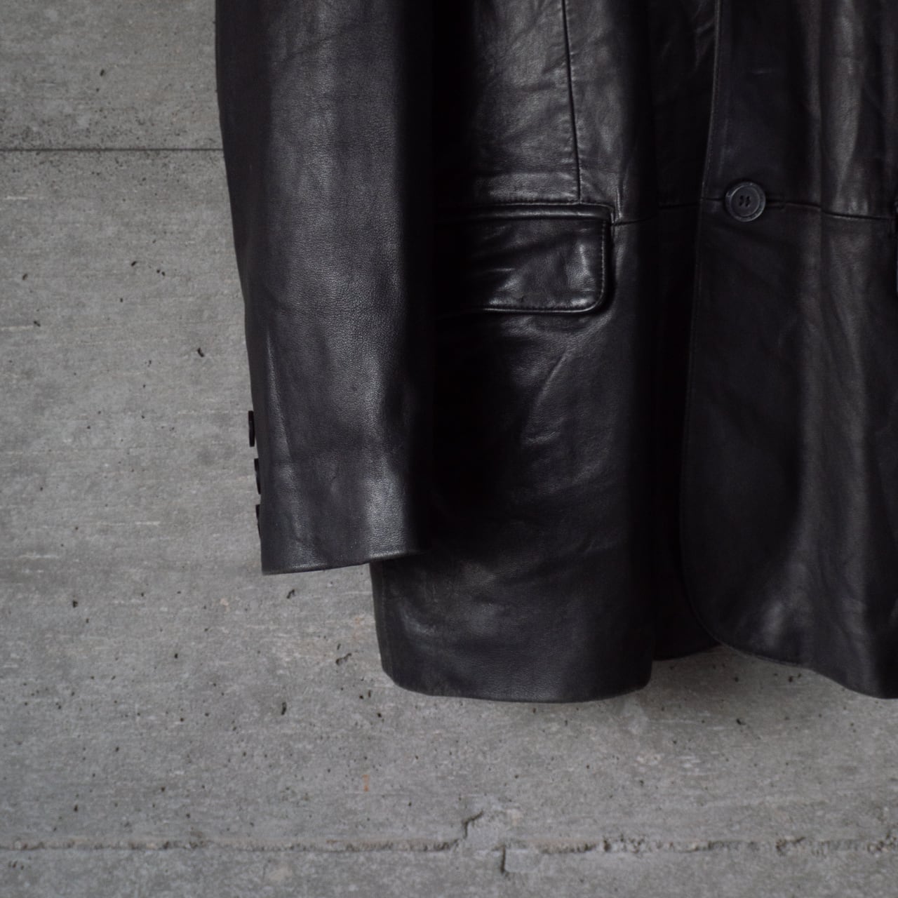 黒いレザーのゆったりとしたラペルジャケットが一着あれば、大人のファッションとしての雰囲気を保ちながらも、色々なテイストやカラー、時代感のミックスを楽しめると思います。