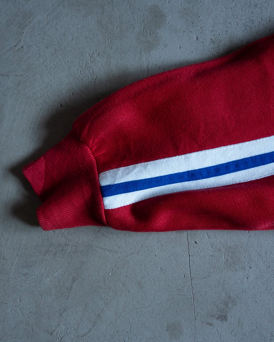 赤をベースにブルーとホワイトのラインや切り替えがバランス良く組み込まれた、Hush Puppies(ハッシュパピー)のジップトップです。
