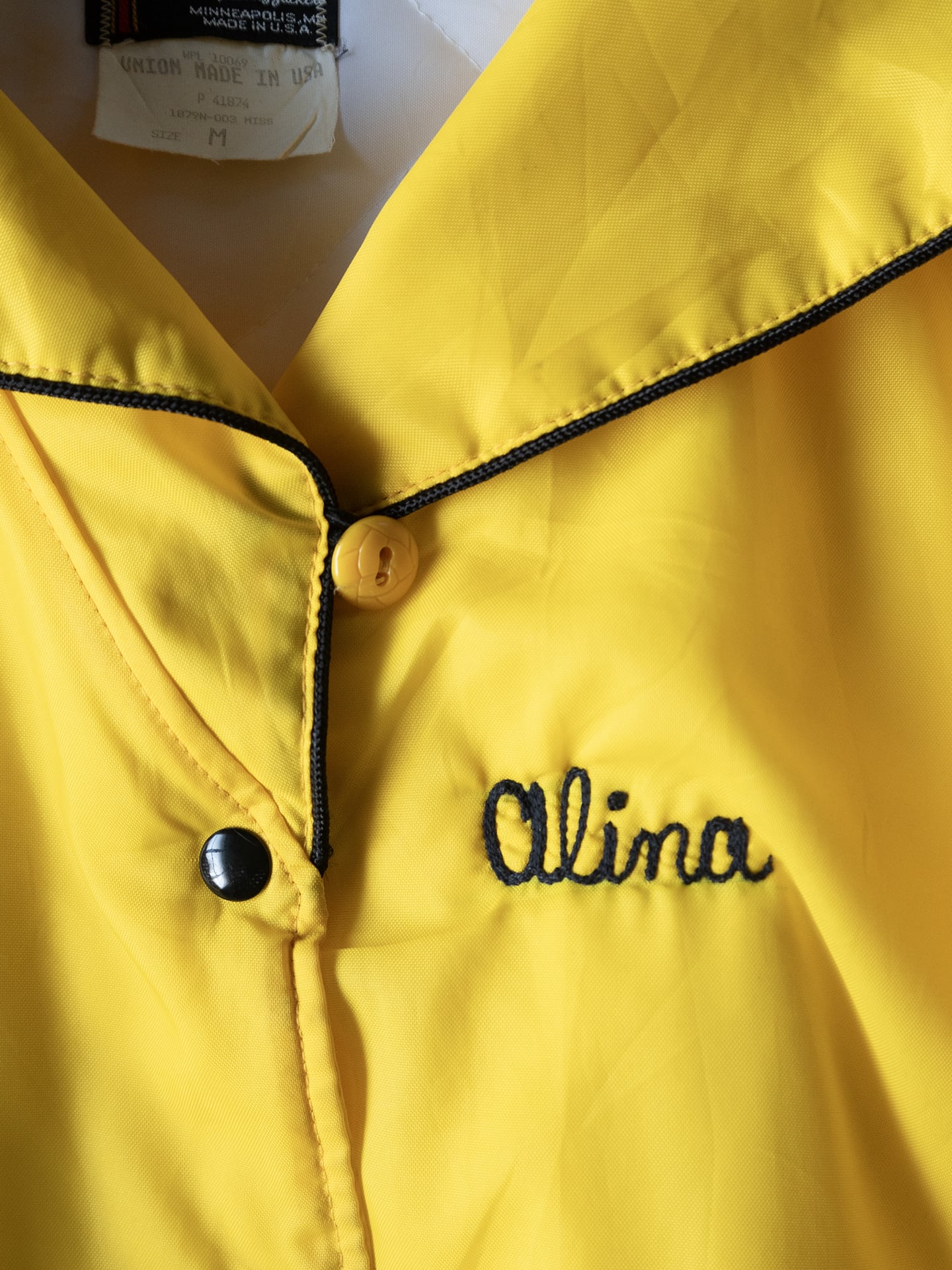 どのスポーツに属したモデルかは不明ですが、左前(左前身頃が先に閉じられ、体に近くなる)になっていることや、所有者刺繍の名前「alina」などから女性向けに作られたものだと思われます。