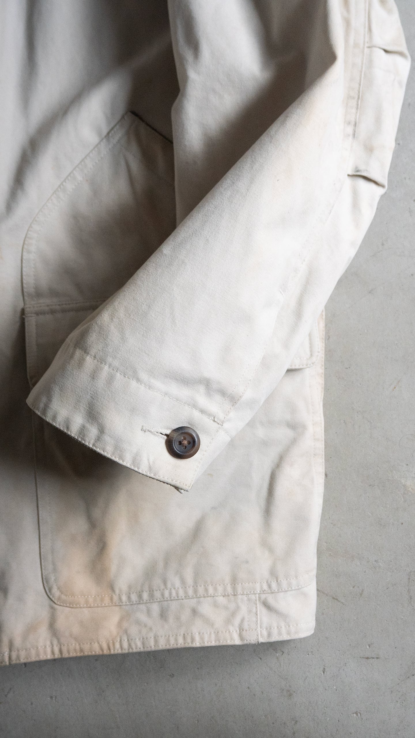 ライトベージュの色味に塗れていますが、薄いシミ、汚れが多数箇所ございます。