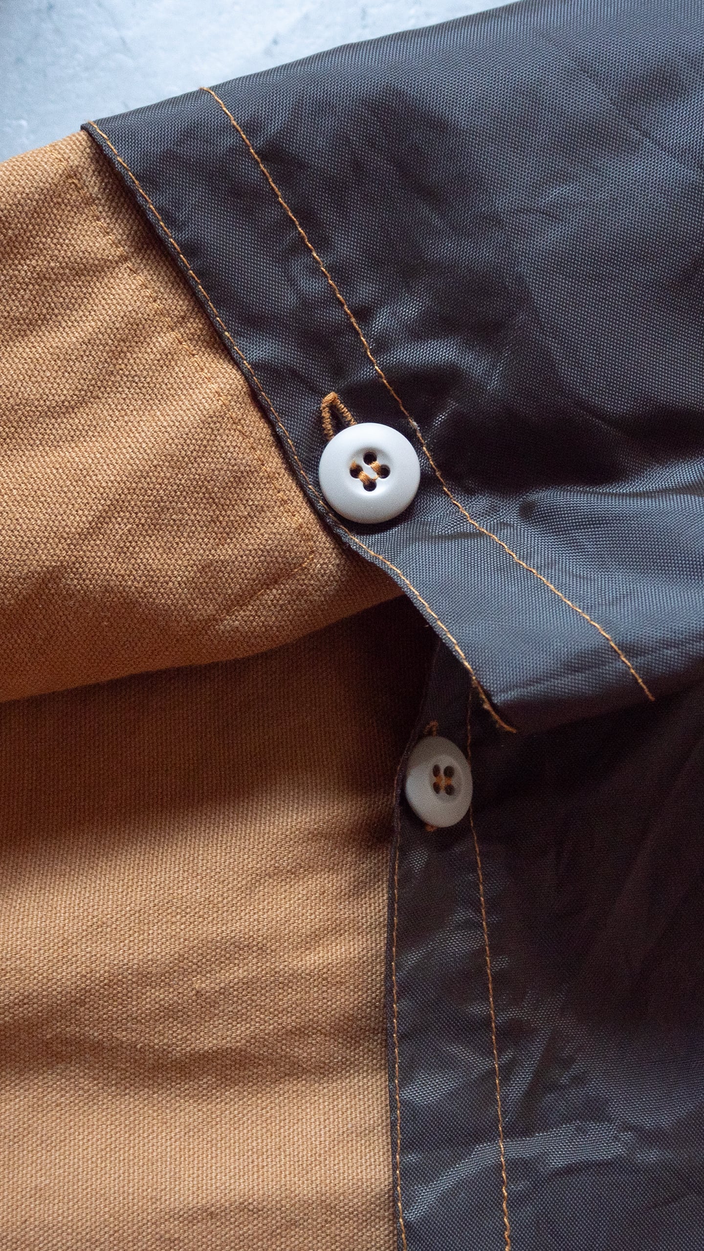 さて今回の個体は、ダックをメインにコーデュロイの羽衿の切り替え、丁寧に虫隠しを施したフロントジップ、そしてややすっきりめの身幅とセットインスリーブという縦長なフォルムの一着です。