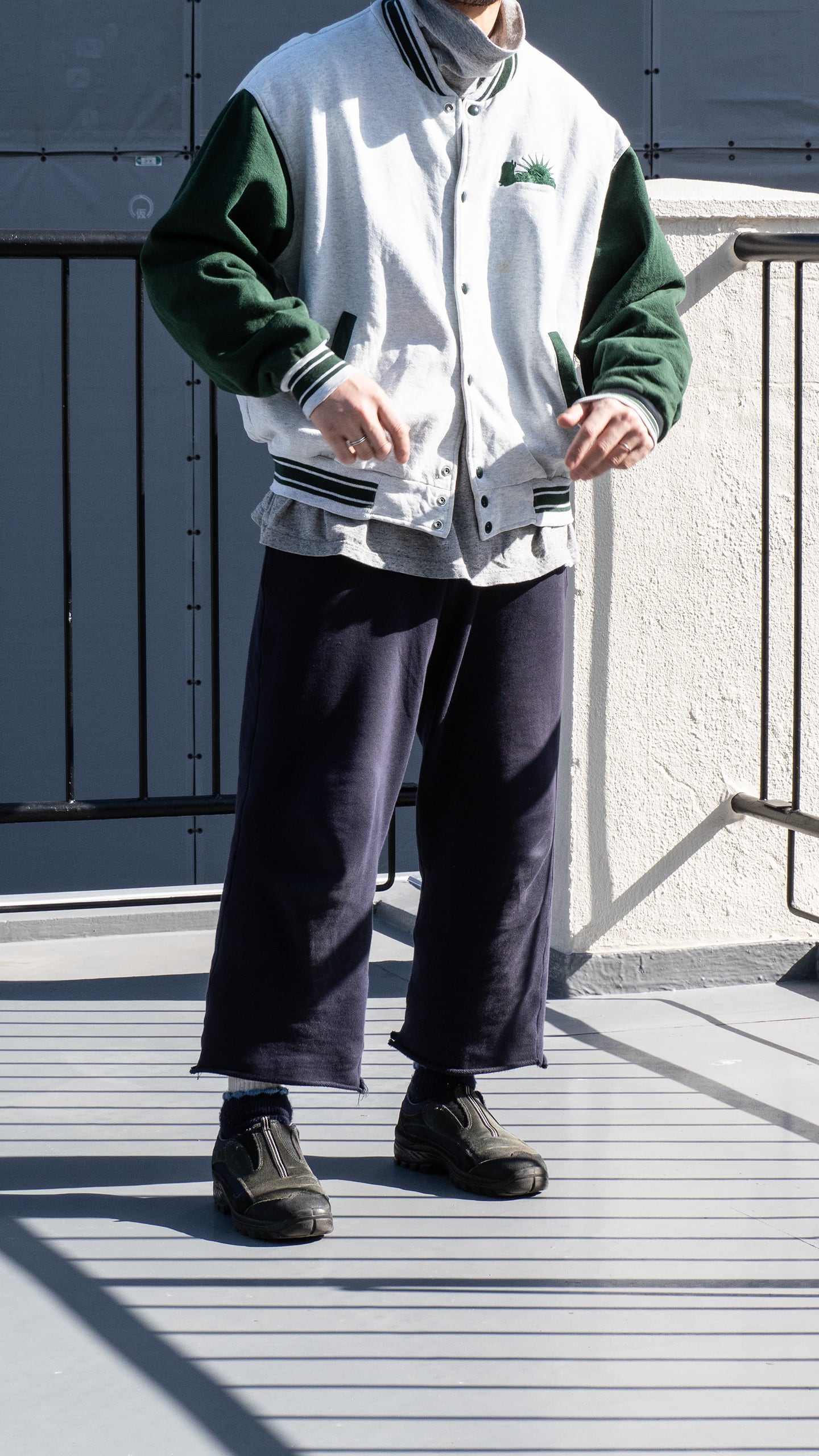 グリーンの袖、リブのボーダー柄、そしてPalo Verdeがさり気なく縫われた胸刺繍と、カラーリングが緑で纏められています。
