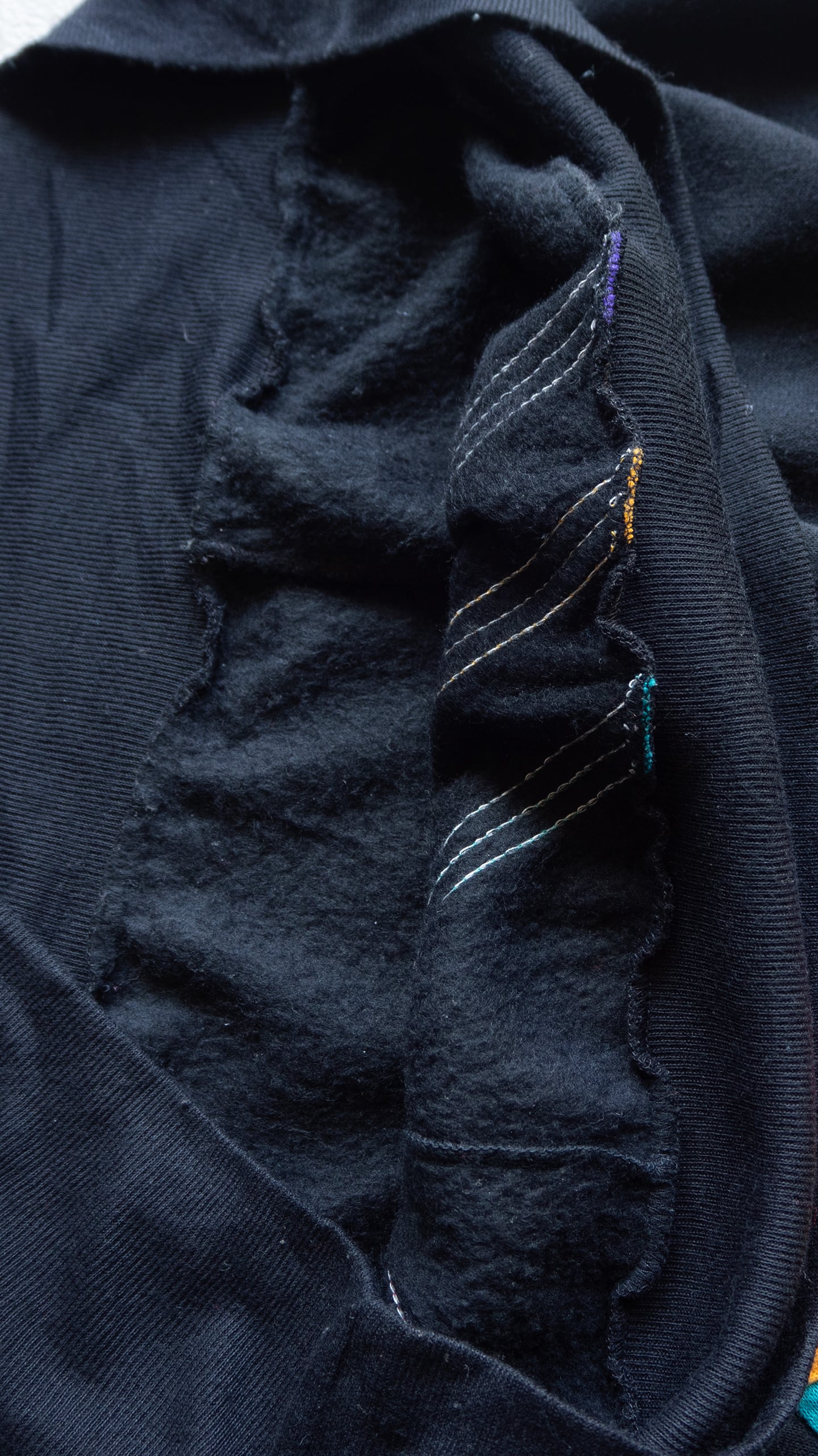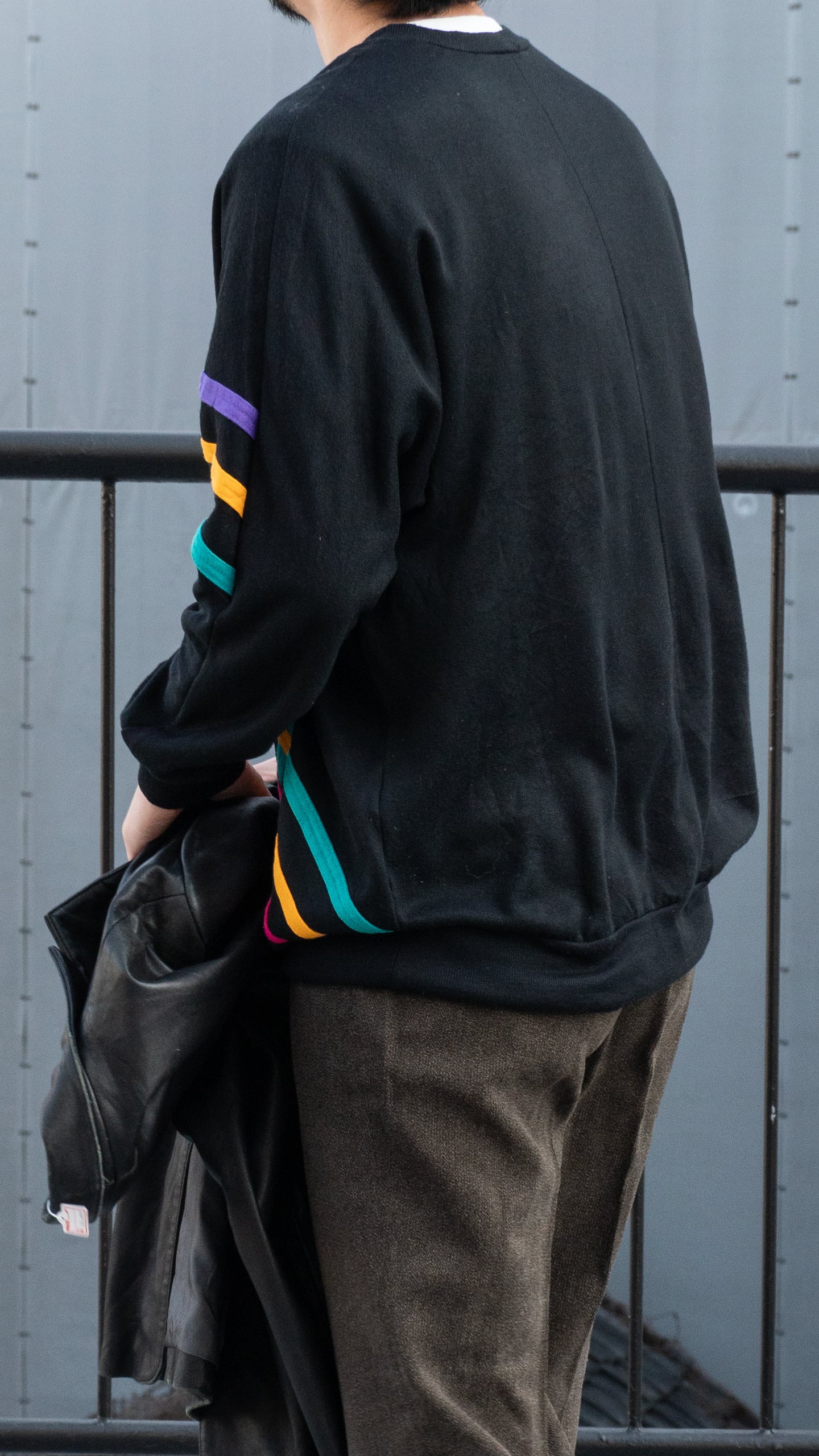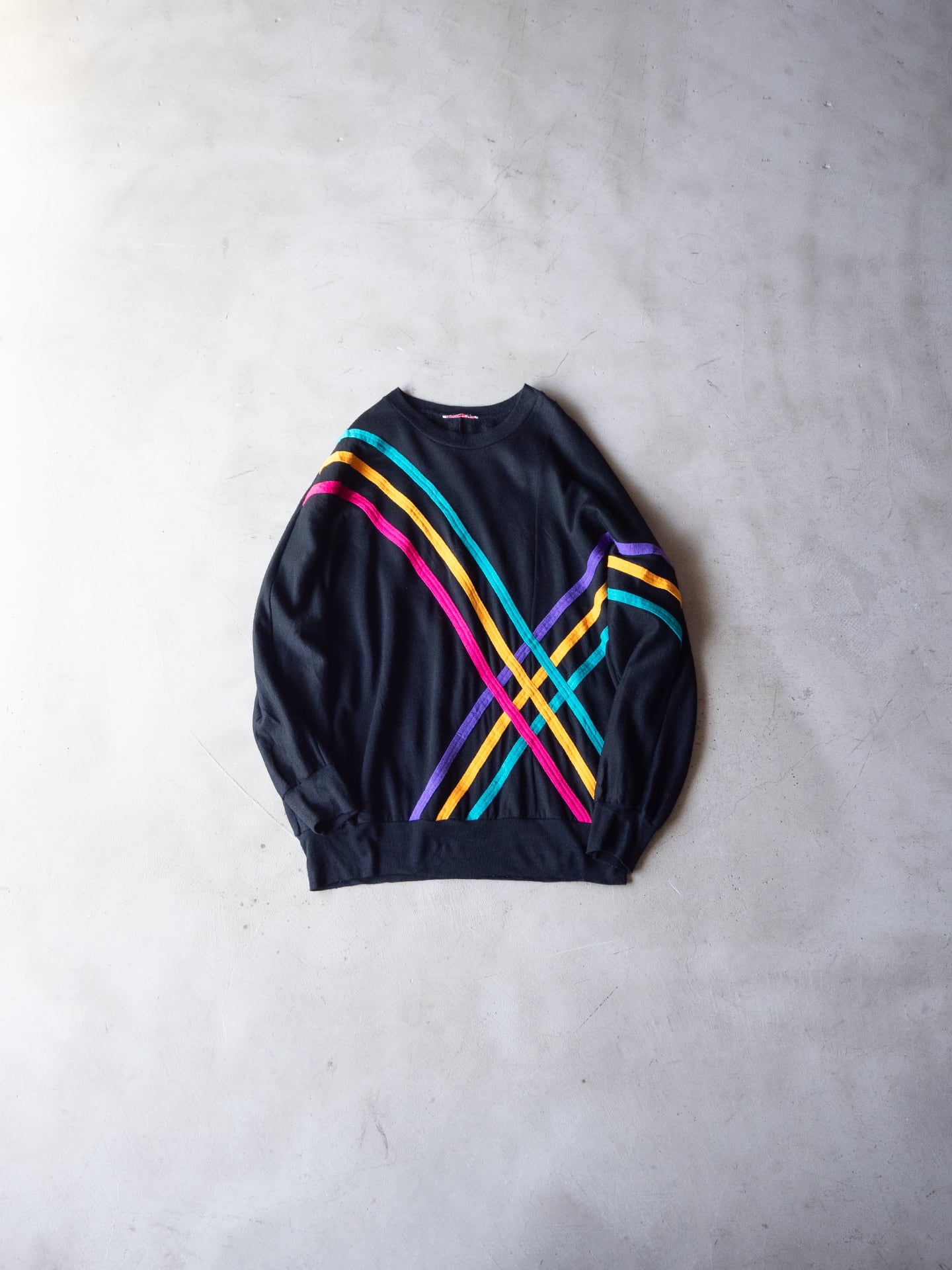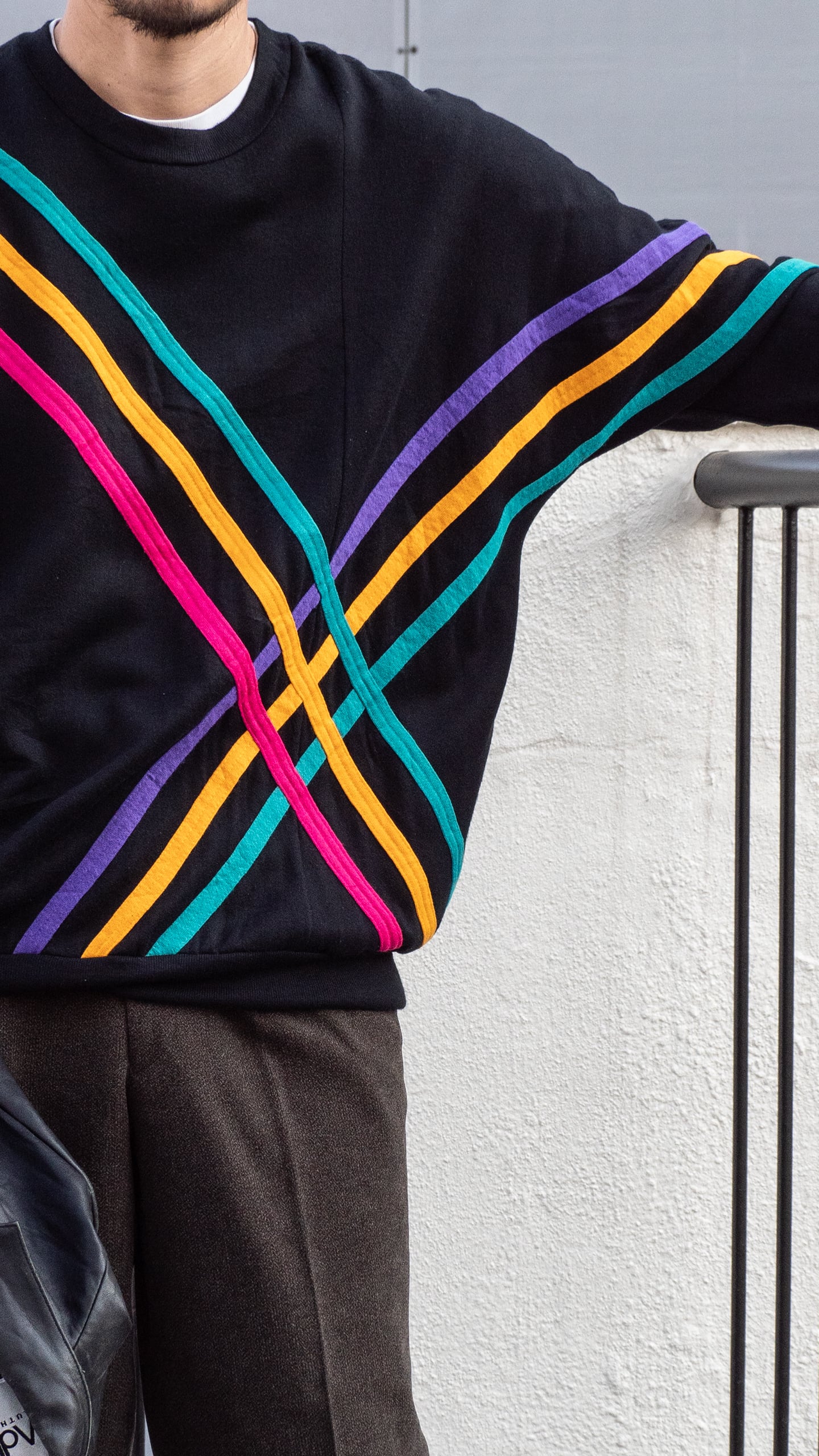 推定90年代製のアクリル製だと思われる、マルチカラーラインのスウェットプルオーバーです。