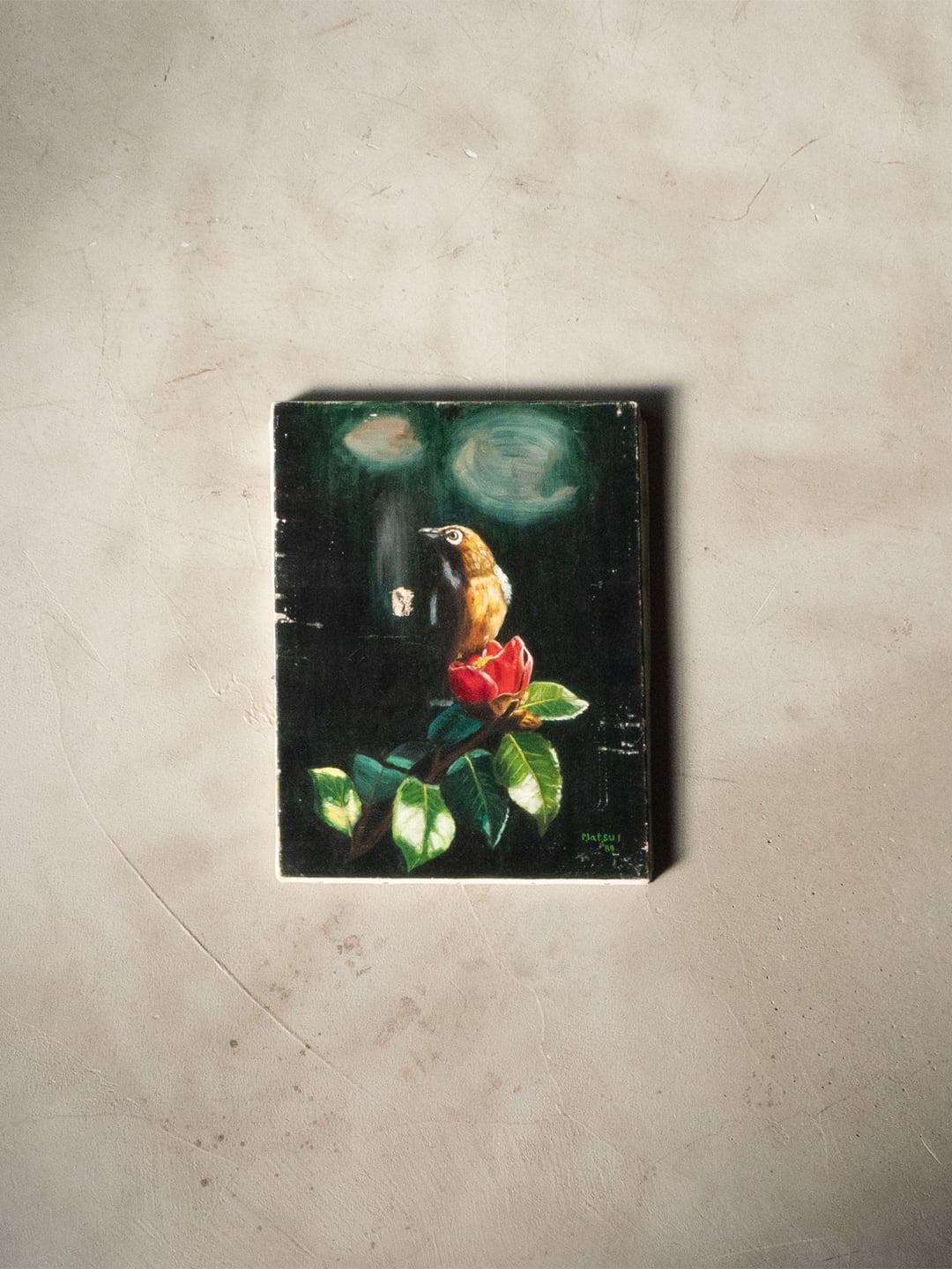 小鳥と椿を描いた、油絵です。