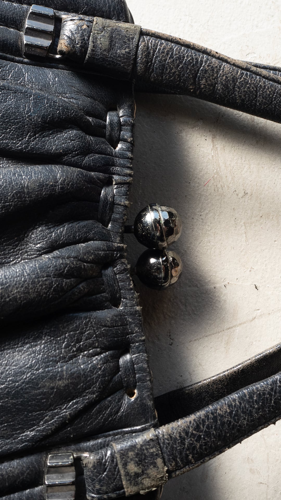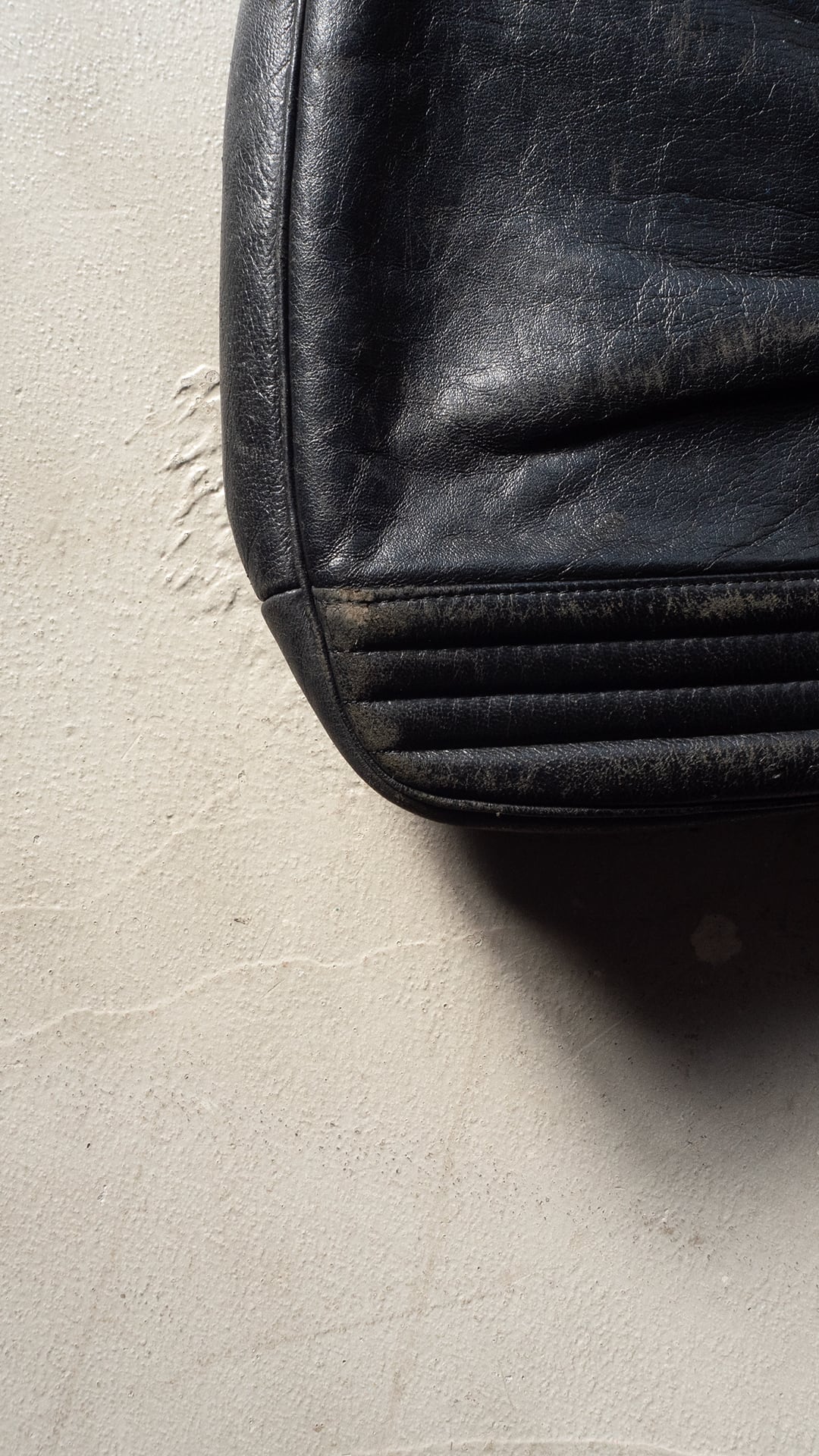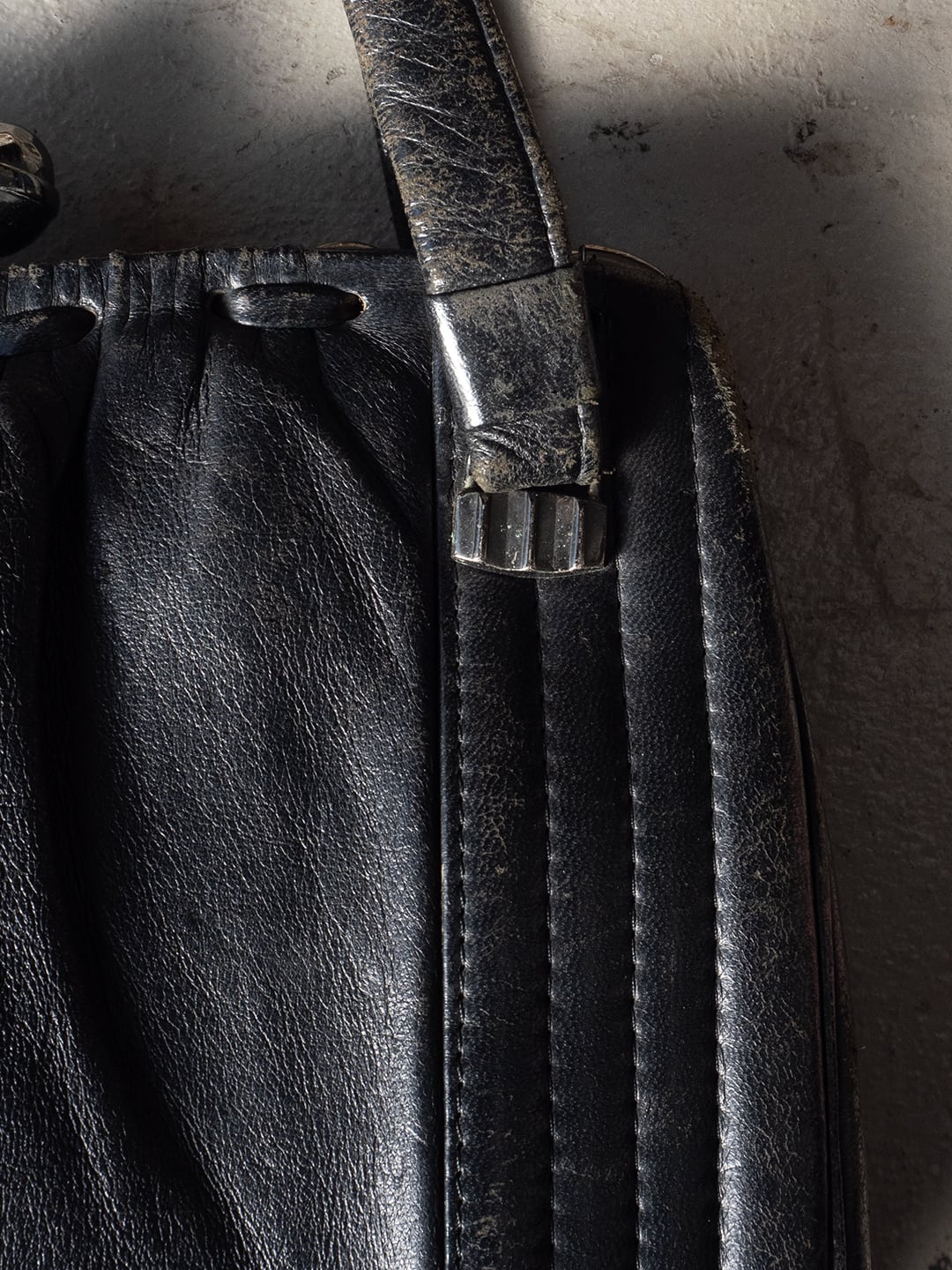 写真の通り、油分も概ね抜けていて、傷やスレが多数ございますが、再び油分を与えて、磨いて、引き継いで使っていただけると、ものバッグ自体にも喜ばしいことだと思います。