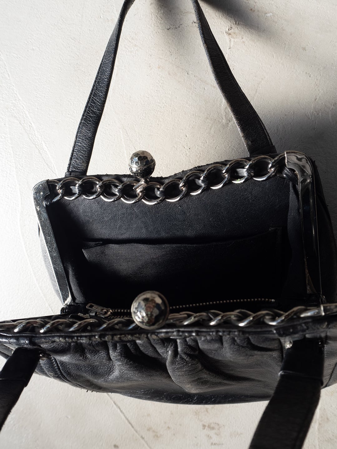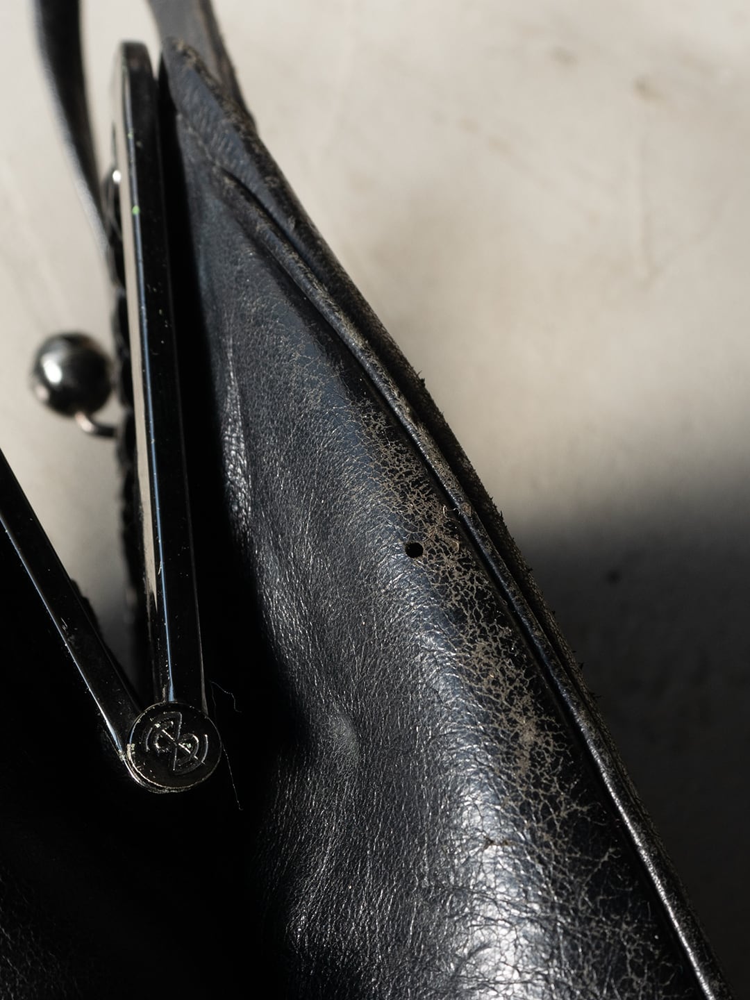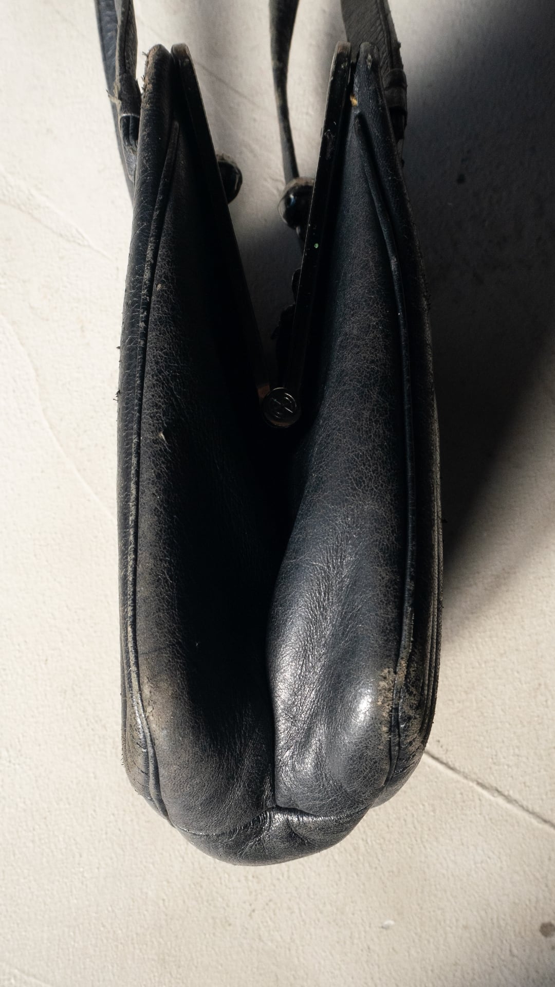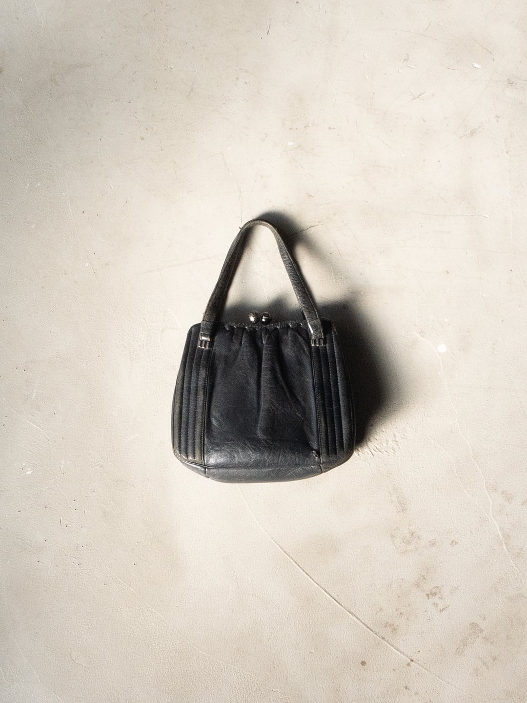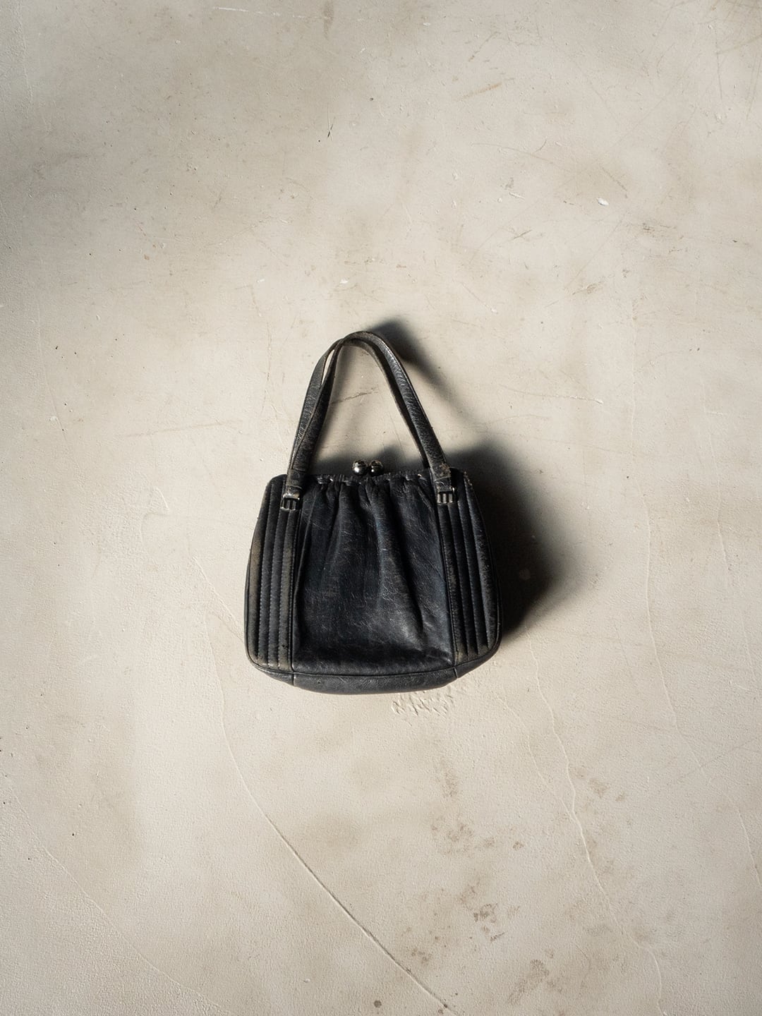 昭和期の国産品と思われる、レザー製のがま口バッグです。