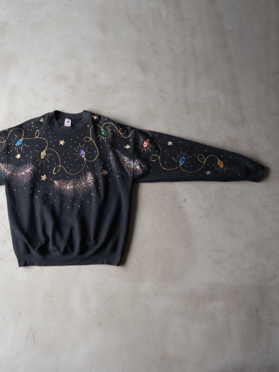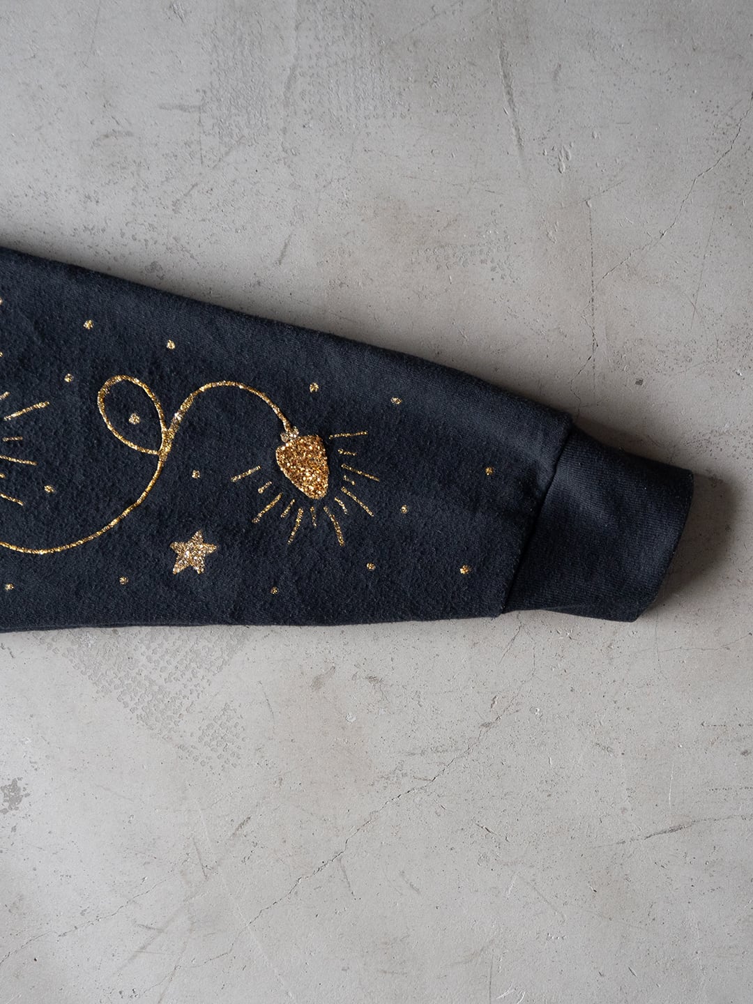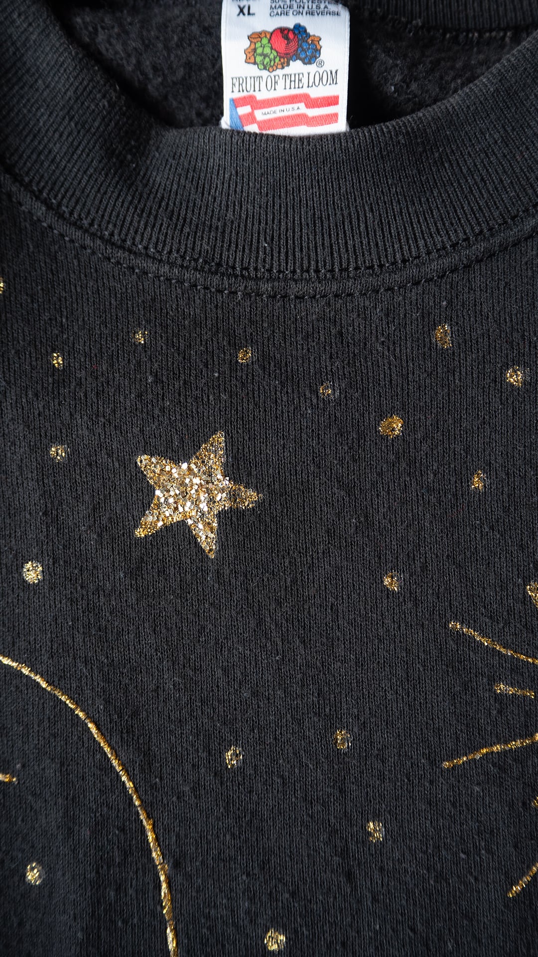 90年代前後のFRUIT OF THE LOOM社製ボディに、ラメ入りのペンによるデコレーションが施されたスウェットです。