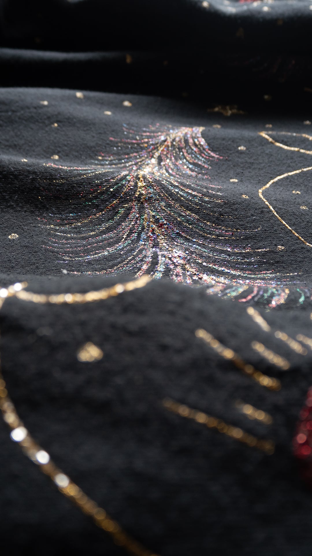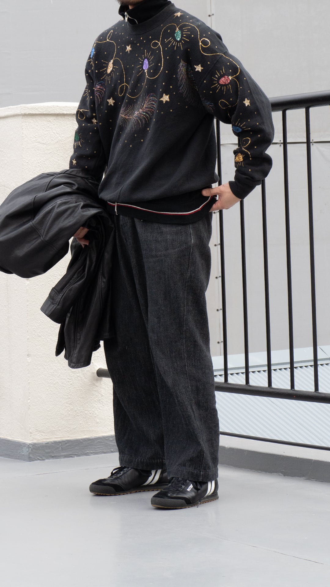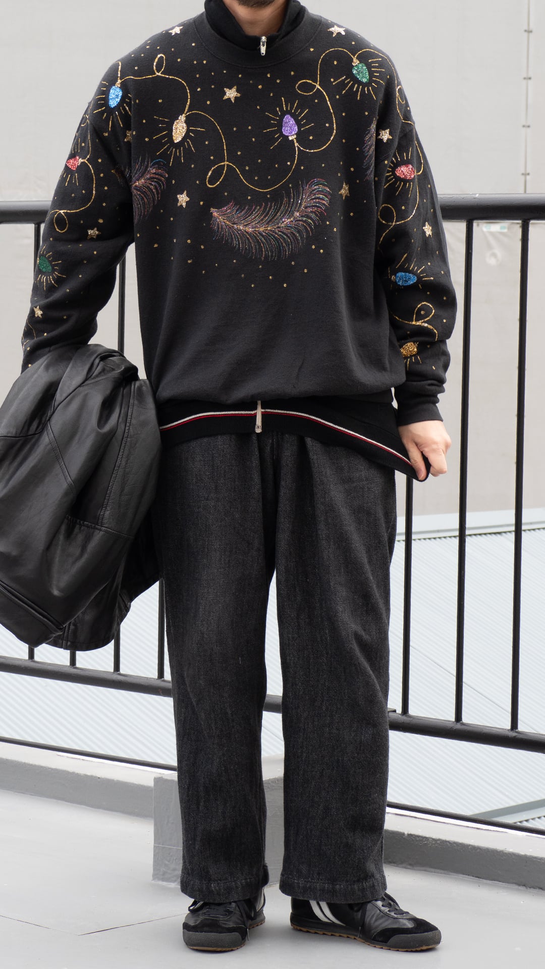 店主自身を含め、未知の領域となる装飾スウェットですが、ボディがブラックということで、ピックに踏み切ったと言っていいです。