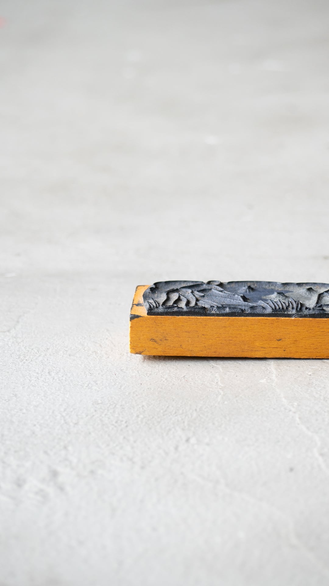 紙ものの装飾として活用しても良いですし、この木の質感、模様に染み込んだインクの雰囲気を生かしたインテリアとしてもおすすめです。