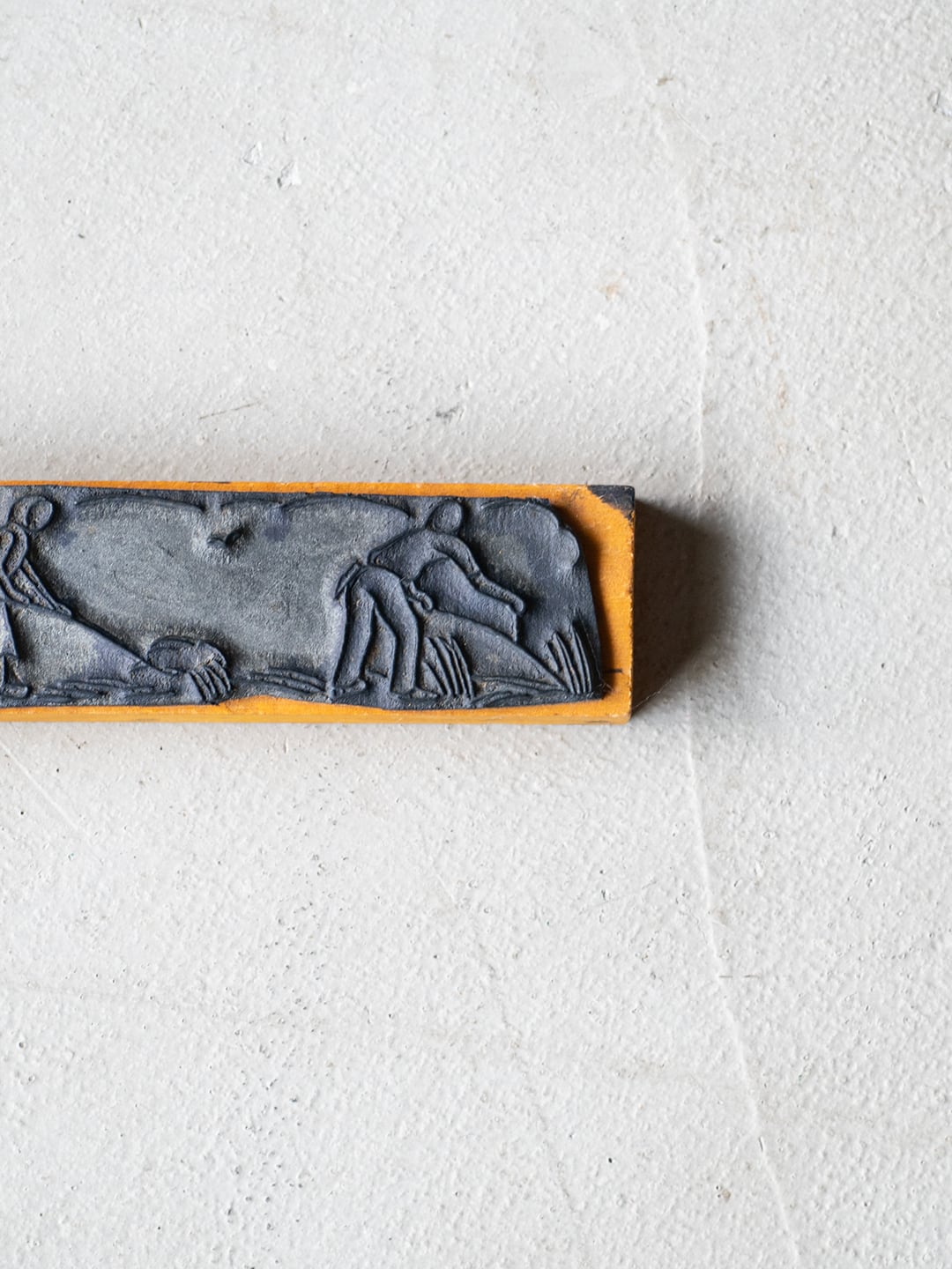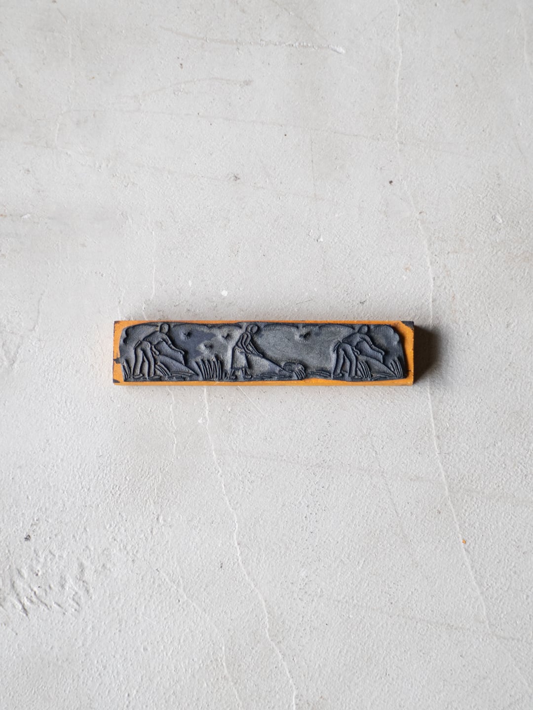 このような木版は、フレンチフリーズスタンプ(French Frieze Stamp)と呼ばれ、主にフランスの民芸品として存在する、古い木製スタンプで、スクラップブッキング、テキスタイルアート、刺繍などの装飾用に用いられてきました。