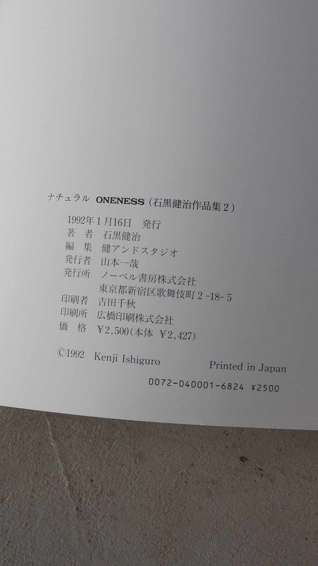 "ナチュラル 石黒健治作品集2 Oneness" vintage book