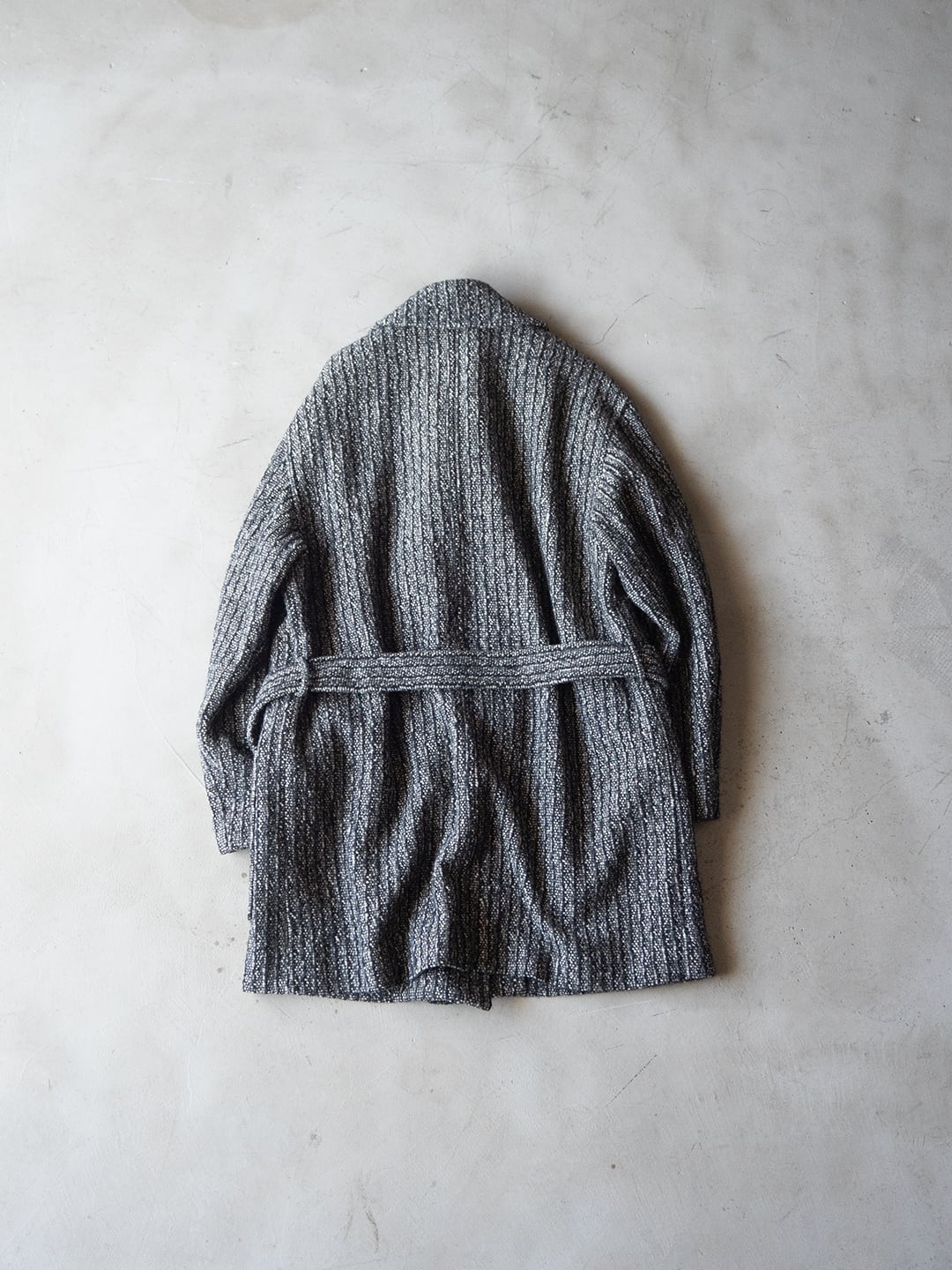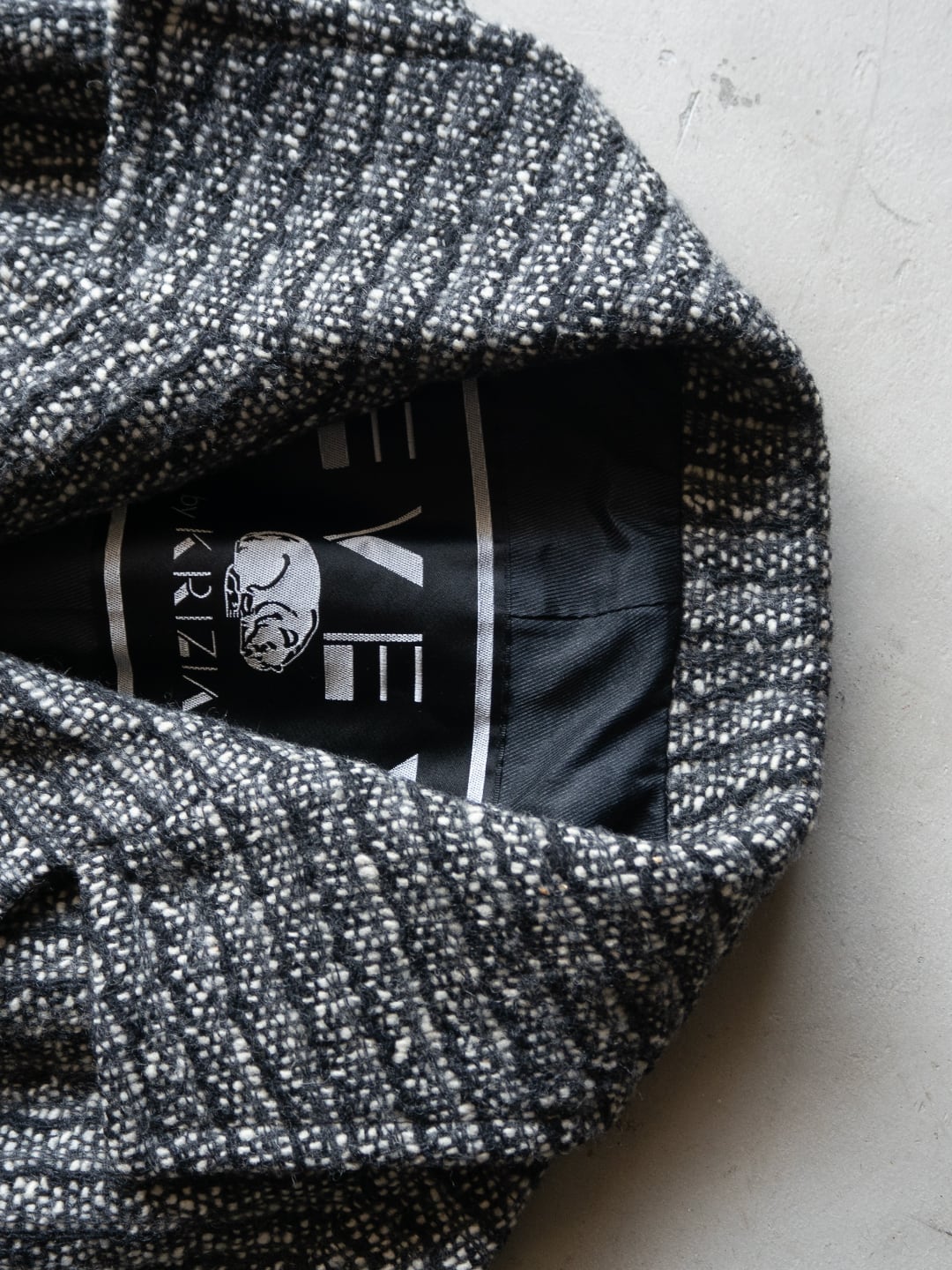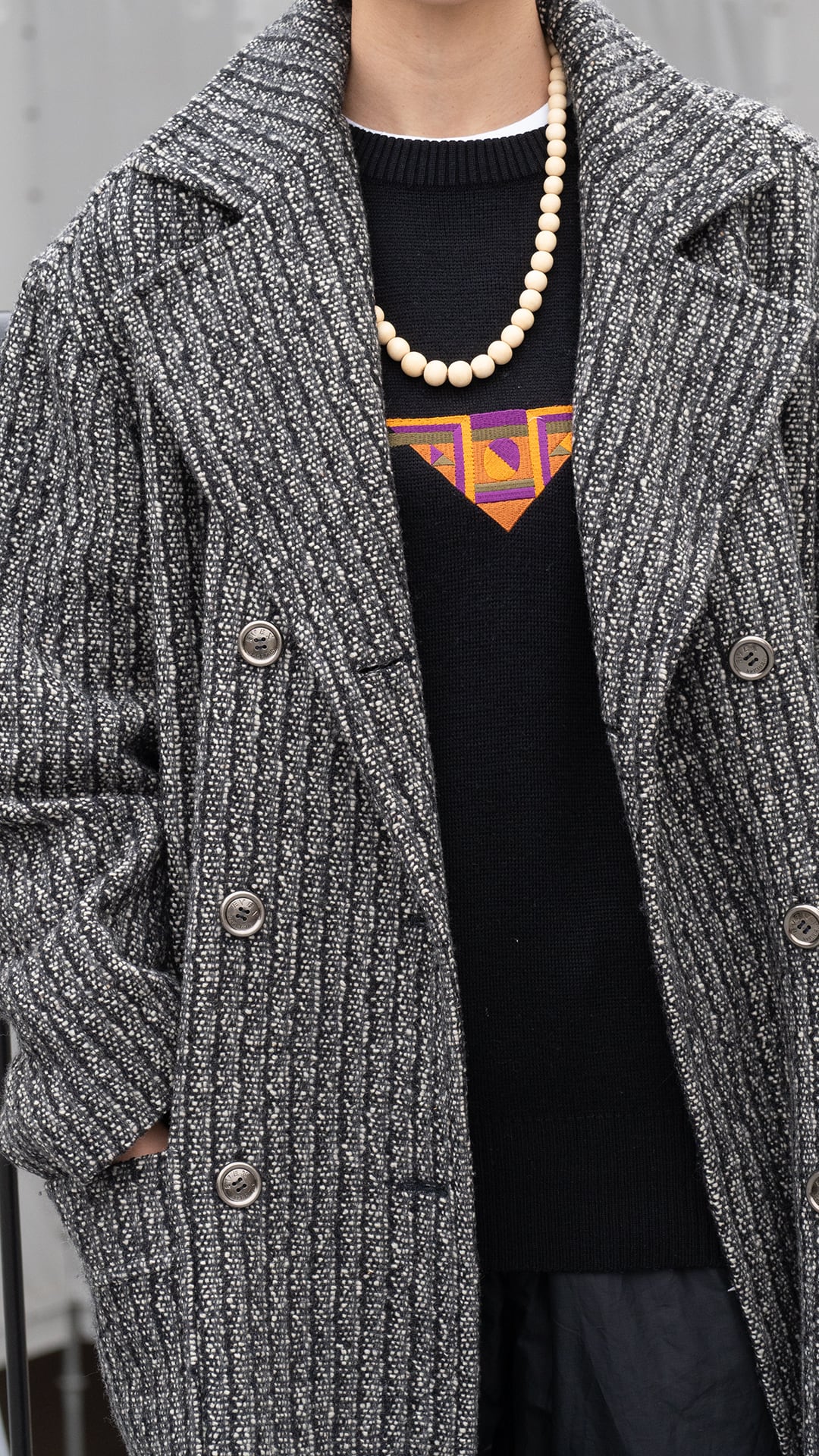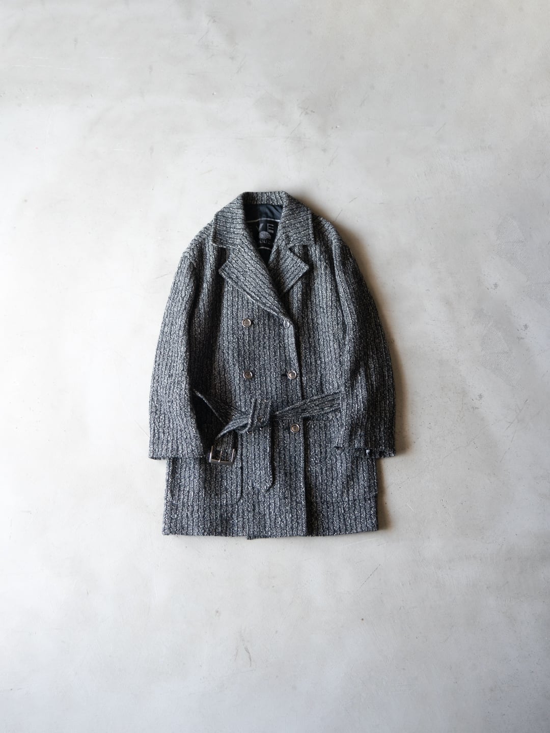 リングツイードを思わす、太く不揃いな紡毛糸で取られた厚手のツイードをメインファブリックに裏地を付きダブル型に仕立てています。