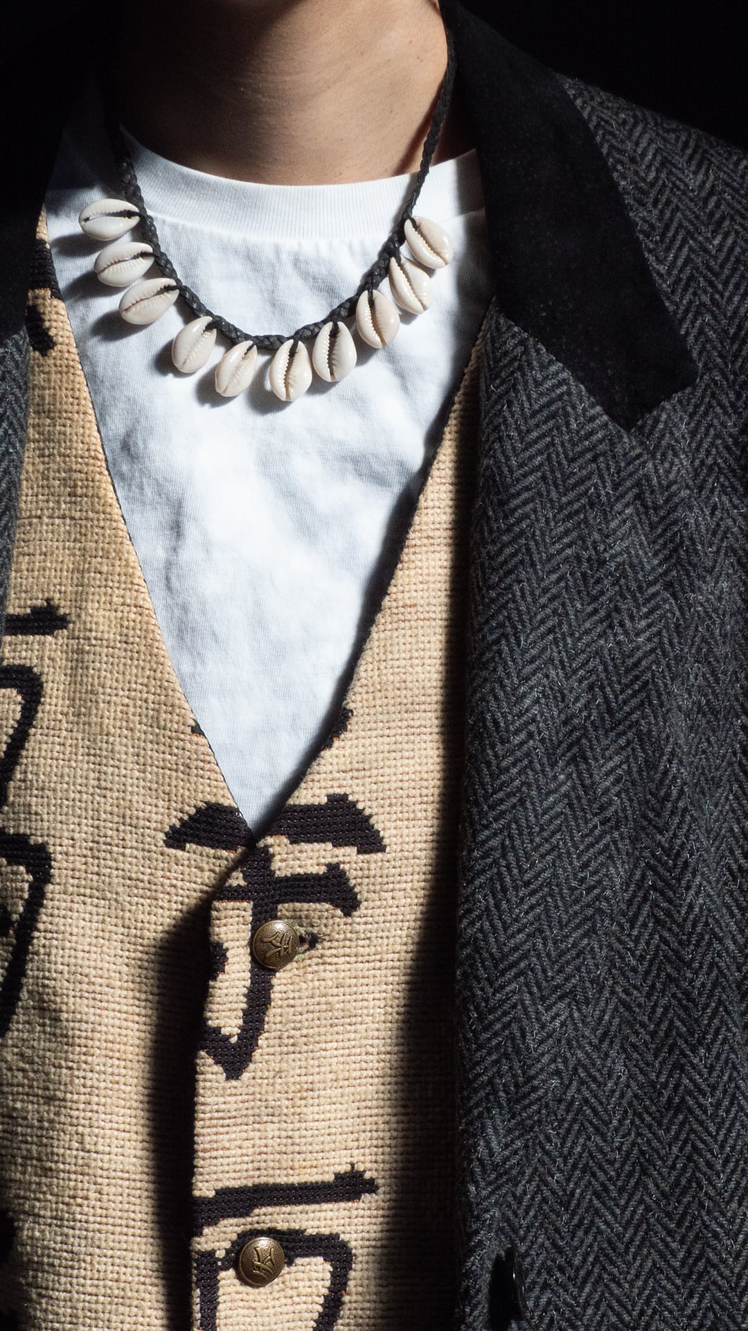 装飾品として用いられるタカラガイは、アフリカの伝説によると、海の力強さと結びついた守護を与える女神の象徴。加えて、富と繁栄の象徴になります。