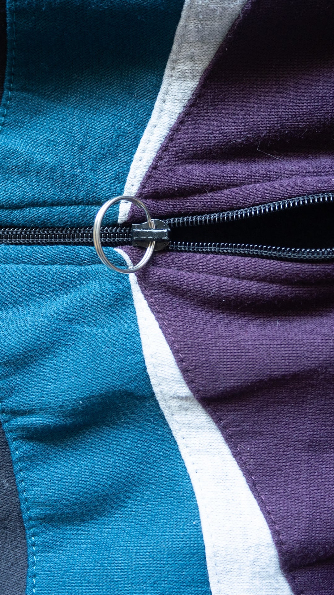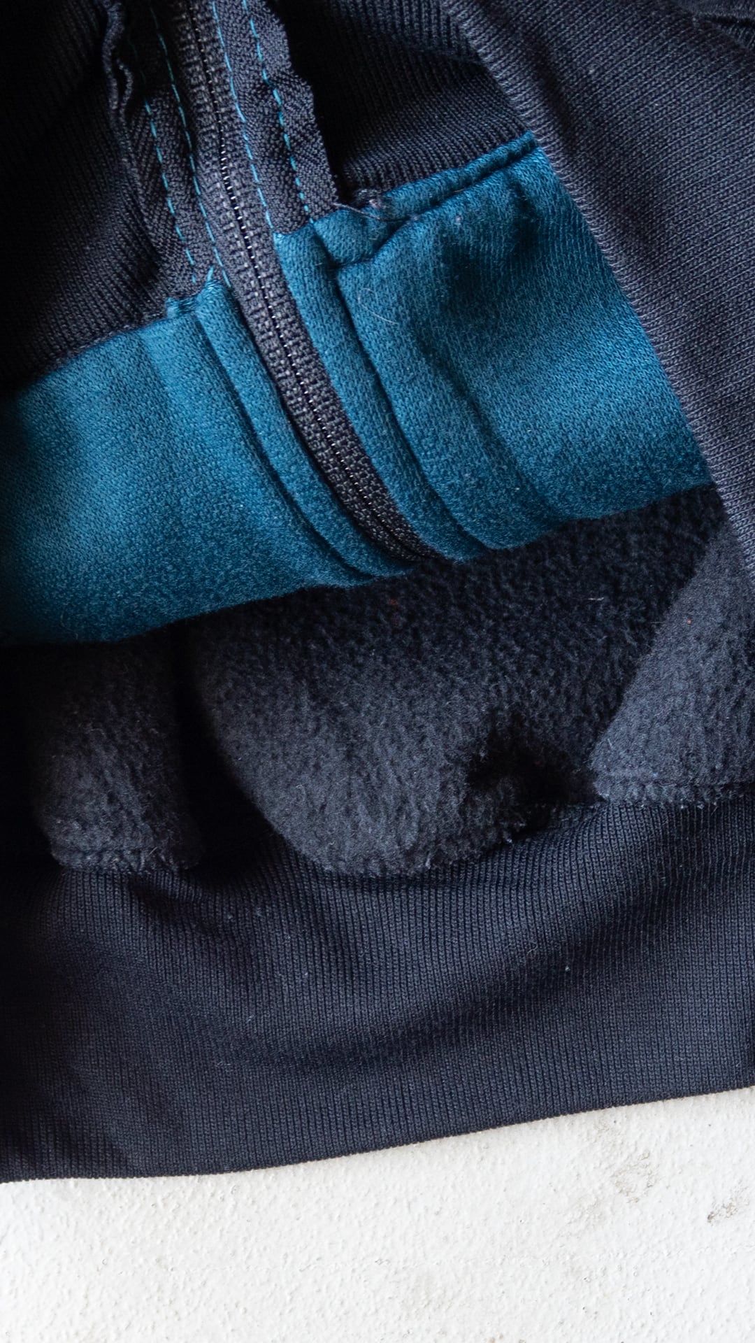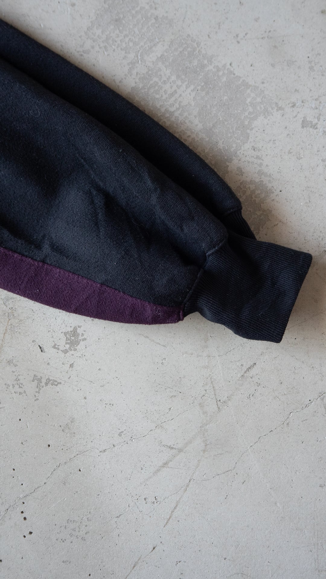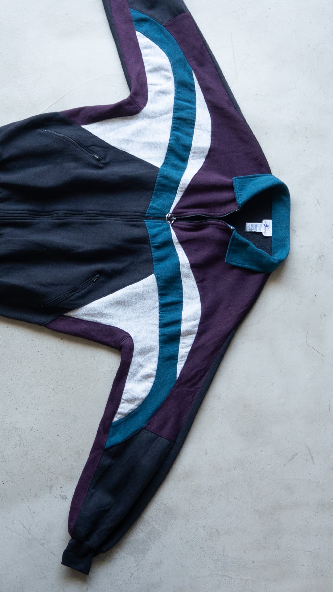 ブラックをメインに、パープルブラウン、グリーンブルー、トップグレーという表現し難い塩梅のカラーで切り替えた、スポーツブランドらしいデザインの一着です。