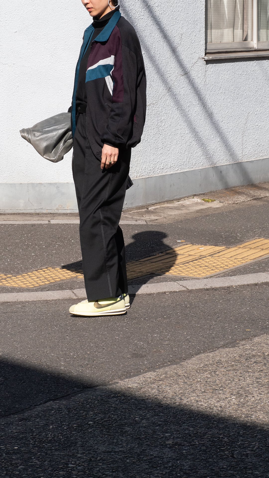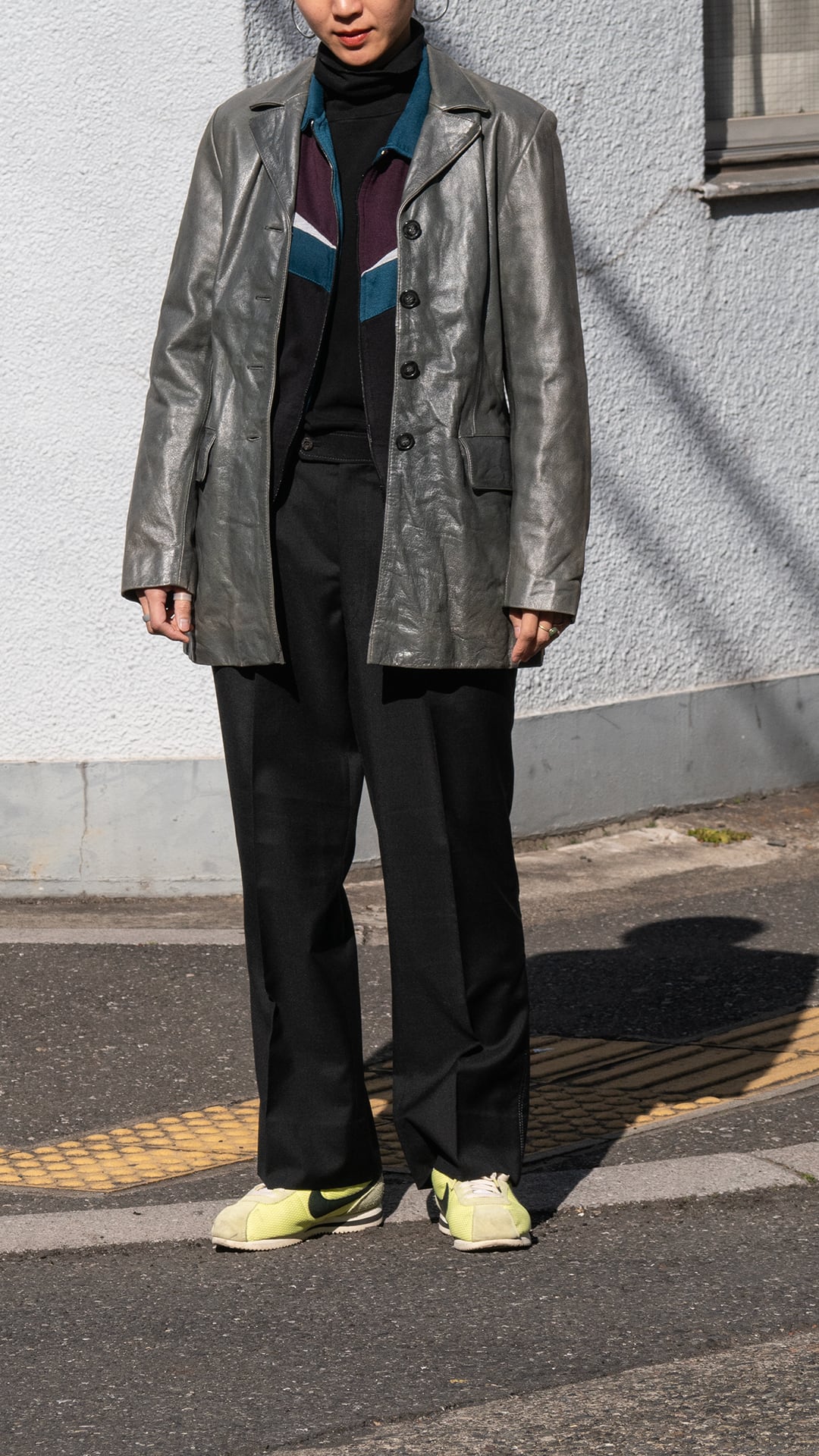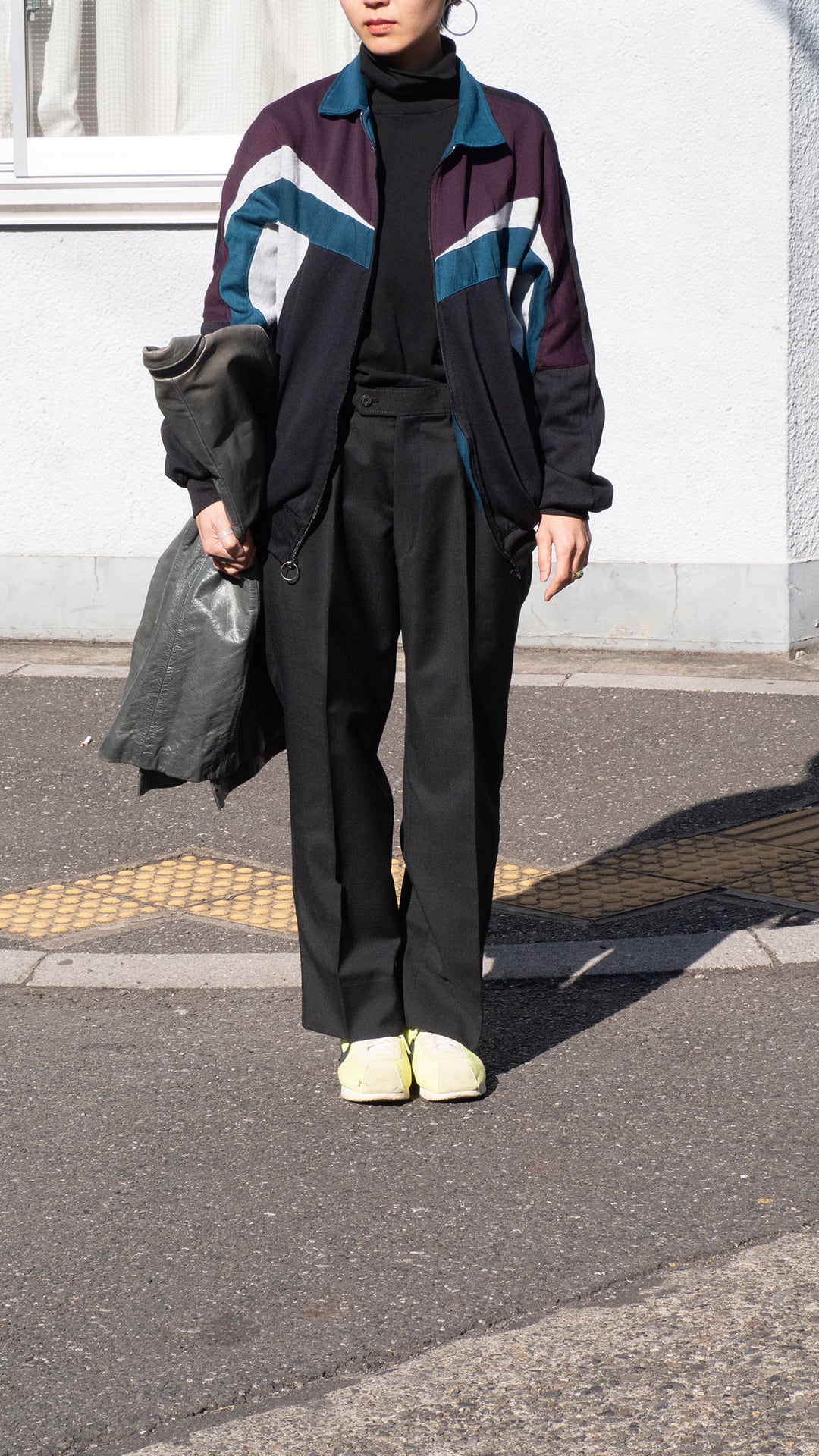セラストアとしては、このようなブランド不詳のアメリカローカルのレトロスポーツウェアと、それとはベクトルの違うテーラードジャケットやスラックスなどを合わせ、適度に畏まった遊びスタイルをご提案します。