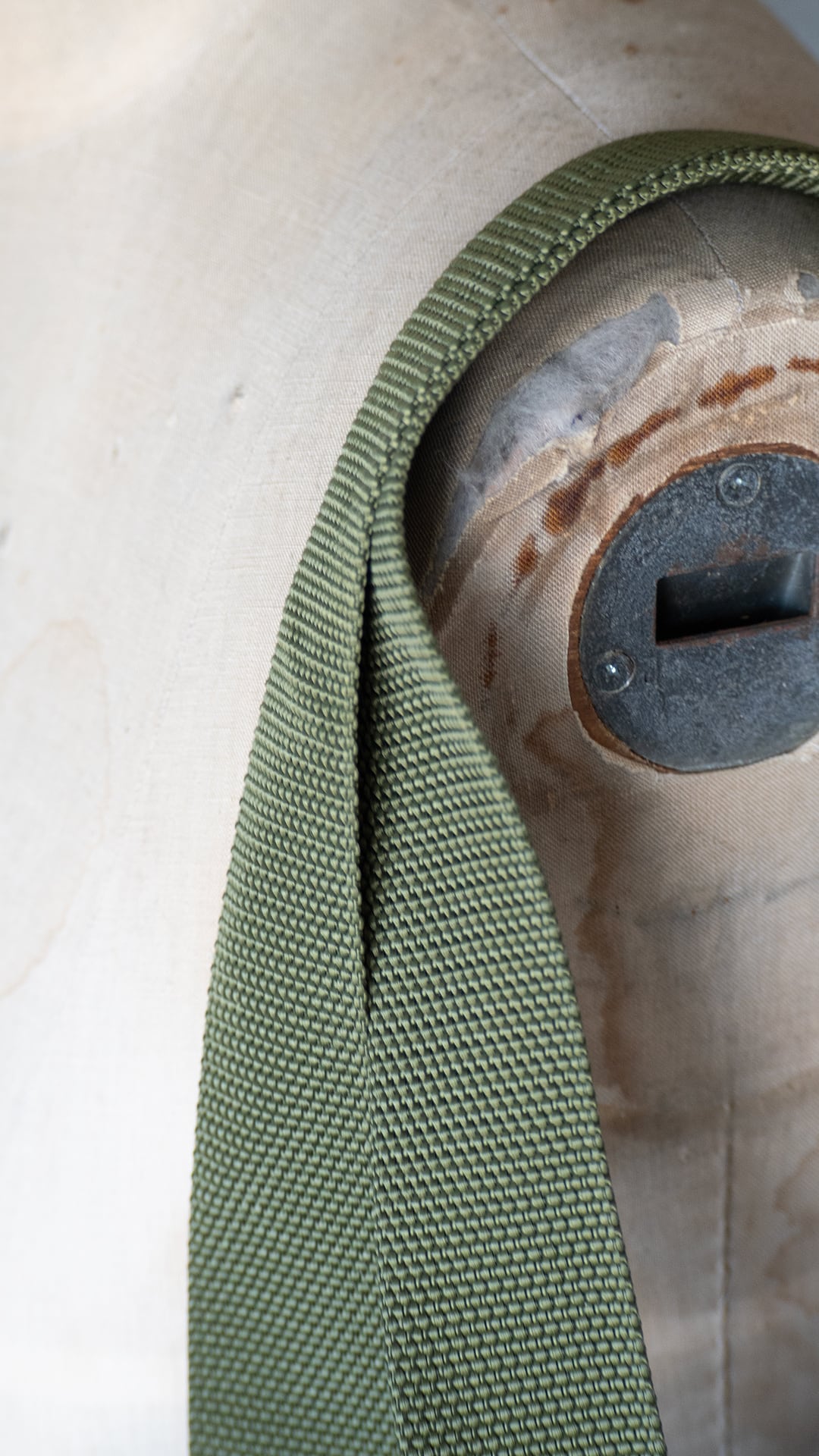 ショルダーストラップは幅のあるナイロン織物で堅牢な縫製と共に作られています。
