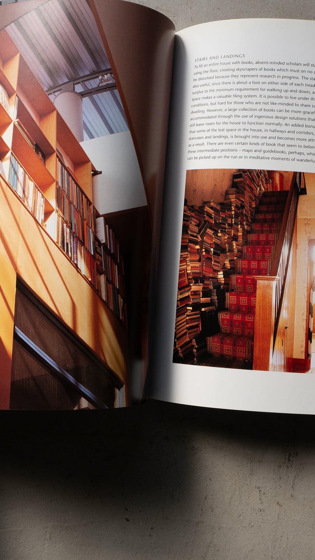 この本には、本を保管するだけでなく、家の大きさや仕様、家の雰囲気に合わせて、ミニマルに、もしくは雑然としたスタイルなどで収納、陳列、ディスプレイするためのアイディアソースを写真と共に提案した内容です。その数は、150 以上もの実例を添えて紹介。まさにインスピレーションにあふれる本だと思います。
