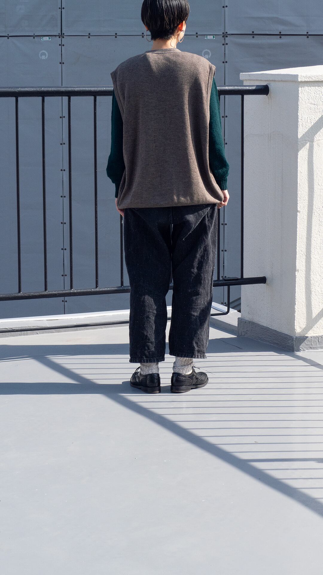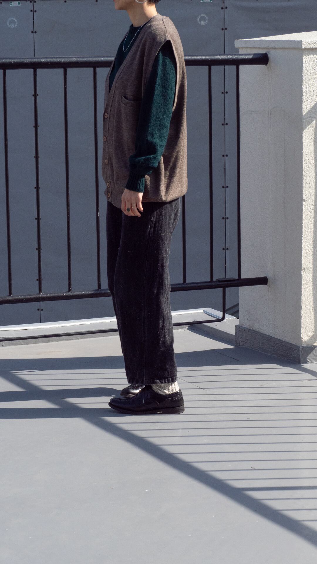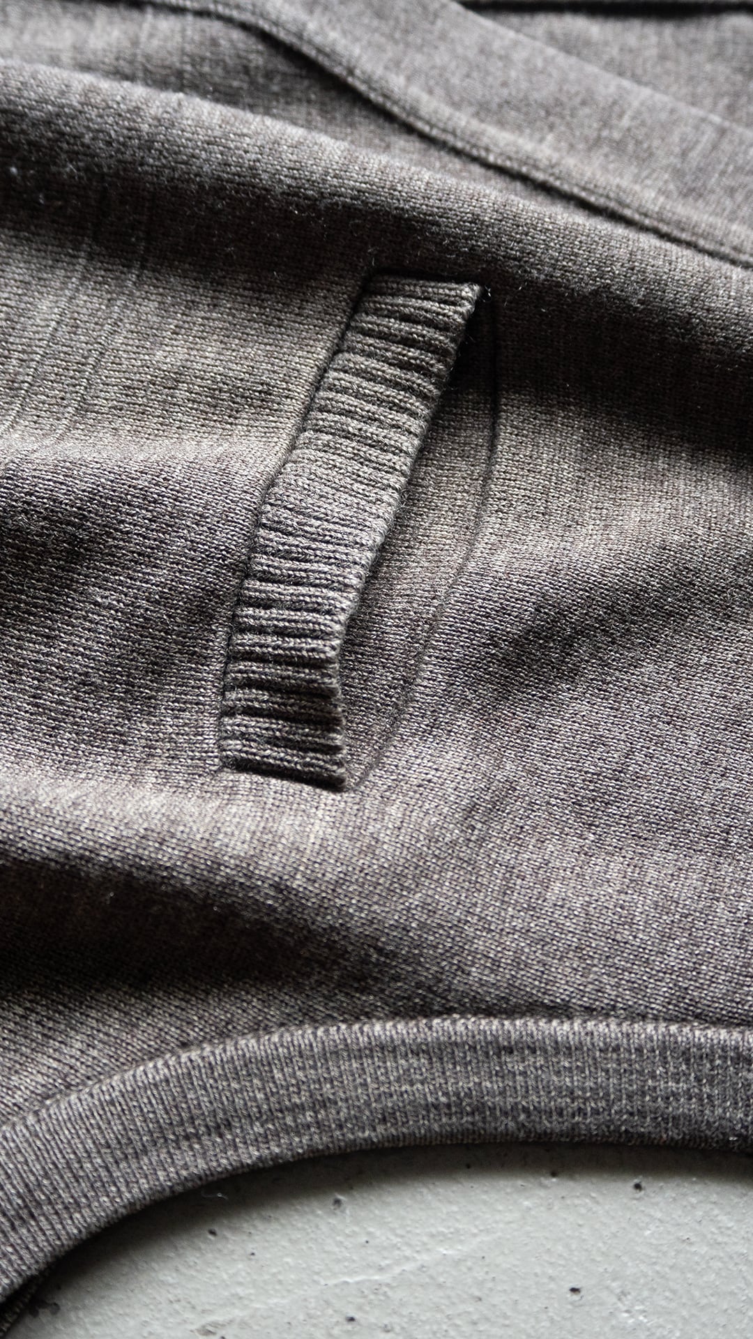 成型機によるパーツ編み立てと縫製によるリンキングで仕立ててあります。縫製周りも硬くなりすぎず、身生地のなめらかさが生かしたら全体感も魅力です。身頃に入った横段ラインやボタンの質感選びもさりげない意匠で、着用時の生地感を活かしたデザインだと思います。