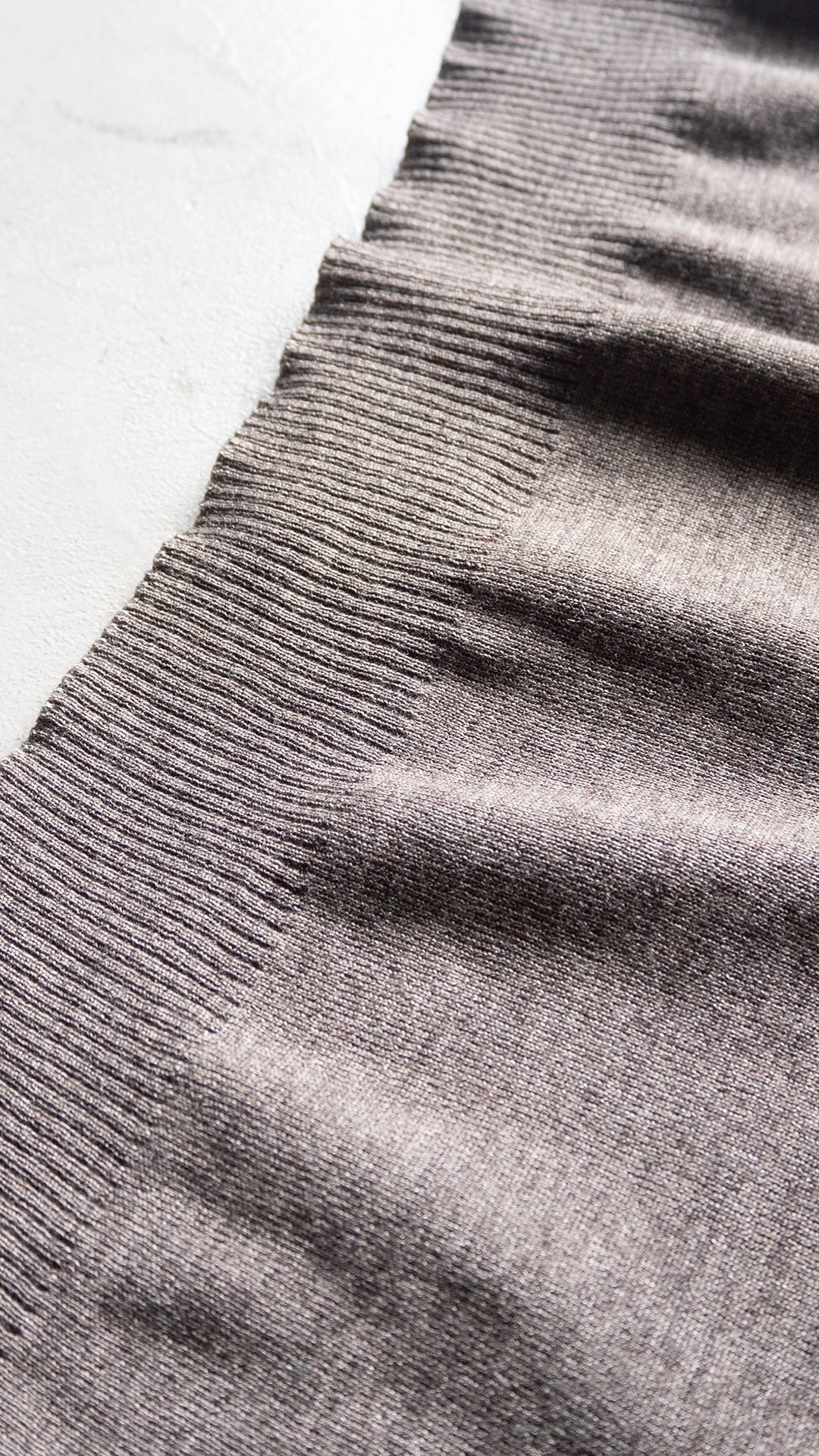 素材表記が消えているため推定になりますが、メリノ種のウールをベースにした綺麗な編み立てで、糸の質感も良く、肌あたり、落ち流れの良い生地です。