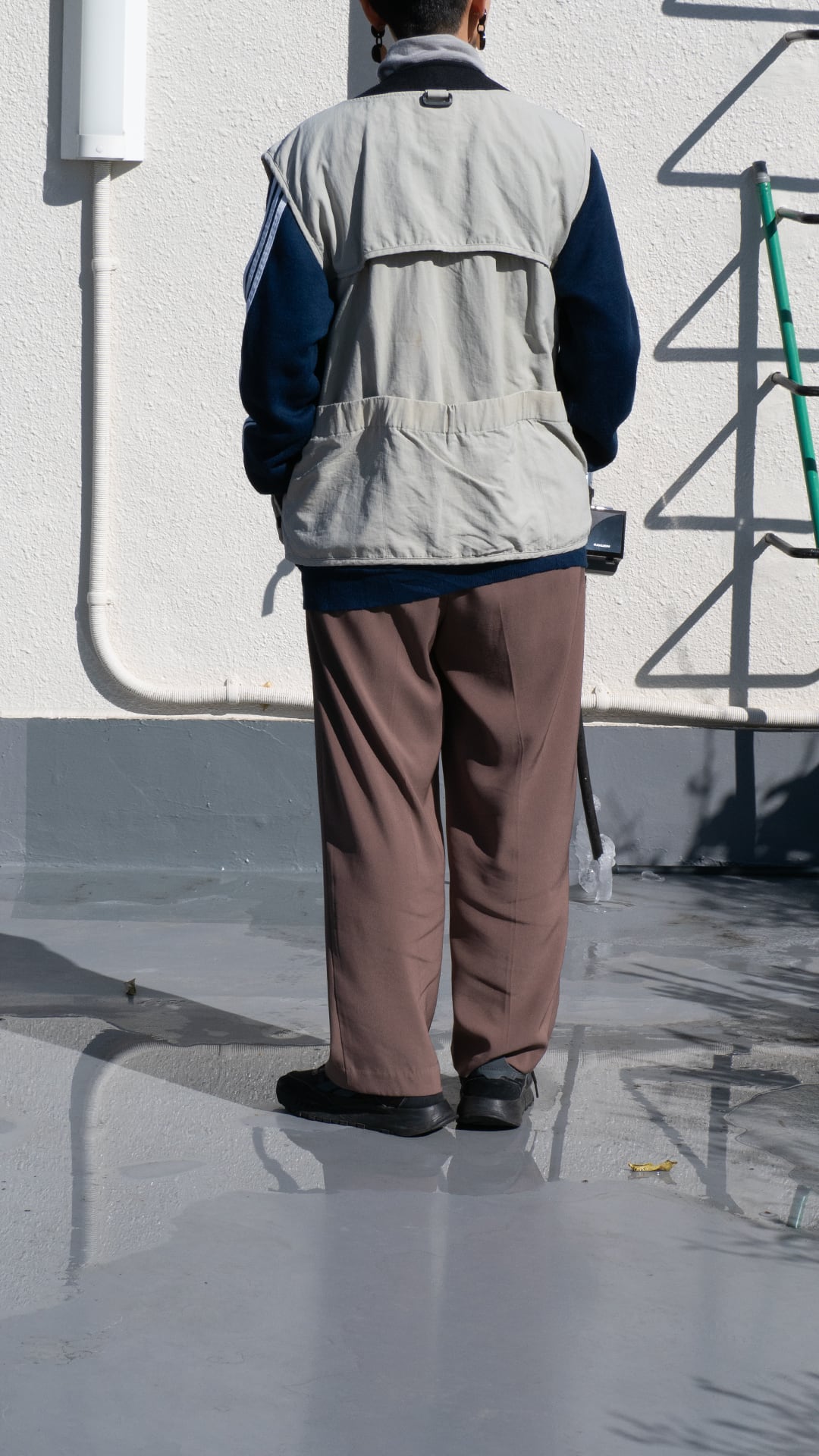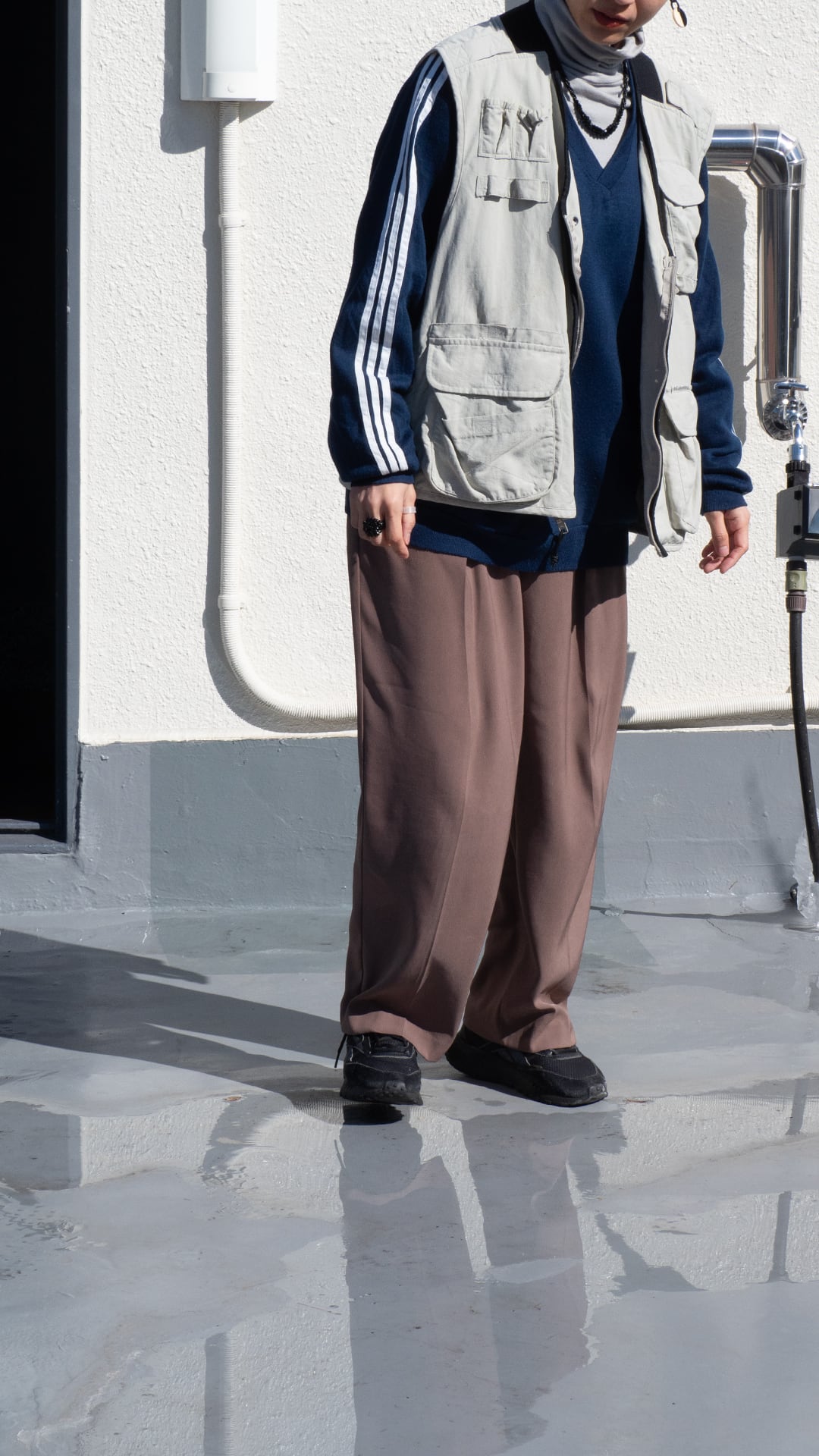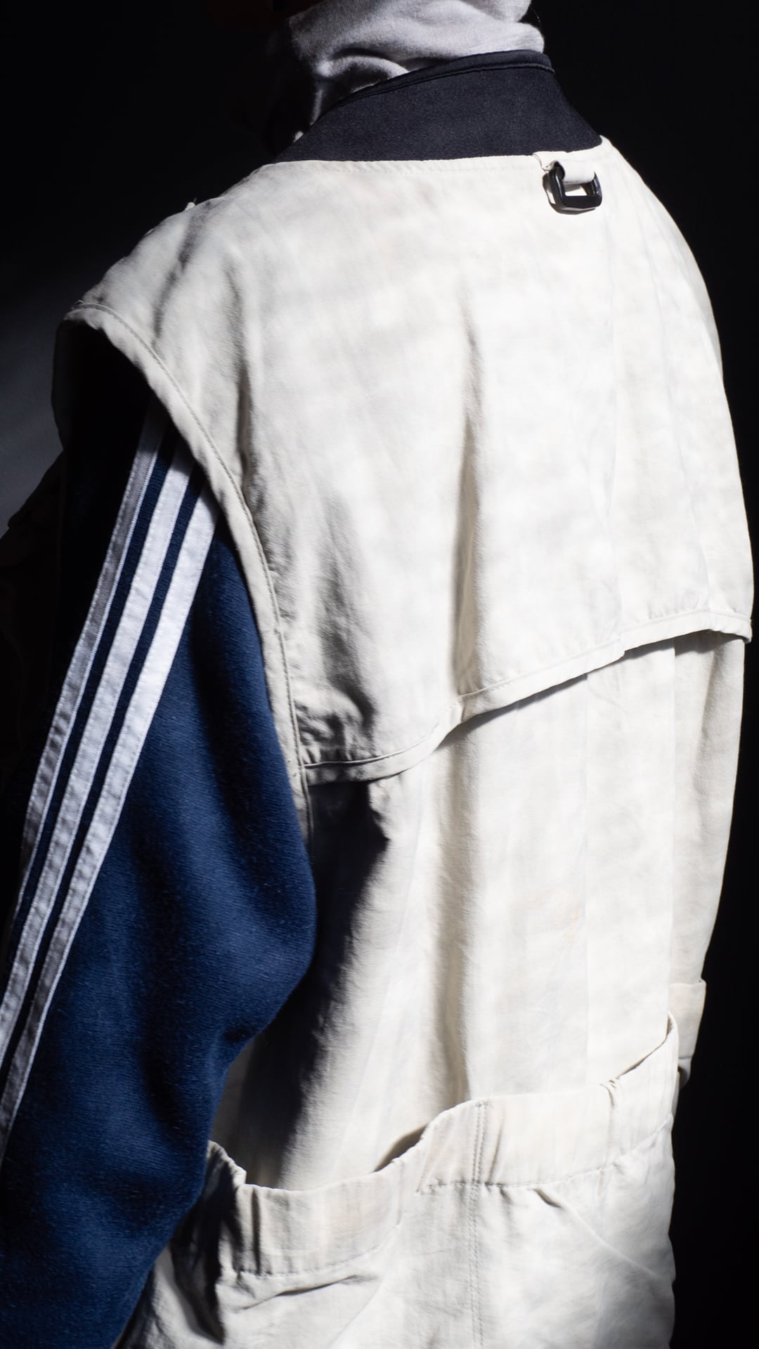 着用感も重たさを感じない程良いウエイトですので、仕事やオフの日のバッグ代わりに使用したり、ニットやスウェットのようなボリュームのあるトップスのさらに上にレイヤードして、スタイリングのアクセントにしたりと、ツールとしてもファッションとしても活躍の幅が広がりそうな一着です。