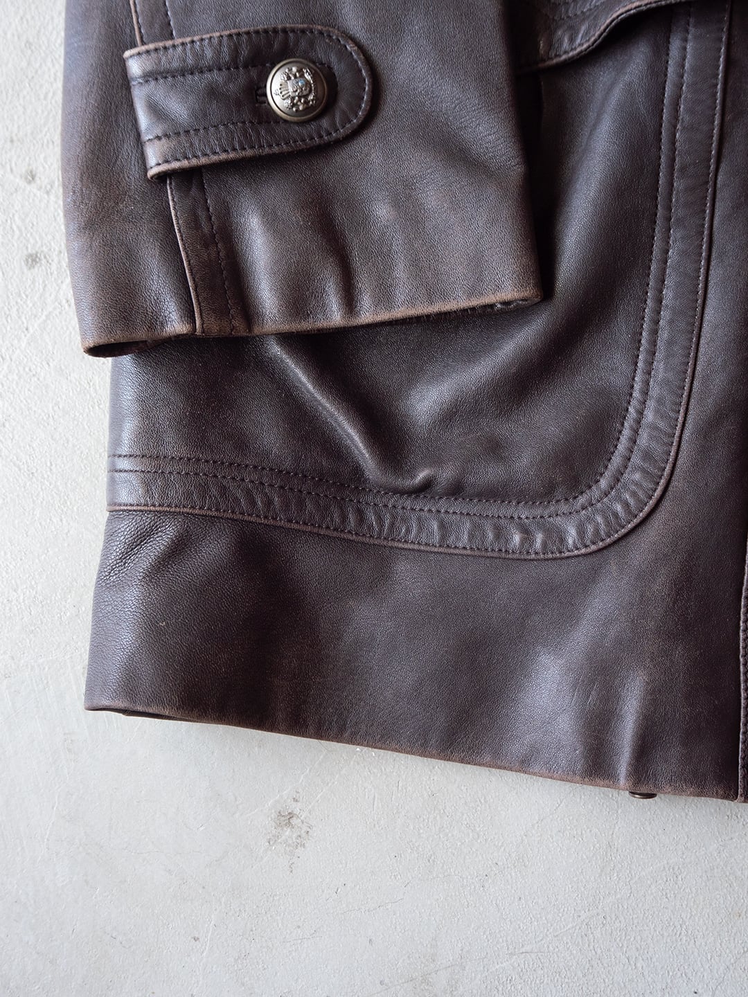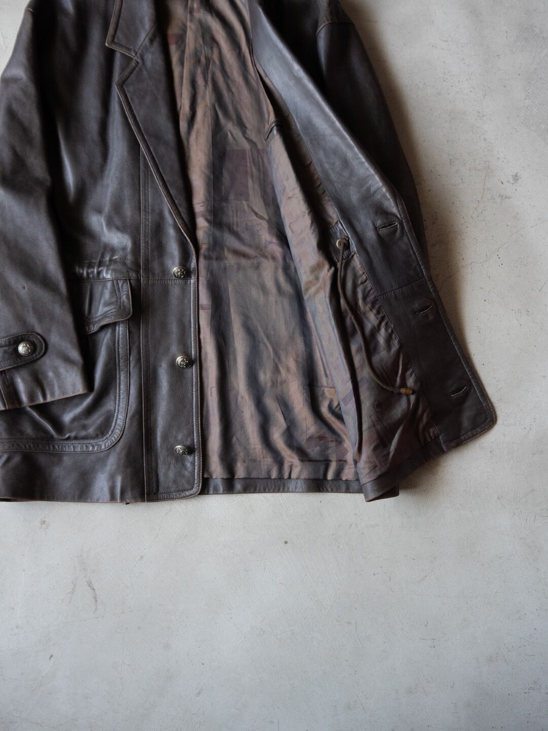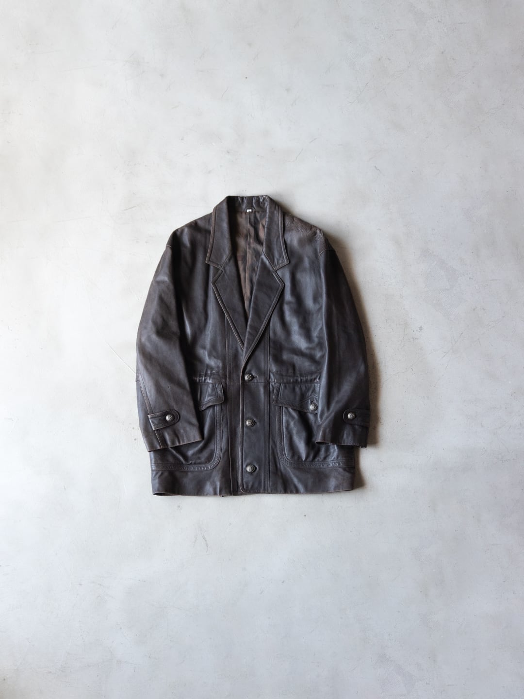 ブランドタグが欠損しており詳細不明となりますが、シープレザーのラペルジャケットの古着です。