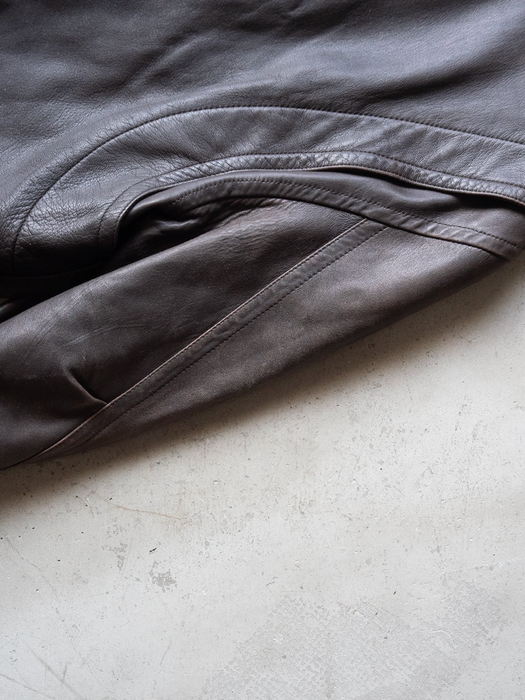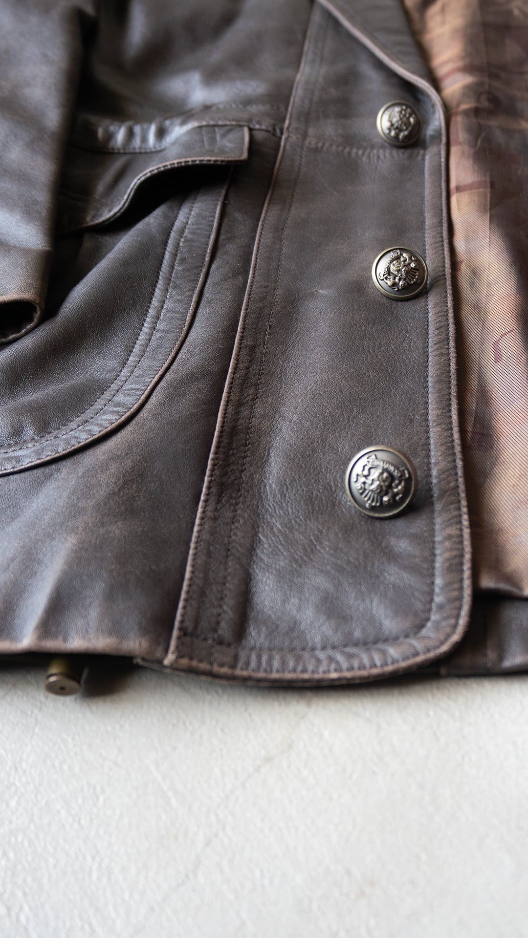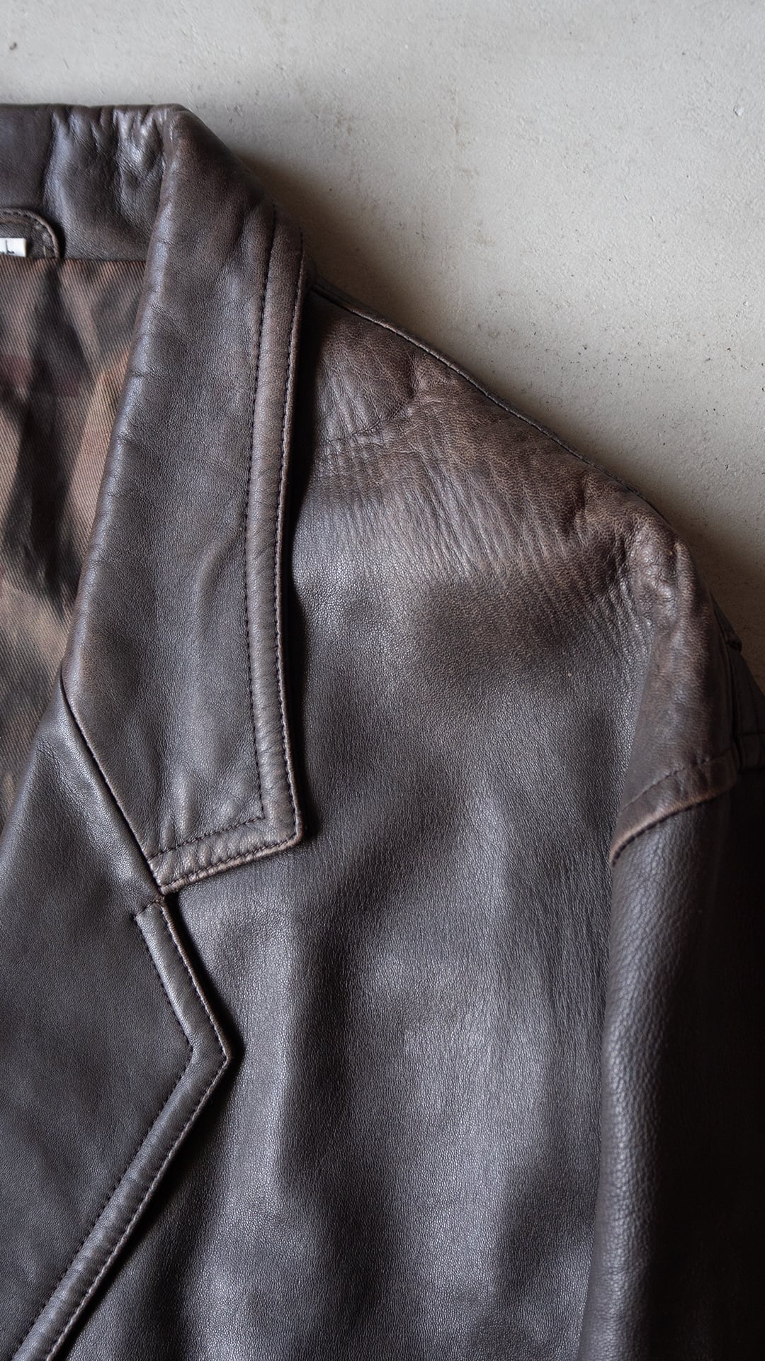 ブランドタグが欠損しており詳細不明となりますが、シープレザーのラペルジャケットの古着です。