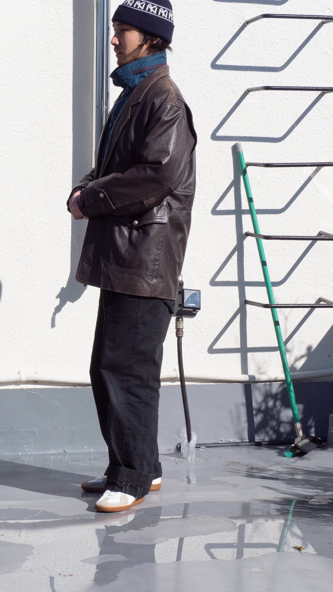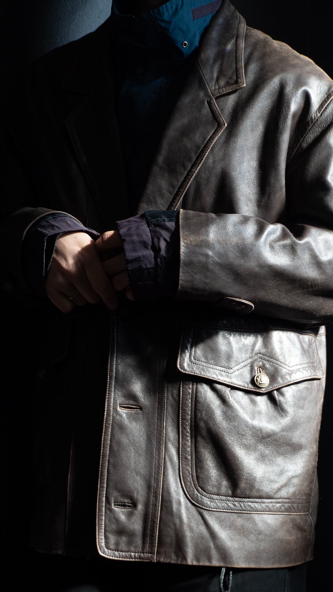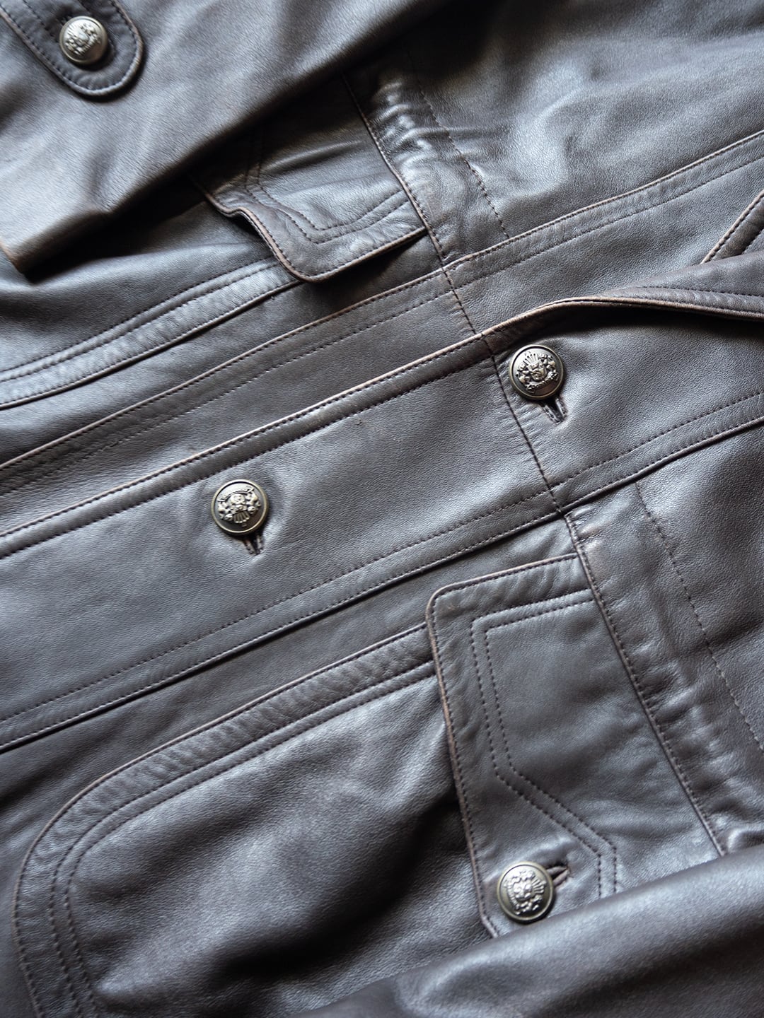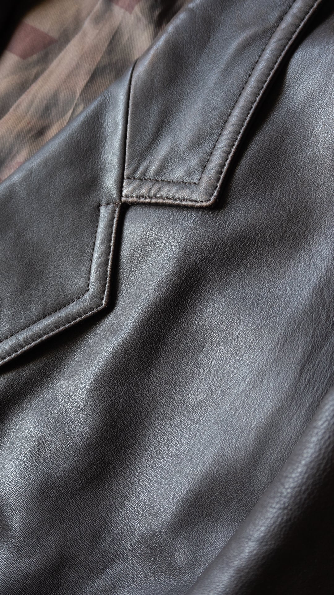 非常に薄く漉かれたレザーですので、着用感は非常に軽く、そしてレザーのドレープや動きがしっかりとでます。