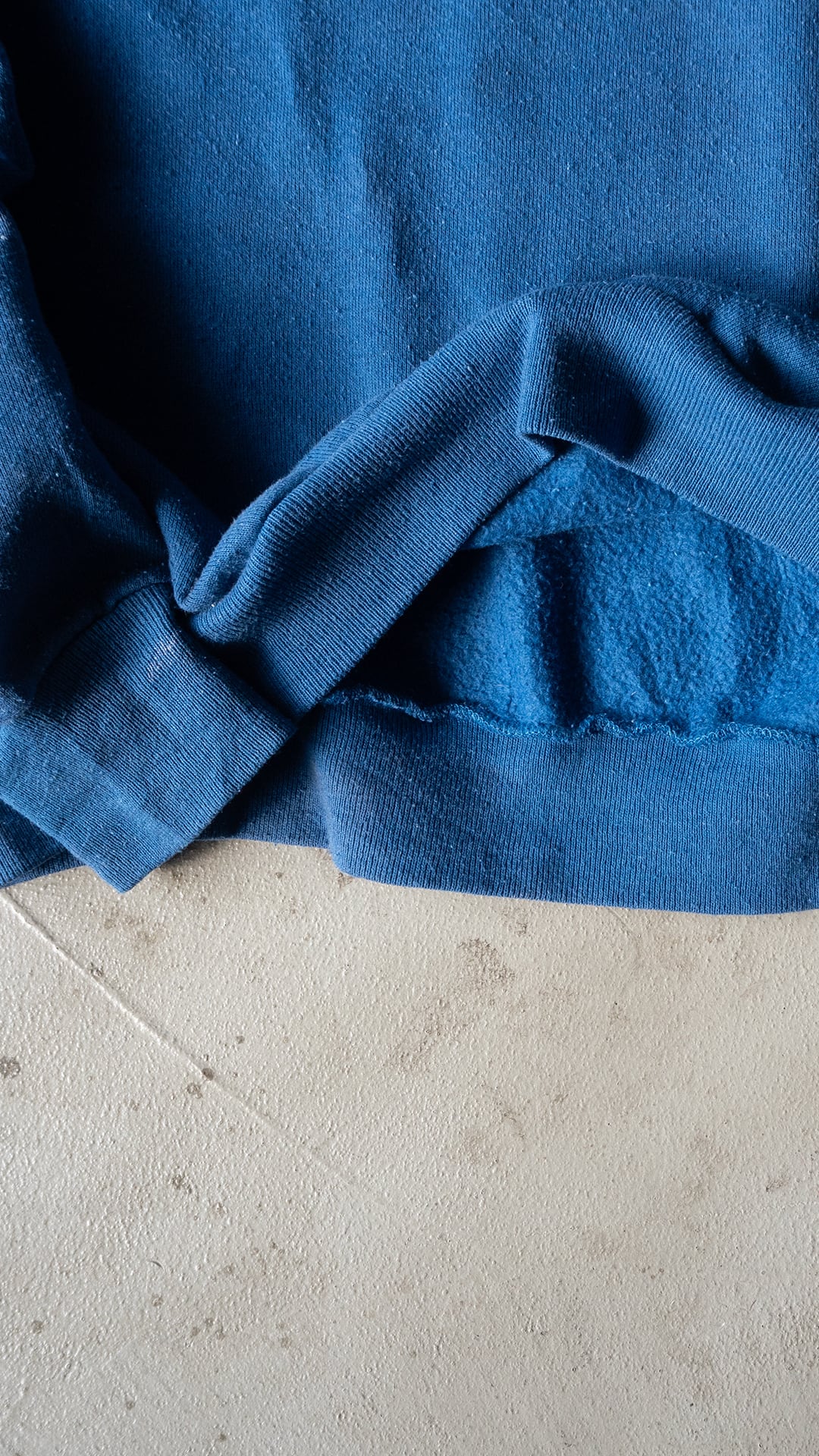 ボディはコットン50%ポリエステル50%の裏毛で、元々裏起毛だったものが着用と洗濯の繰り返しで嵩が潰れていて、薄手に感じられるスウェットになっています。