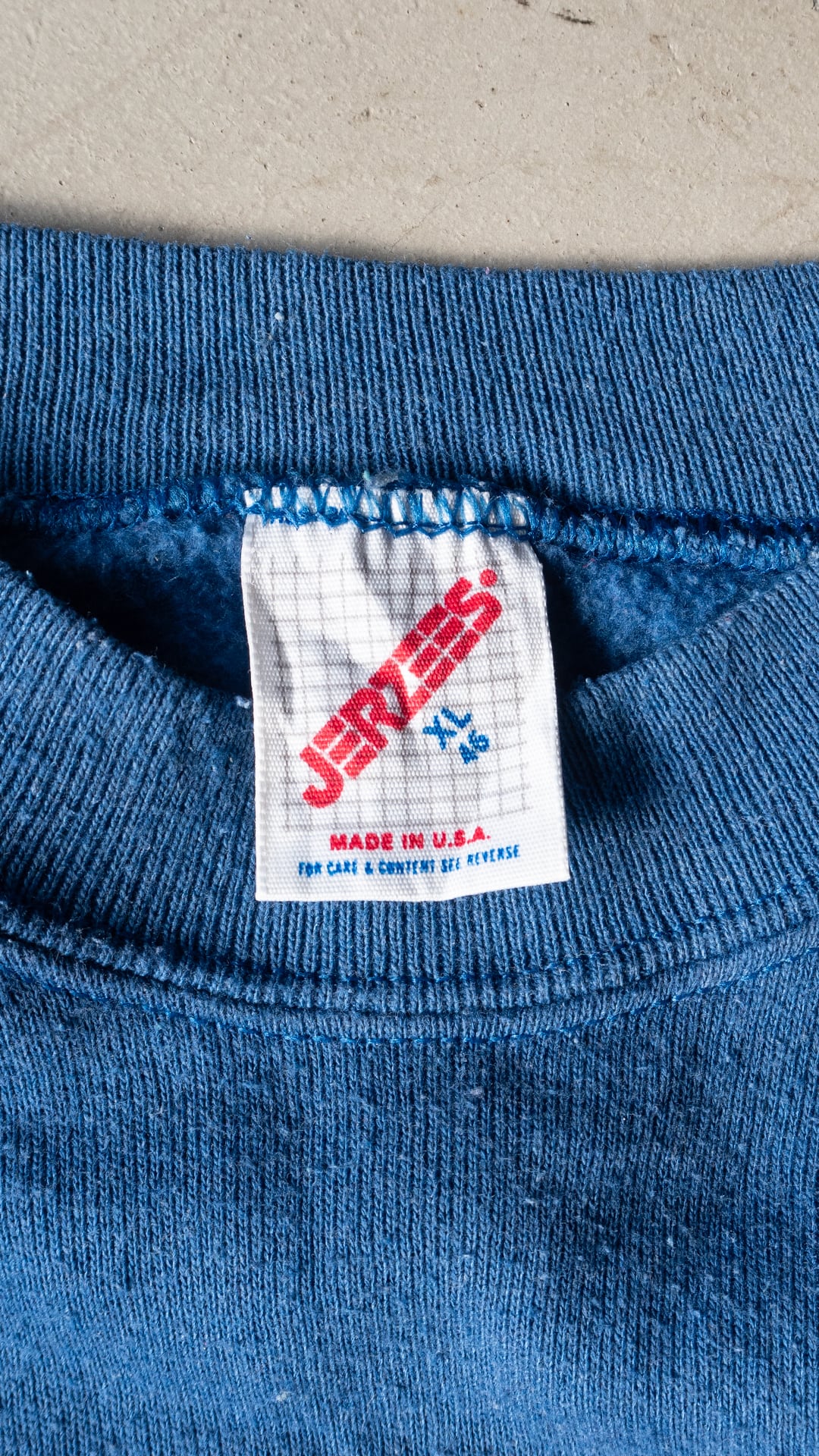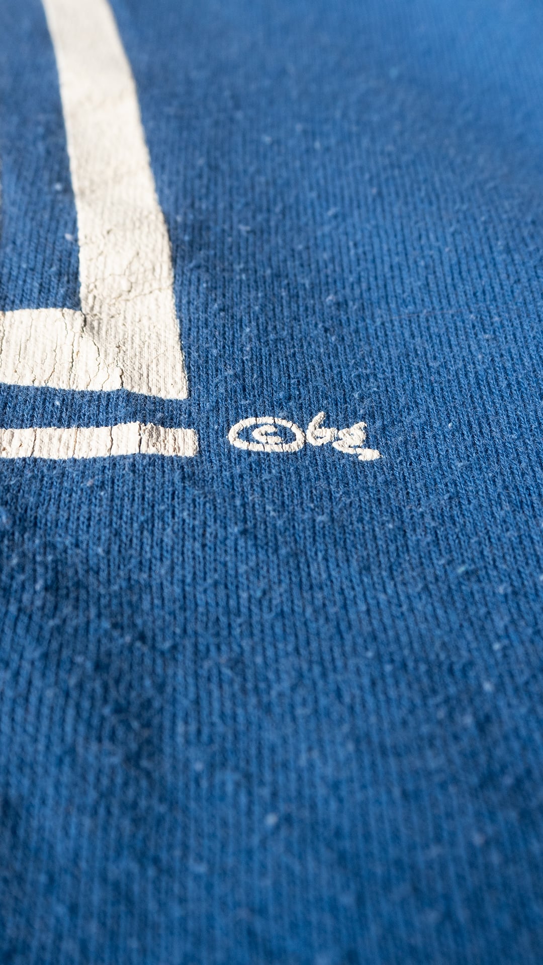 大変クールなグラフィックプリントのスウェットに出会えたのですが、ブランド不明で、©︎bgが意味する人物も不明。ご存じの方がいらっしゃれば教えていただきたいです。とにかく大変クールなスウェットがピックできました。80年代JERZEESアメリカ製ボディのラグランスウェットです。
