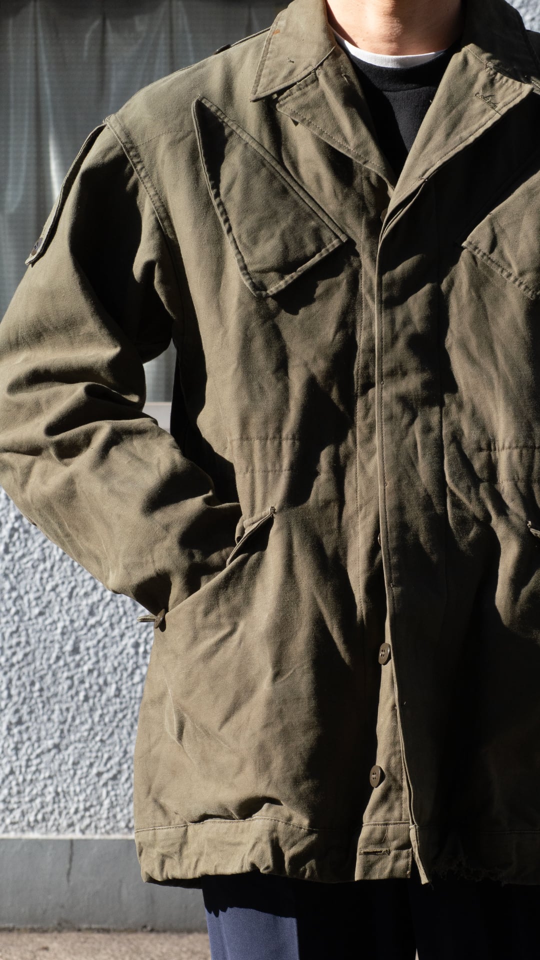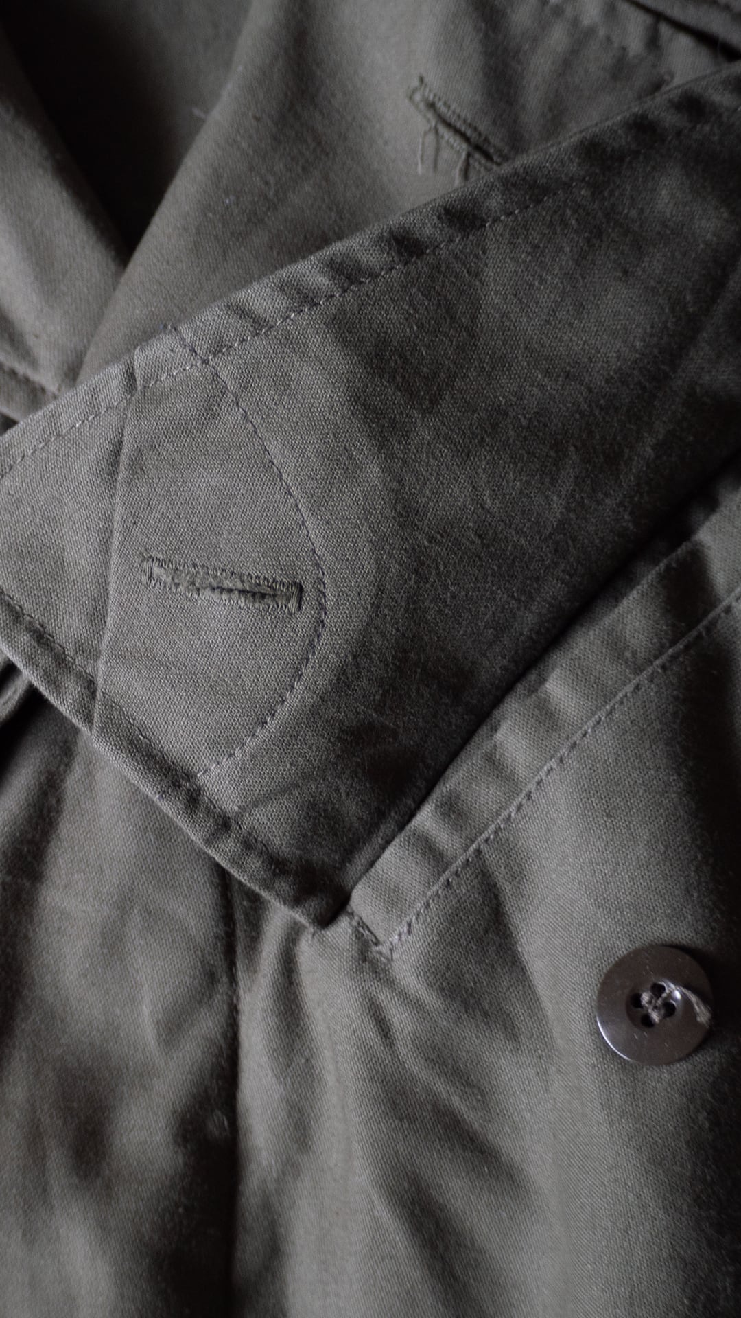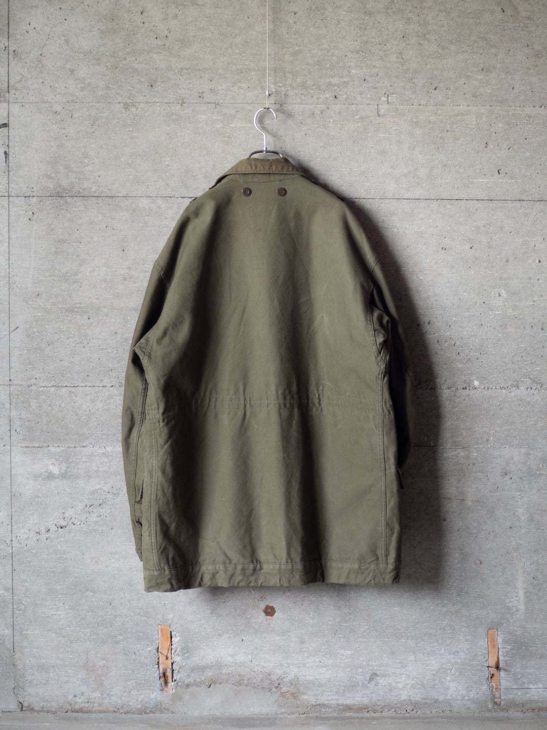 斜めに刻まれたポケットがアイコニックですが、その意匠以上に、脇下を縫い上げるアーム縫製でありながら、パタンニングは袖をしっかりと湾曲させ、人体構造に基づいて非常に秀逸な作りだと思います。袖を通すと感じれる、フィット感がありながらも可動域の広さが確保。それでいて厚手で肉感のあるコットンの裏地が付属しているという構造と堅牢な縫製に、まさに圧巻な一着です。