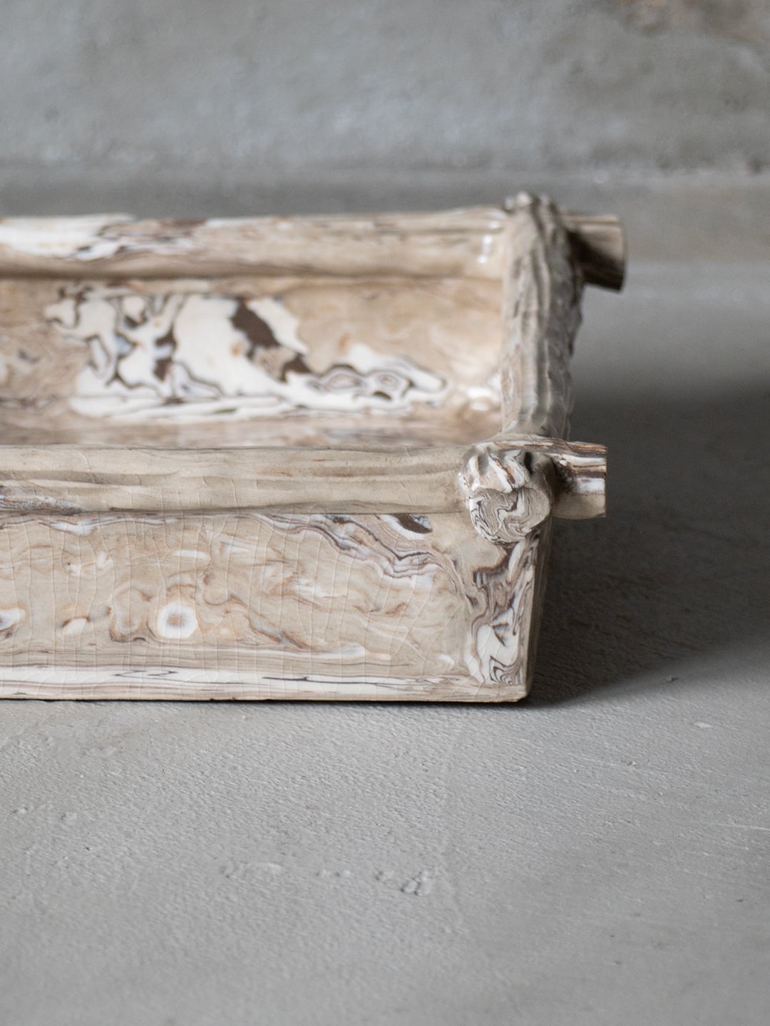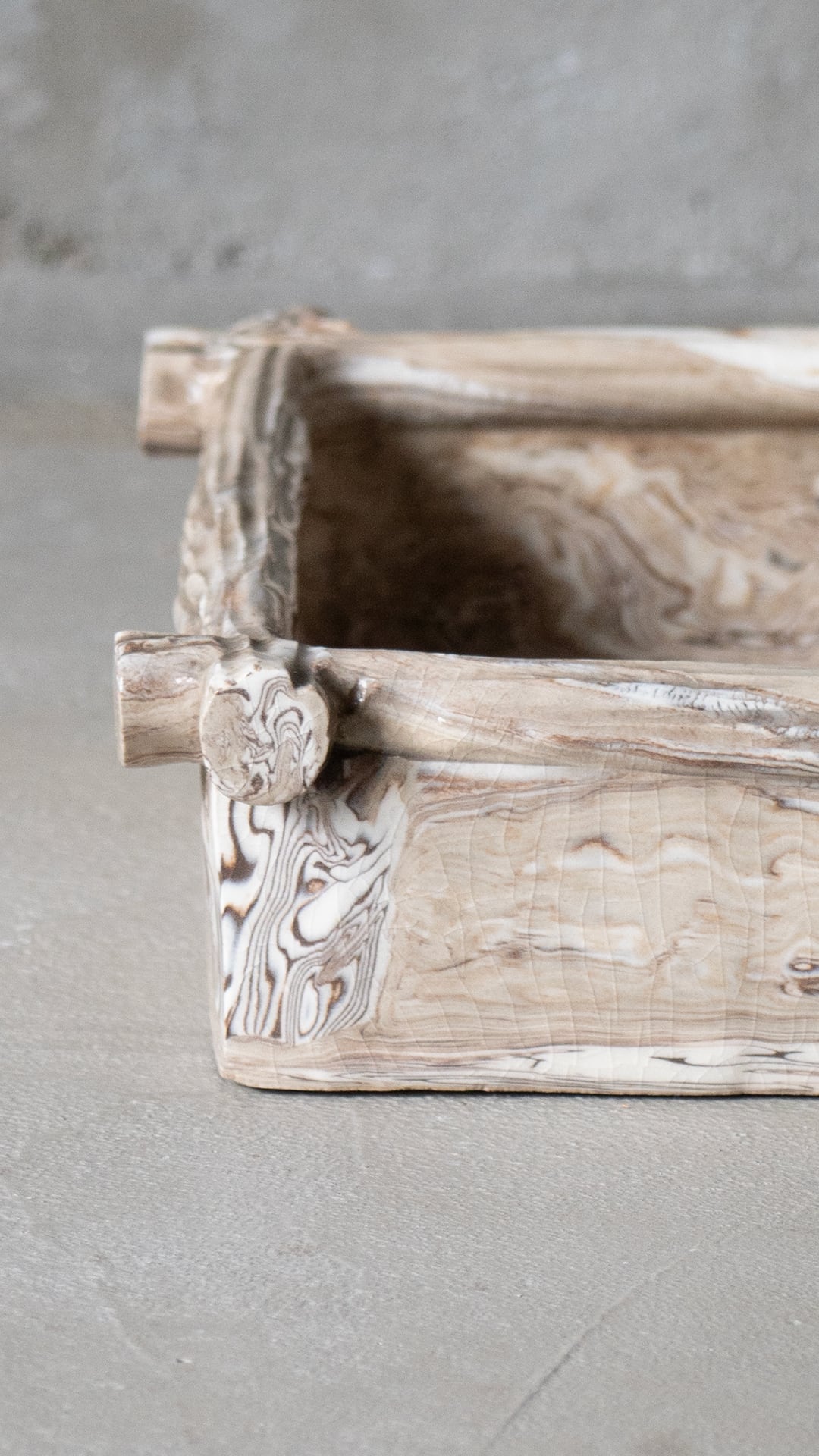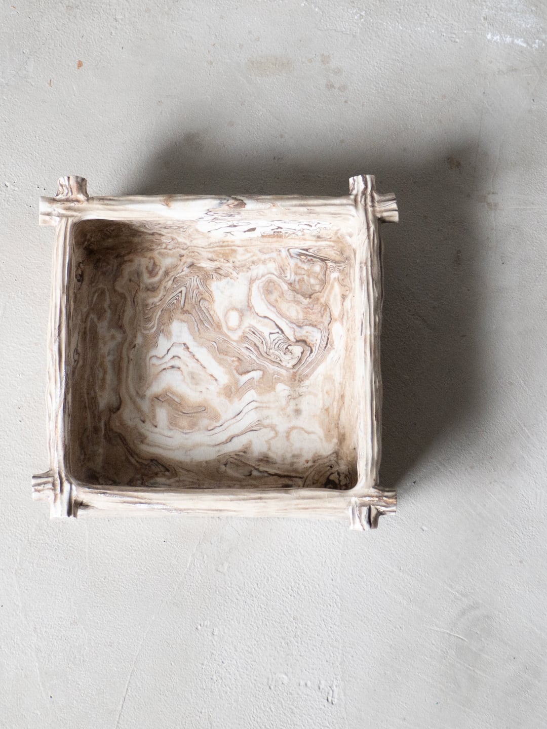 マーブル調の模様が美しい陶器で、四角形の箱型になります。