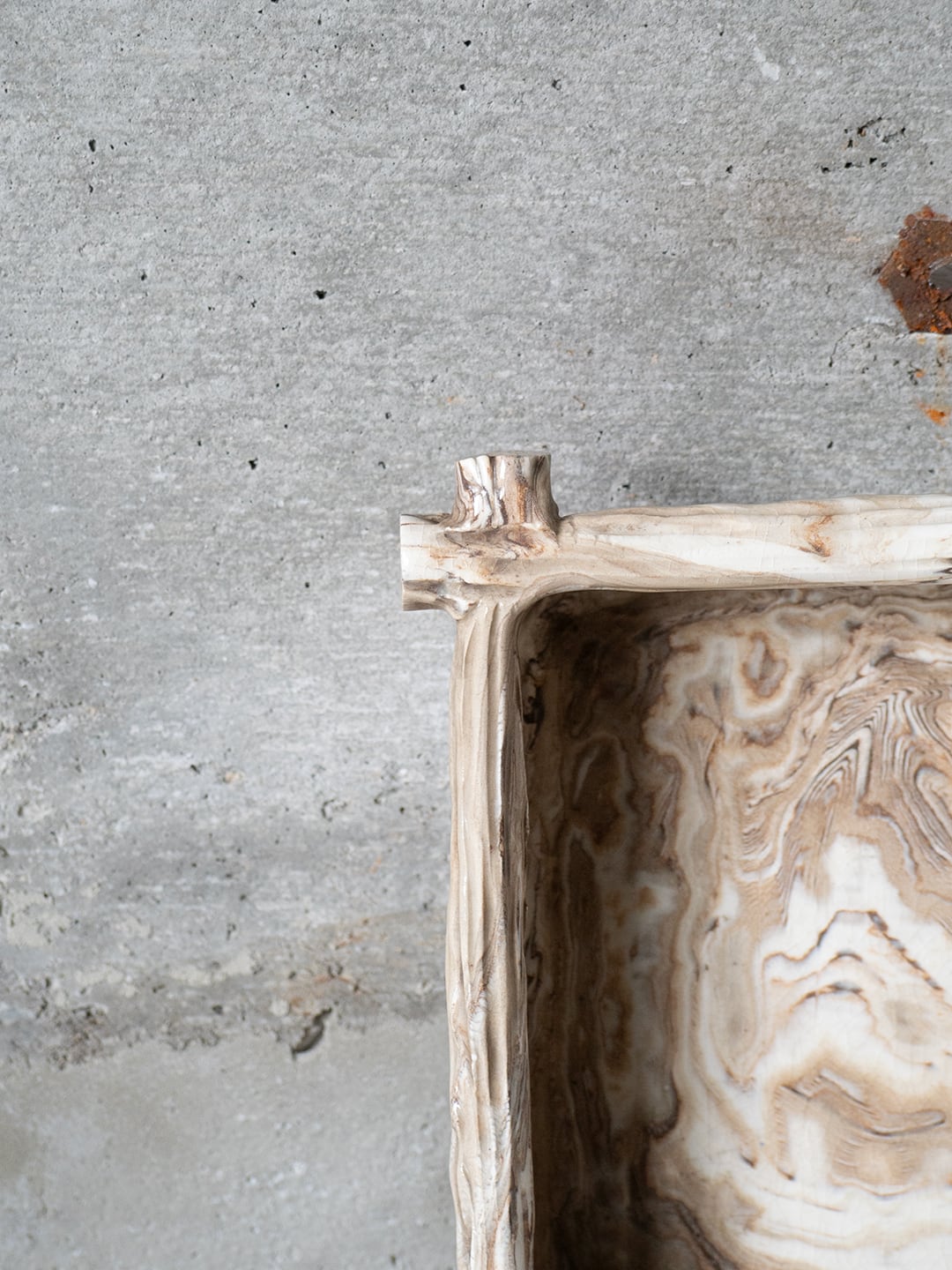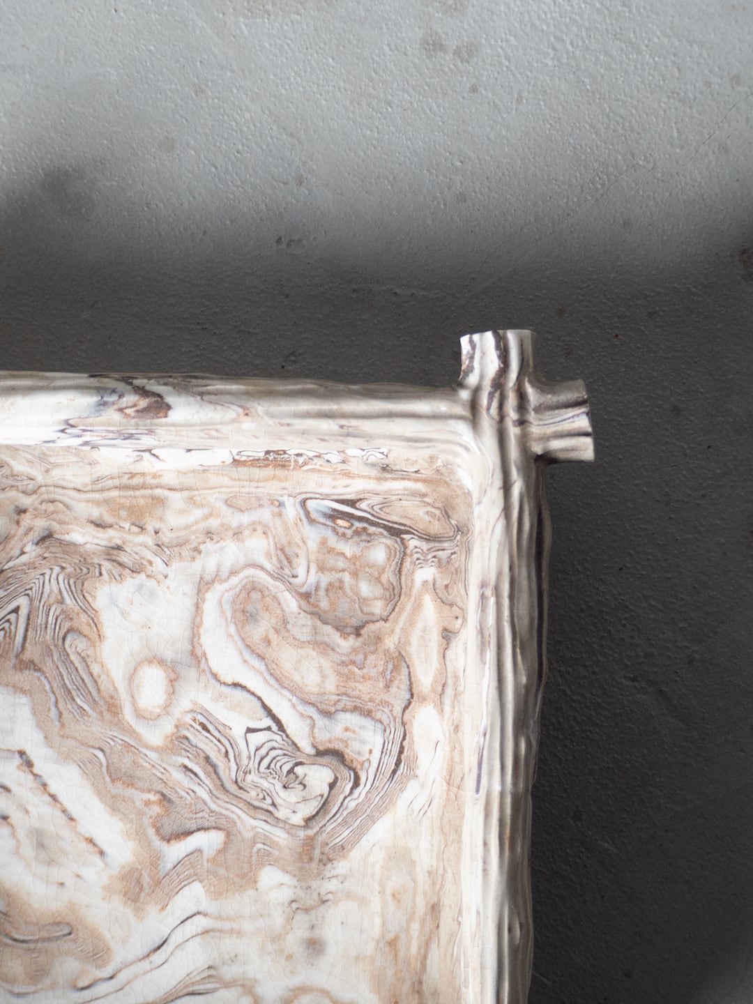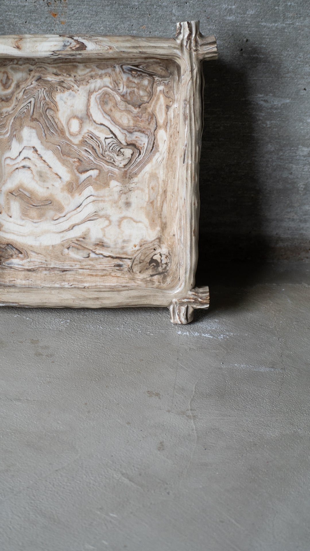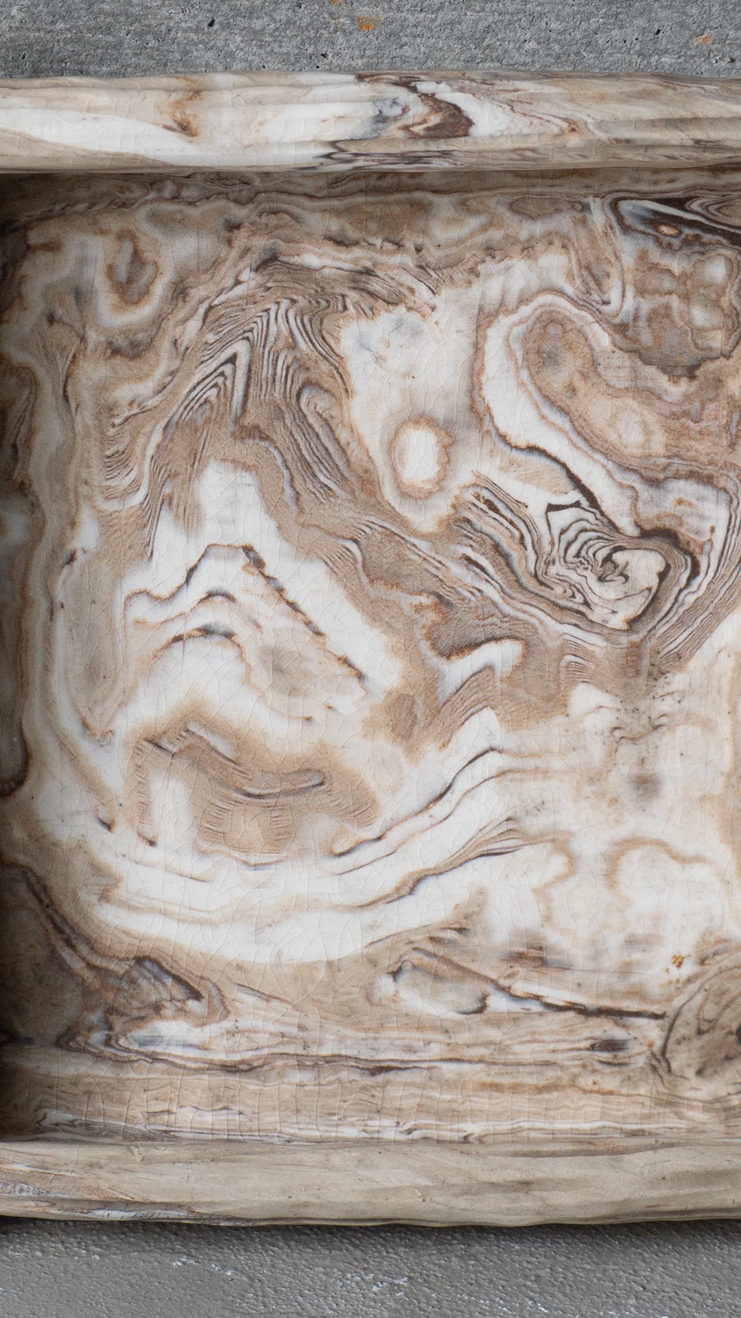 マーブル調の模様が美しい陶器で、四角形の箱型になります。