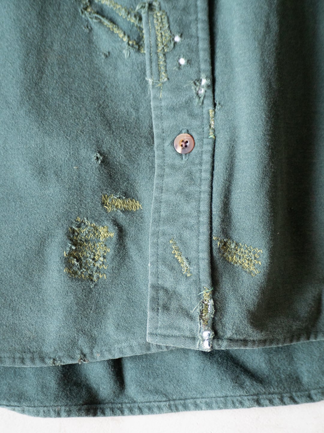 リペアのステッチが配色になり、クラフト感と人の手仕事という味が感じられる魅力が詰まったシャツだと感じました。次の所有者様へ受け継がれ、まだまだ着用いただければ幸いです。
