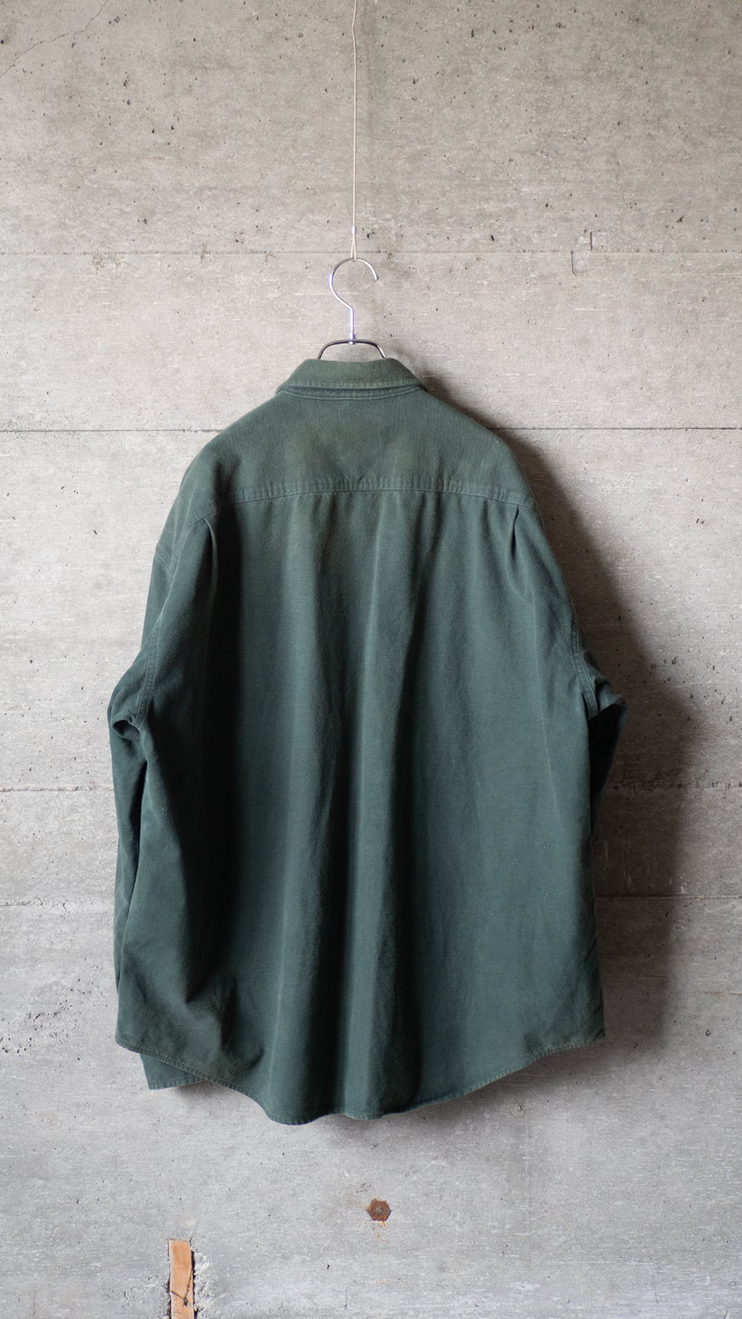 このシャツはいわゆるシャモアクロス(Chamois)で仕立てられていて、タグに記載されている「DEERSKIN SOFT」=鹿皮革の様に柔らかい、という表現の様にふっくらとした柔らかい起毛コットンの素材です。シャモアクロスシャツは、元々20世紀初頭のアメリカで生まれた厚手コットンのワークシャツ。シャモアは、フランス語でカモシカを意味するように、元々はレザーシャツでしたが、時代が進むにつれて鹿革のような手触りを持つ起毛コットン生地が作られ、保温性・耐久性・柔らかさを兼ね備え、林業、鉱山、鉄道作業を行う労働者向けの作業着として広がっていった歴史があります。