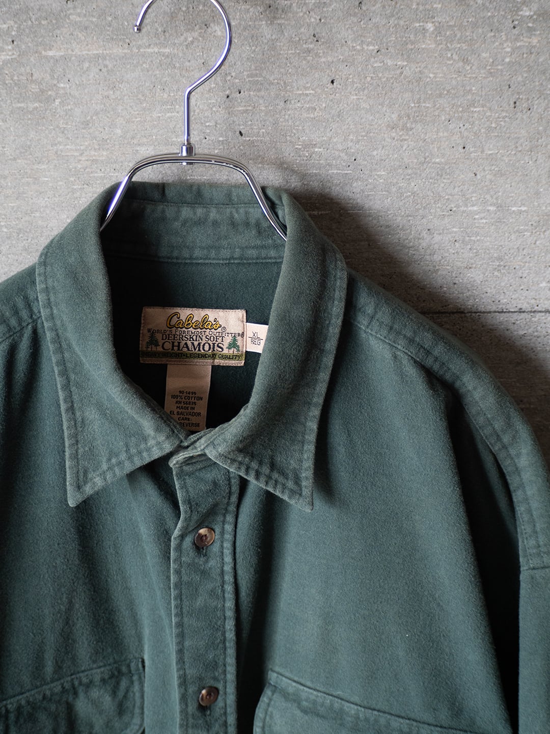 米国で半世紀以上の歴史を持ち、狩猟、釣り、ボート、キャンプなどのアウトドア用品を専門とするブランド「Cabela's(カベラス)」のシャツになります。本個体は90年代後半から2000年代にかけて製造されたもので、前所有者によりダメージの修繕が施されています。