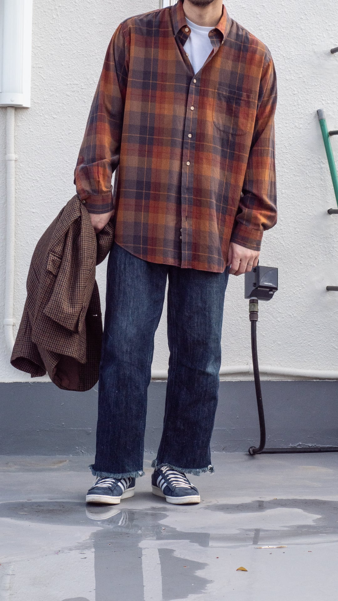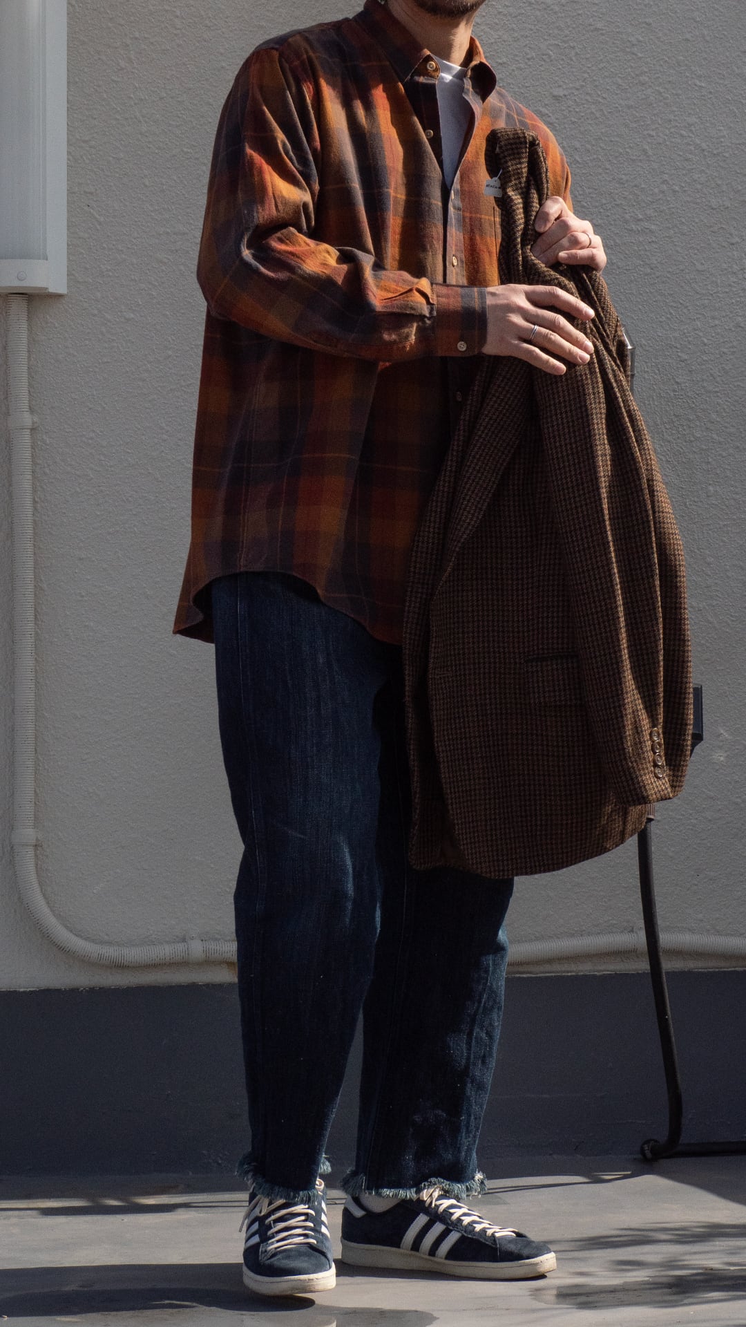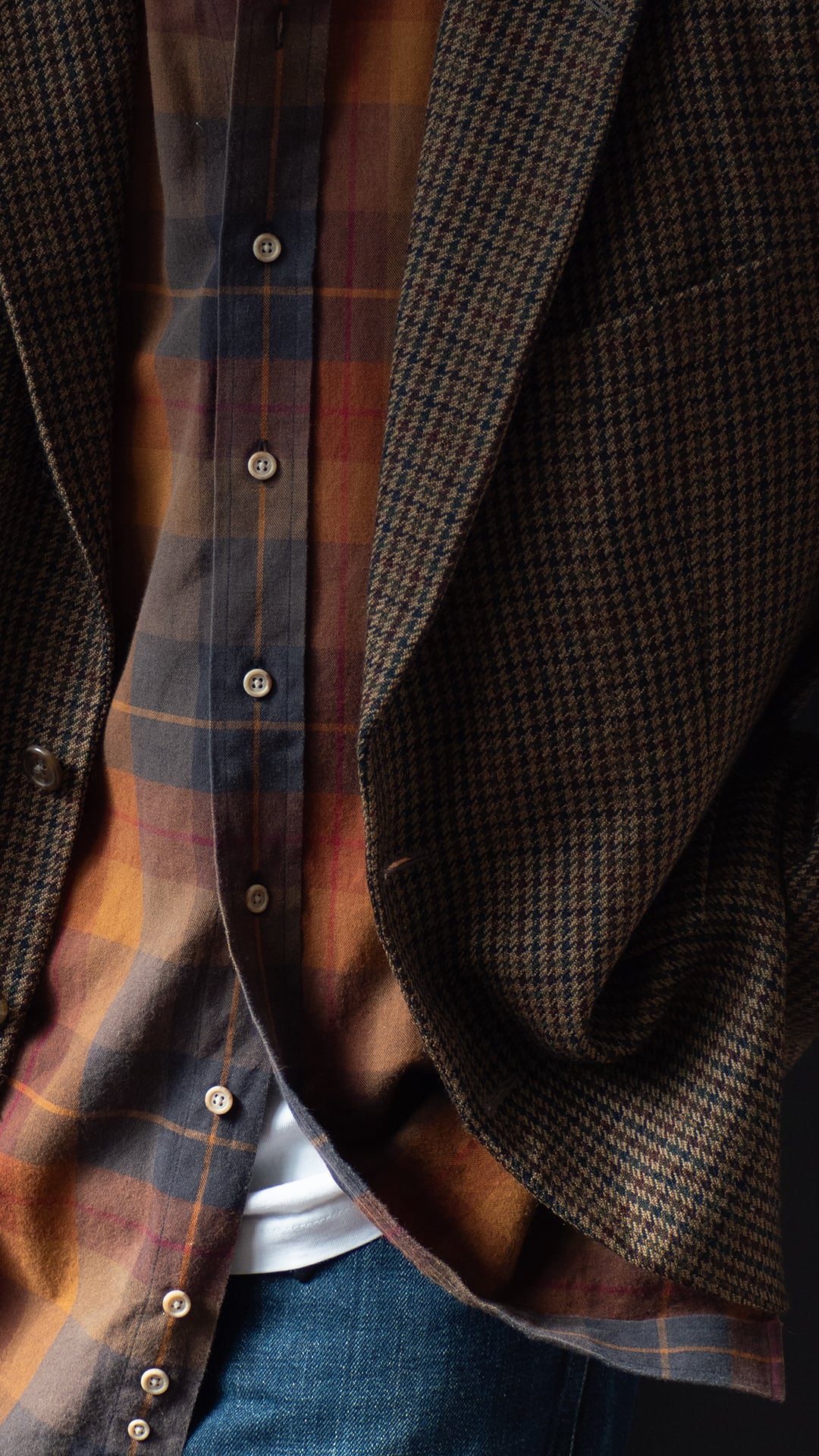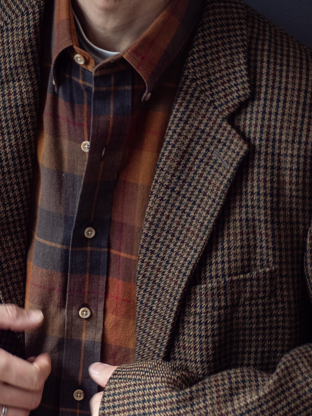 それぞれの色の彩度が保たれているからこそ、季節感の漂う色でもなく、着る人の雰囲気と掛け合わされて渋い雰囲気を醸し出すカラーパターンだと思います。