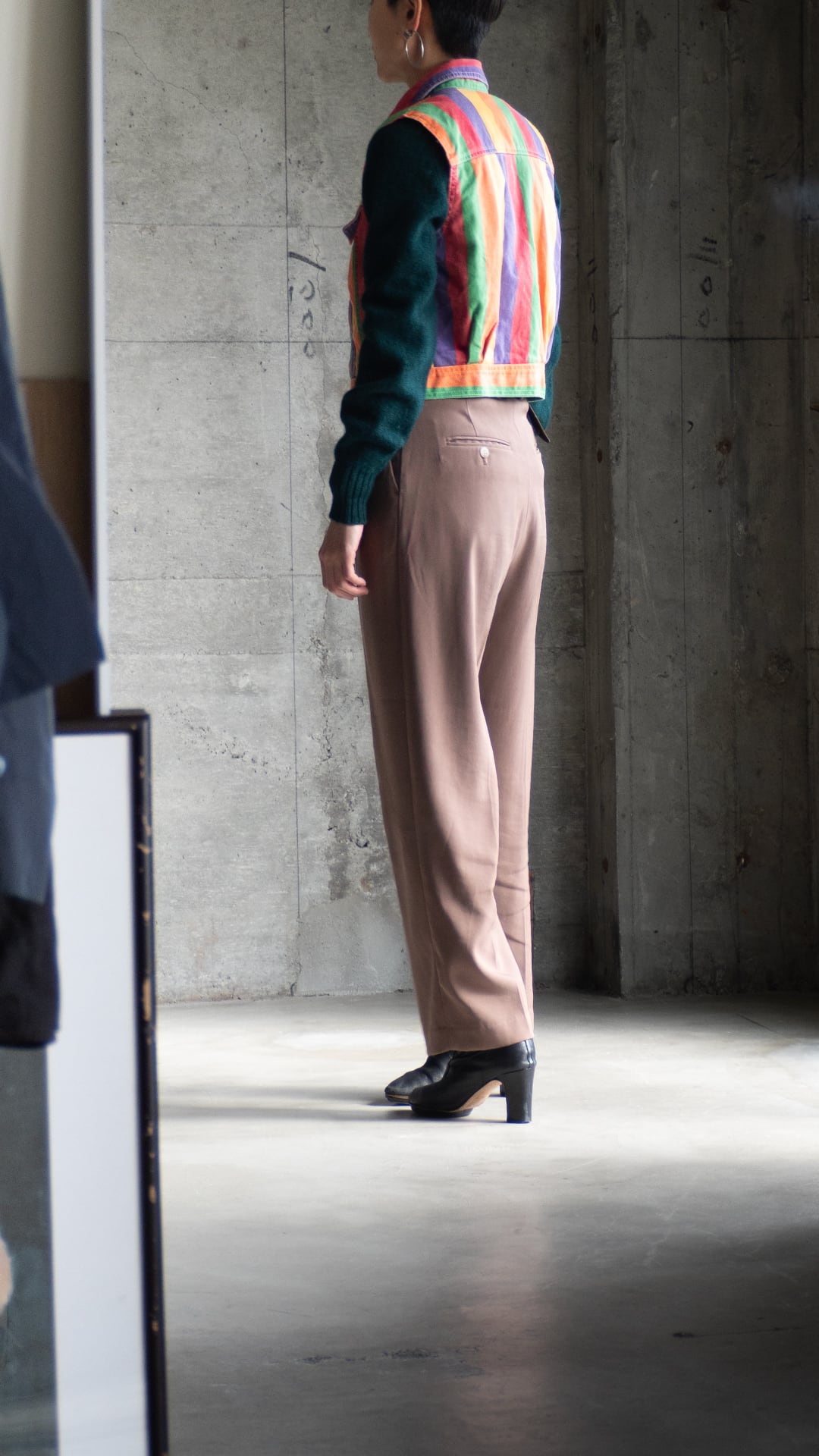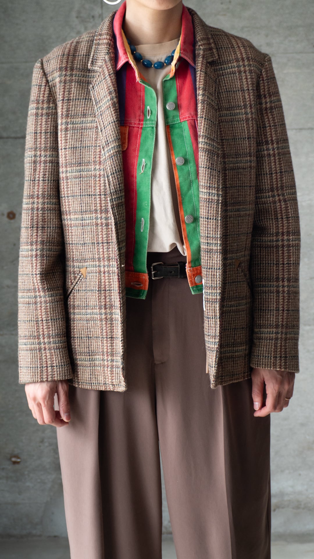 アームホールのサイズ感に注意しながらインナーを選び、メイントップスに重ねたり、ジャケットのインナーに挟んだりして、この色味を楽しんでいただきたいです。