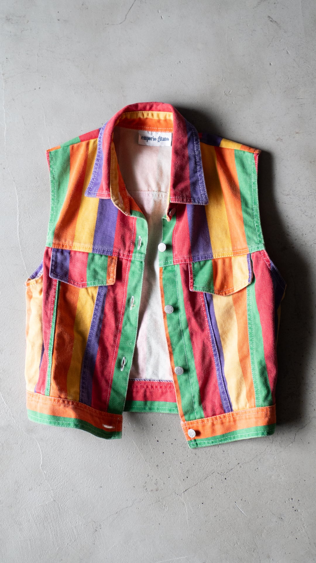 80年代から90年代にかけて米国ローカルで存在したカジュアル衣料のレディースブランド「Emporio Gitano(エンポリオジターノ)」のノースリーブジャケットです。